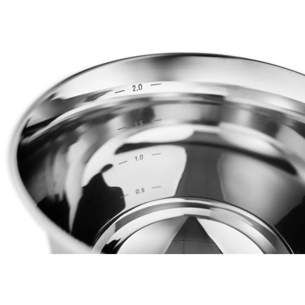 Eva Solo’s Green Tools mixing bowl is a multifunctional, stackable steel bowl – ideal for use as a dough bowl, baking bowl, or for everyday food prep. Made from 90% recycled stainless steel, the bowl is non-reactive, making it safe for both acidic and alkaline ingredients, as well as for food storage. With high sides and a rounded base, the mixing bowl is perfect for kneading dough, whipping cream, or setting up a bain-marie. Internal measuring marks allow for easy ingredient portioning directly in the bowl, while a silicone ring on the base keeps it stable on the countertop. With the Green Tools series, Eva Solo encourages everyone to increase the amount of vegetables in their diet – the products have been developed for plant-based cooking and optimized specifically for preparing vegetables and fruits. The clean-lined, ergonomic kitchen tools are multifunctional, however, and perfectly suited for all types of cooking, whether plant-based or not.