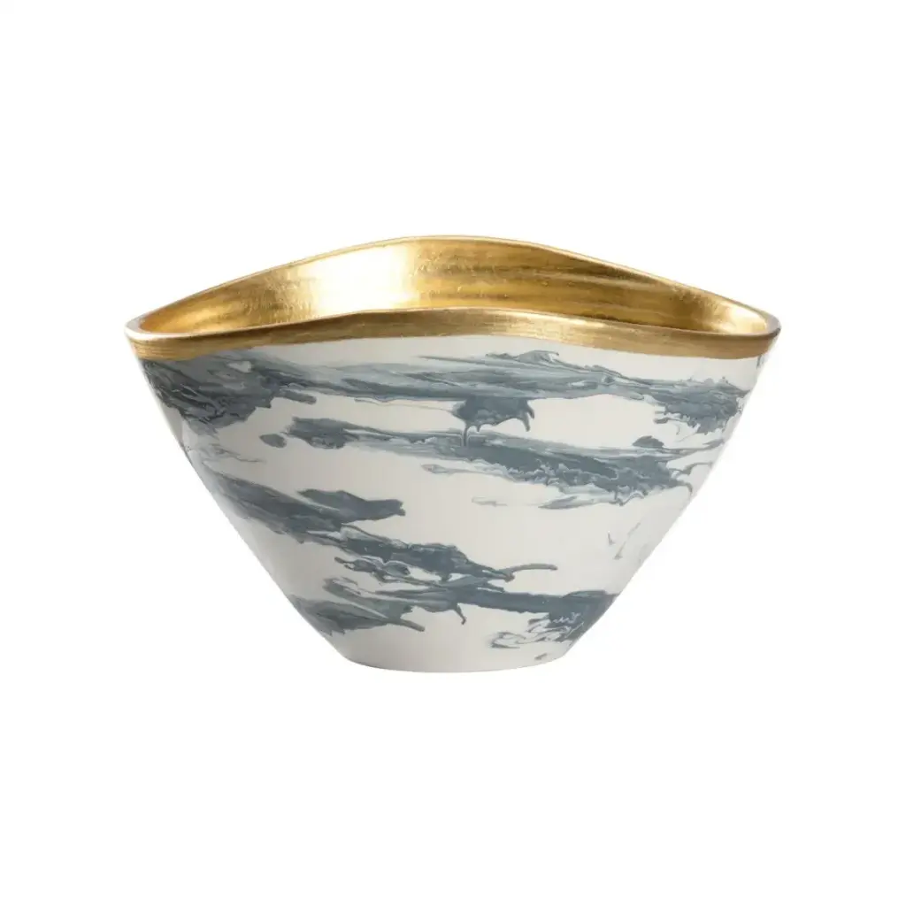 A piece of art that will catch anyone’s eye. The Grigio Large Bowl is made by artisans in Italy with love for craftsmanship and design. The grey marble with gold is beautiful as a center piece in your home.