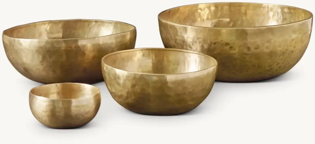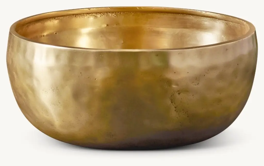 Crafted of solid brass, our bowl's hand-hammered, subtly pitted surface offers rich texture while revealing the mark of the artisan's hand.