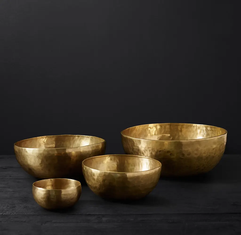 Crafted of solid brass, our bowl's hand-hammered, subtly pitted surface offers rich texture while revealing the mark of the artisan's hand.