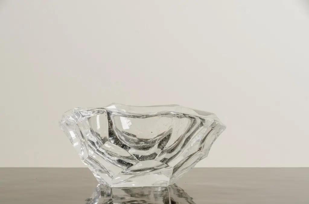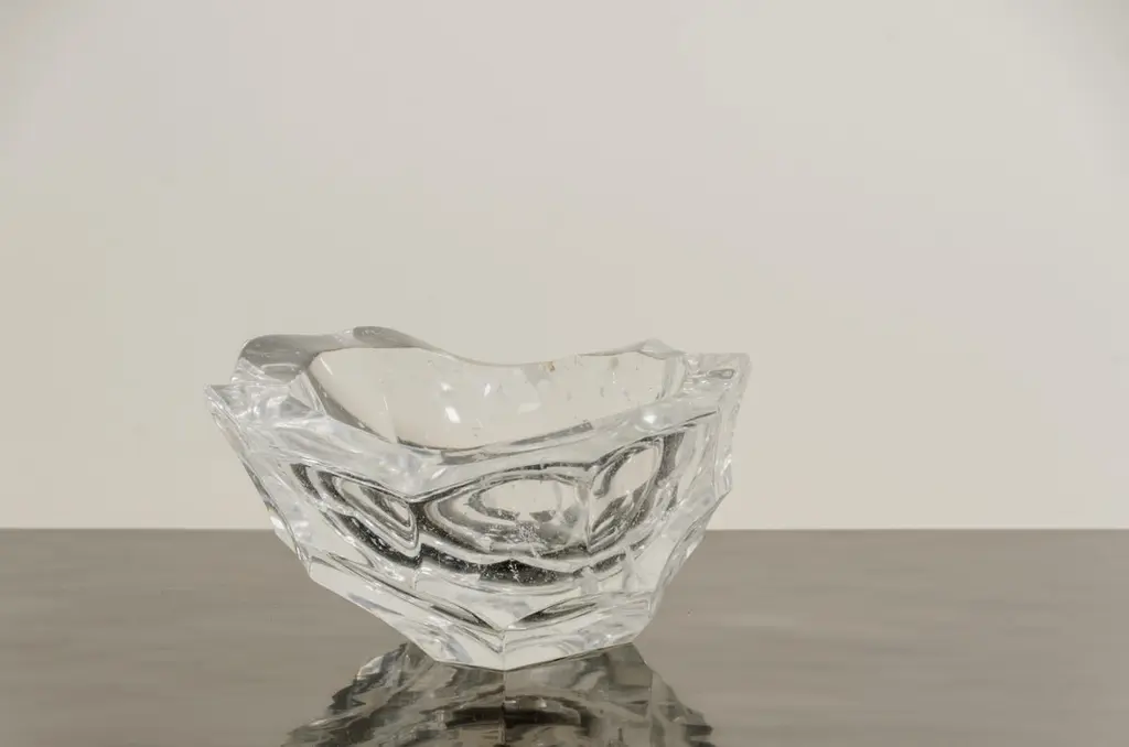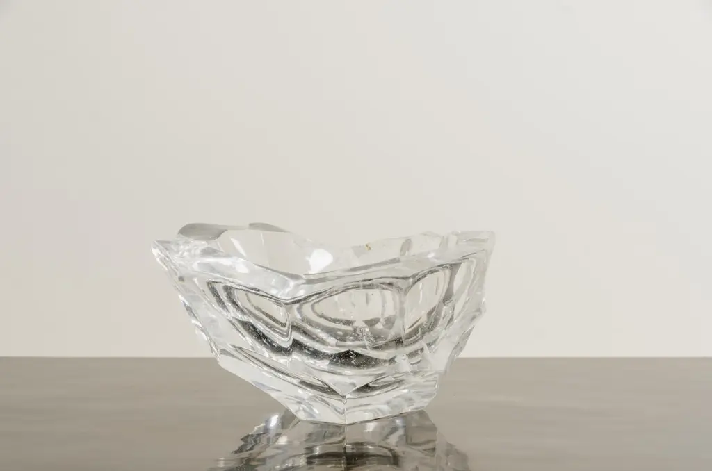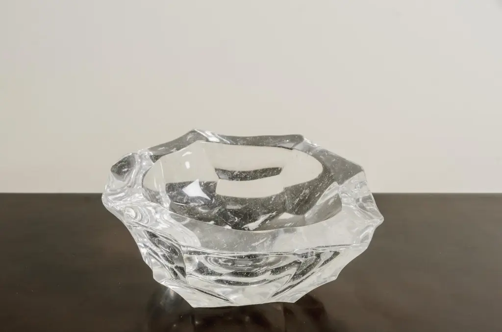 Hand Carved Crystal Bamboo Shaven Design Bowl By Robert Kuo, Limited