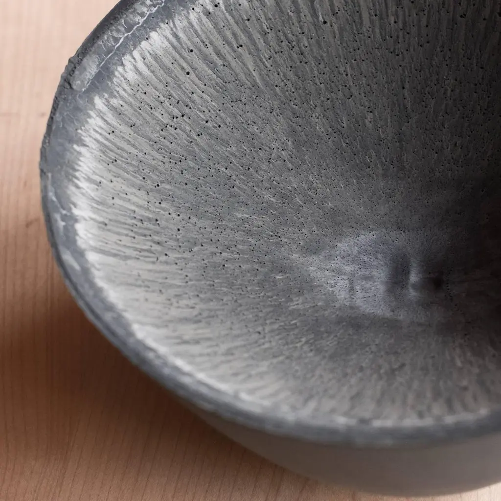 A collection of 236 unique bowls, the Concrete series by UMÉ Studio expresses the tension between heavy concrete and its delicate edge generated by hand pouring. While one assumes concrete should be strong and durable, it is, at its core, fragile. This duality invites touch and contemplation, making it the perfect vessel for daily inspiration and display. Each cast is a unique piece, handmade, and one of a kind.Bowl 226Measures: 5-11"; round3-7"; tall2-4 lbsBlack / Charcoal / AshCast concrete / Gypsum cement / Mica and natural pigments.Items are inherently fragile and should be handled with care, kept away from liquids. Bowls are not food safe.Pieces can be made to order if ordering in quantities of six or moreSize: Between 3 inch (7cm) diameter - 13 inch (33cm) diameterColor: White speckle, grey speckle and black.