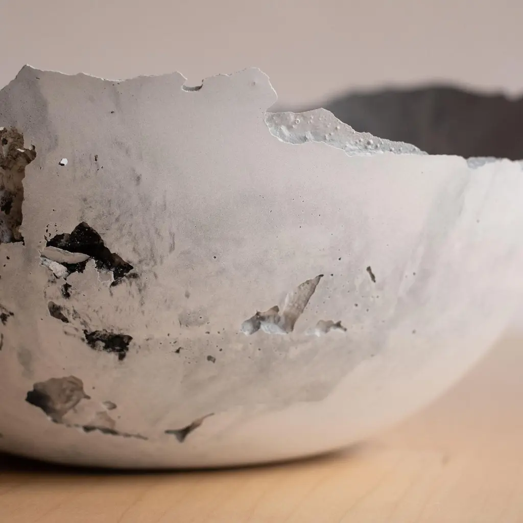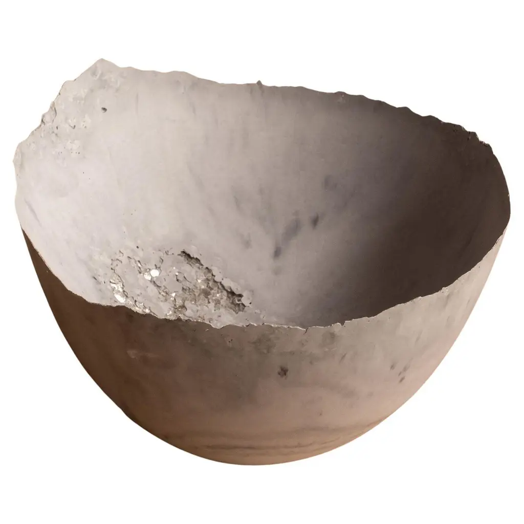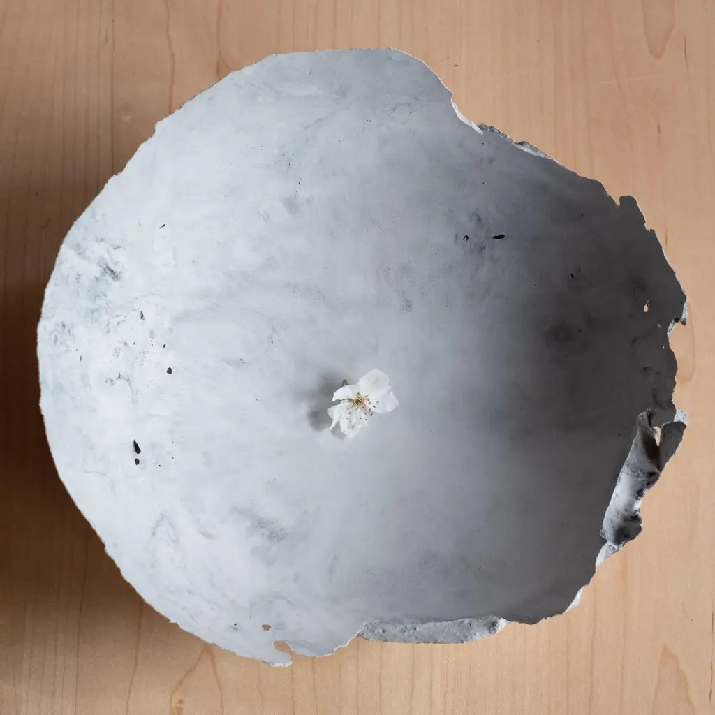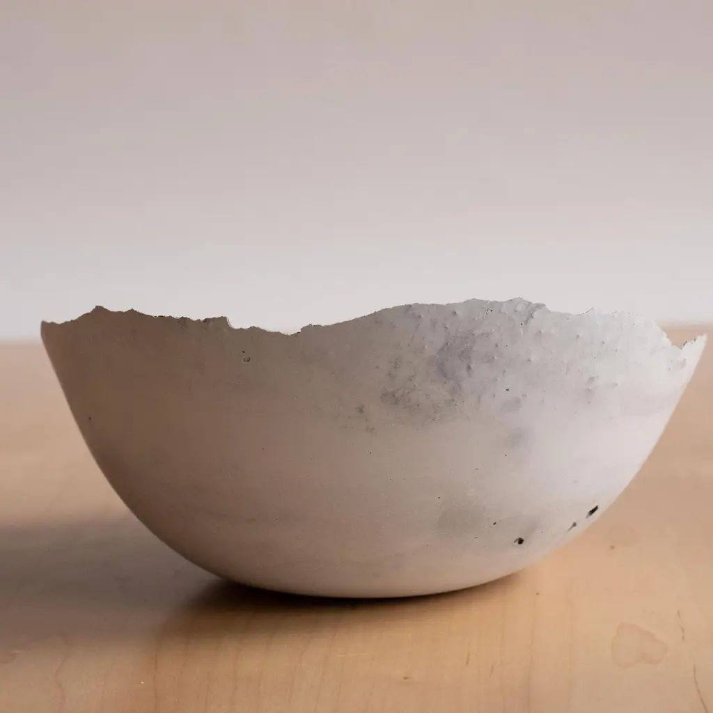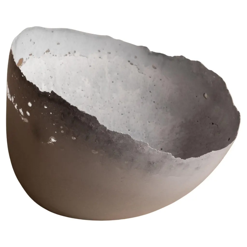 An edition of 150 unique bowls, the concrete Series by UMÉ Studio expresses the tension between heavy concrete and its delicate edge generated by hand pouring. While one assumes concrete should be strong and durable, it is, at its core, fragile. This duality invites touch and contemplation, making it the perfect vessel for daily inspiration and display. Each cast is a unique piece, handmade and one of a kind. Bowl 471GreyCast concrete / Gypsum cement / Mica and natural pigments Items are inherently fragile and should be handled with care, kept away from liquids. Bowls are not food safe.Pieces can be customized if ordered in quantities of six or moreSize: Diameter between 3 inches (7cm) - 13 inches (33cm)Height: Between 3 inches (7cm) - 8 inches (20cm)Color: White speckle, grey speckle, black.