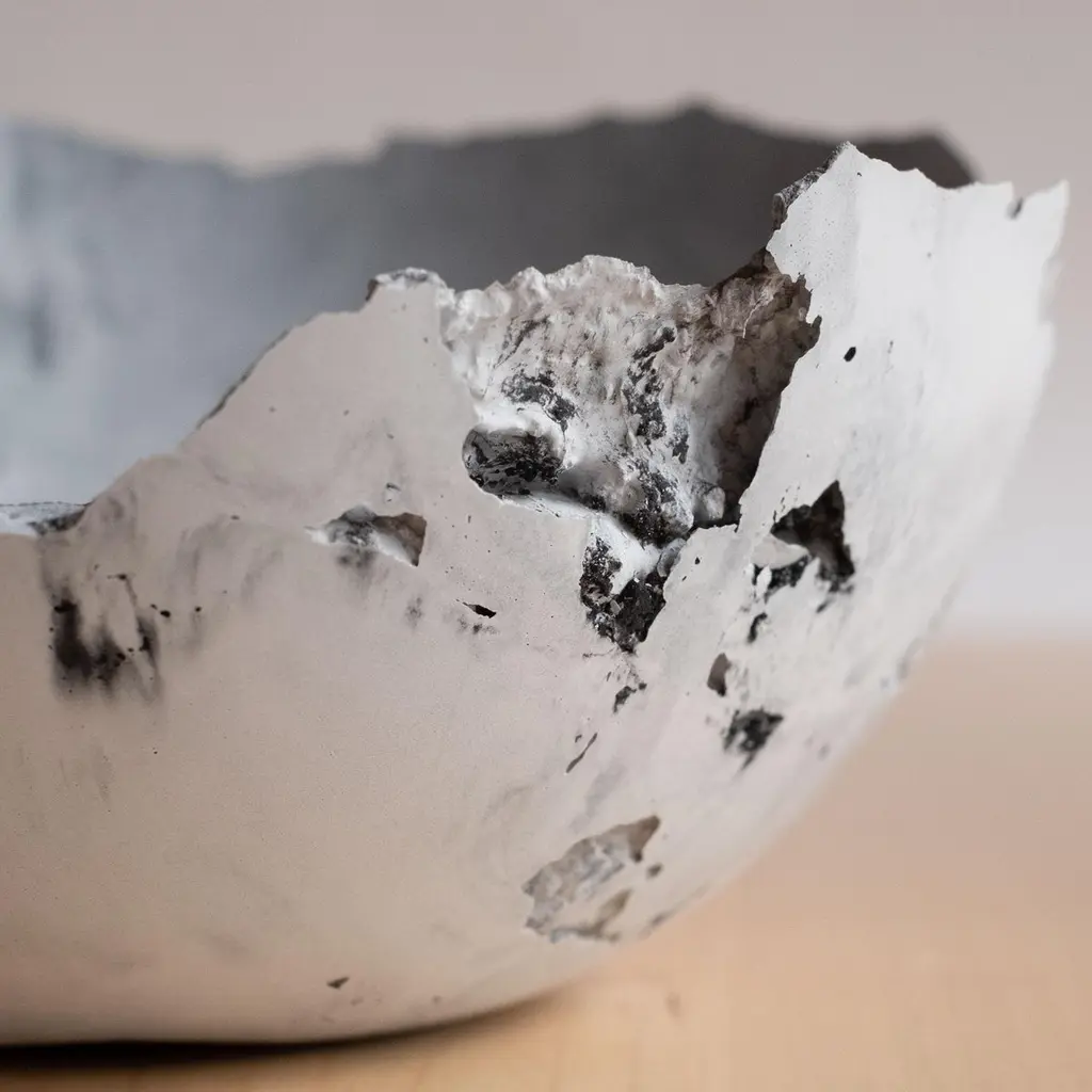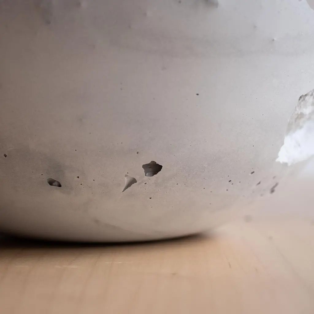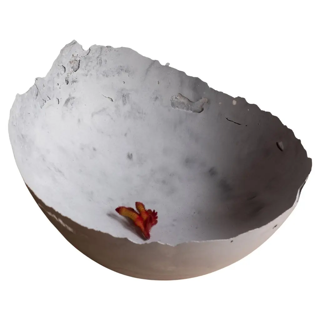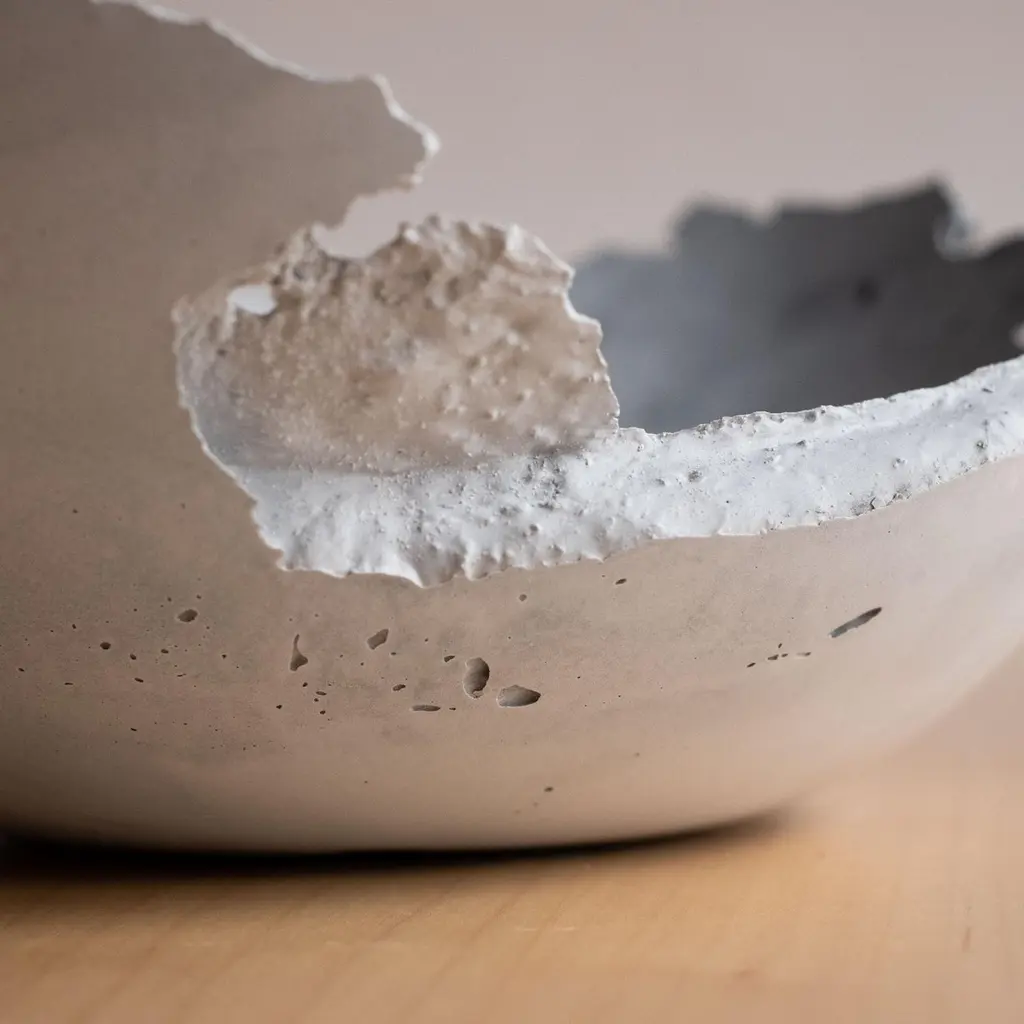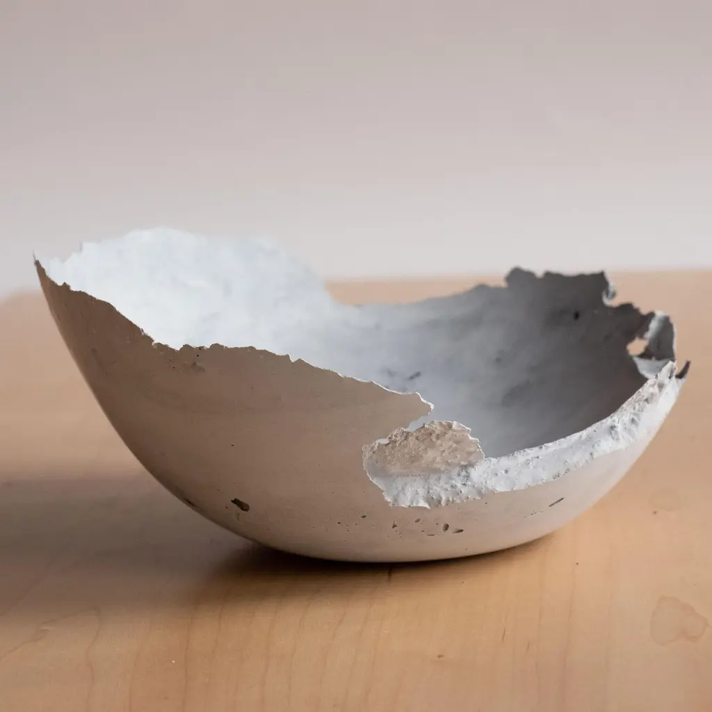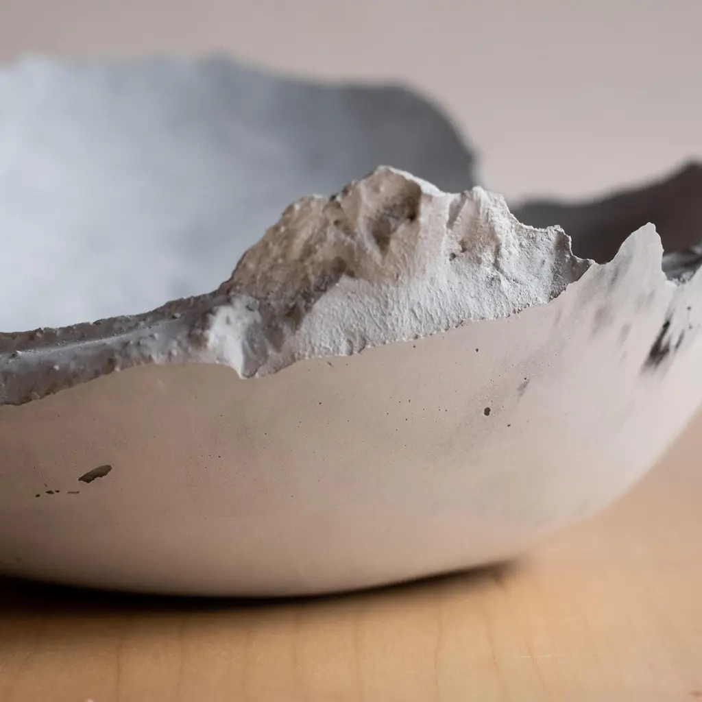 An edition of 150 unique bowls, the concrete Series by UMÉ Studio expresses the tension between heavy concrete and its delicate edge generated by hand pouring. While one assumes concrete should be strong and durable, it is, at its core, fragile. This duality invites touch and contemplation, making it the perfect vessel for daily inspiration and display. Each cast is a unique piece, handmade and one of a kind. Bowl 471GreyCast concrete / Gypsum cement / Mica and natural pigments Items are inherently fragile and should be handled with care, kept away from liquids. Bowls are not food safe.Pieces can be customized if ordered in quantities of six or moreSize: Diameter between 3 inches (7cm) - 13 inches (33cm)Height: Between 3 inches (7cm) - 8 inches (20cm)Color: White speckle, grey speckle, black.