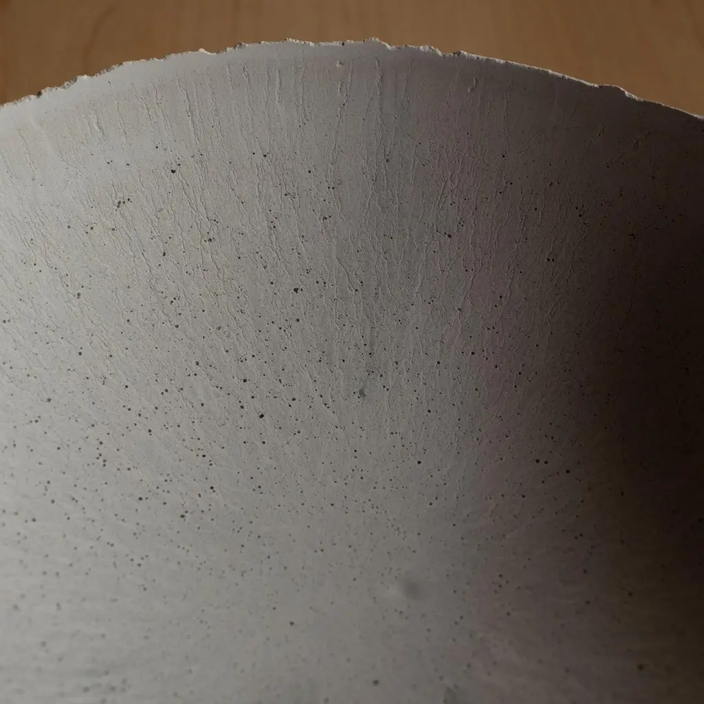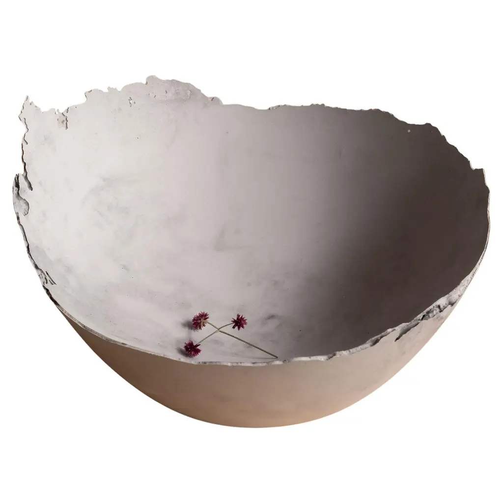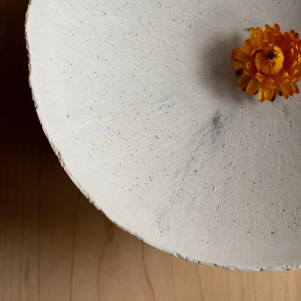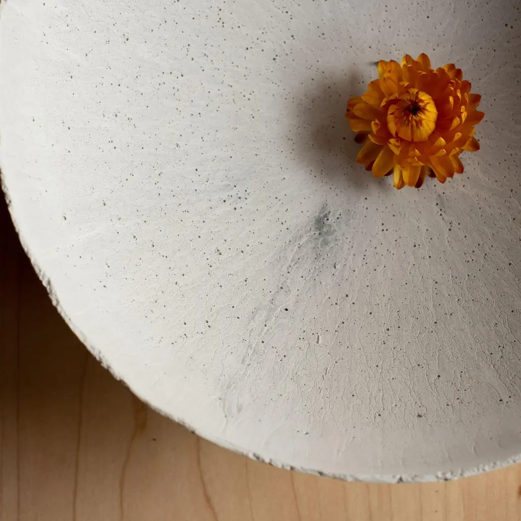 An edition of 150 unique bowls, the Concrete Series by UMÉ Studio expresses the tension between heavy concrete and its delicate edge generated by hand pouring. While one assumes concrete should be strong and durable, it is, at its core, fragile. This duality invites touch and contemplation, making it the perfect vessel for daily inspiration and display. Each cast is a unique piece, handmade and one of a kind. Bowl 376GreyCast concrete / Gypsum cement / Mica and natural pigments Items are inherently fragile and should be handled with care, kept away from liquids. Bowls are not food safe.Pieces can be customized if ordered in quantities of six or moreSize: Diameter between 3 inches (7cm) - 13 inches (33cm)Height: Between 3 inches (7cm) - 8 inches (20cm)Color: White speckle, grey speckle, black.