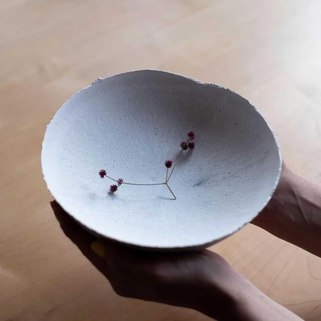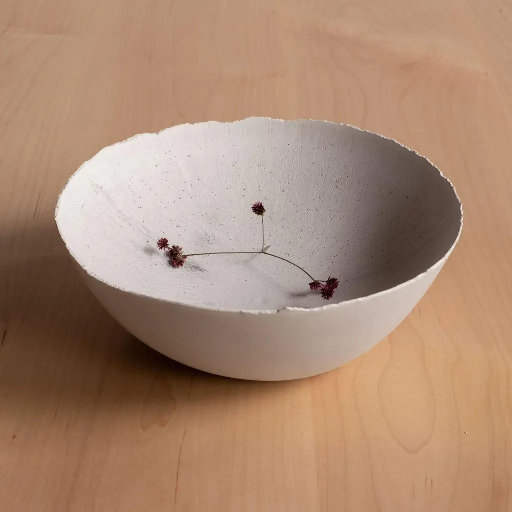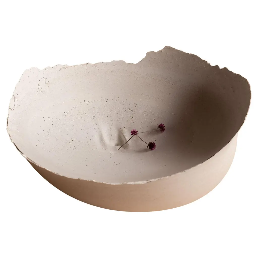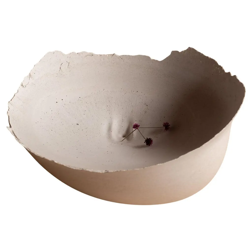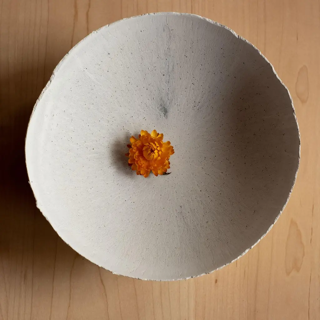 An edition of 150 unique bowls, the Concrete Series by UMÉ Studio expresses the tension between heavy concrete and its delicate edge generated by hand pouring. While one assumes concrete should be strong and durable, it is, at its core, fragile. This duality invites touch and contemplation, making it the perfect vessel for daily inspiration and display. Each cast is a unique piece, handmade and one of a kind. Bowl 376GreyCast concrete / Gypsum cement / Mica and natural pigments Items are inherently fragile and should be handled with care, kept away from liquids. Bowls are not food safe.Pieces can be customized if ordered in quantities of six or moreSize: Diameter between 3 inches (7cm) - 13 inches (33cm)Height: Between 3 inches (7cm) - 8 inches (20cm)Color: White speckle, grey speckle, black.
