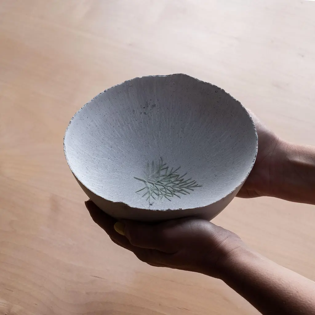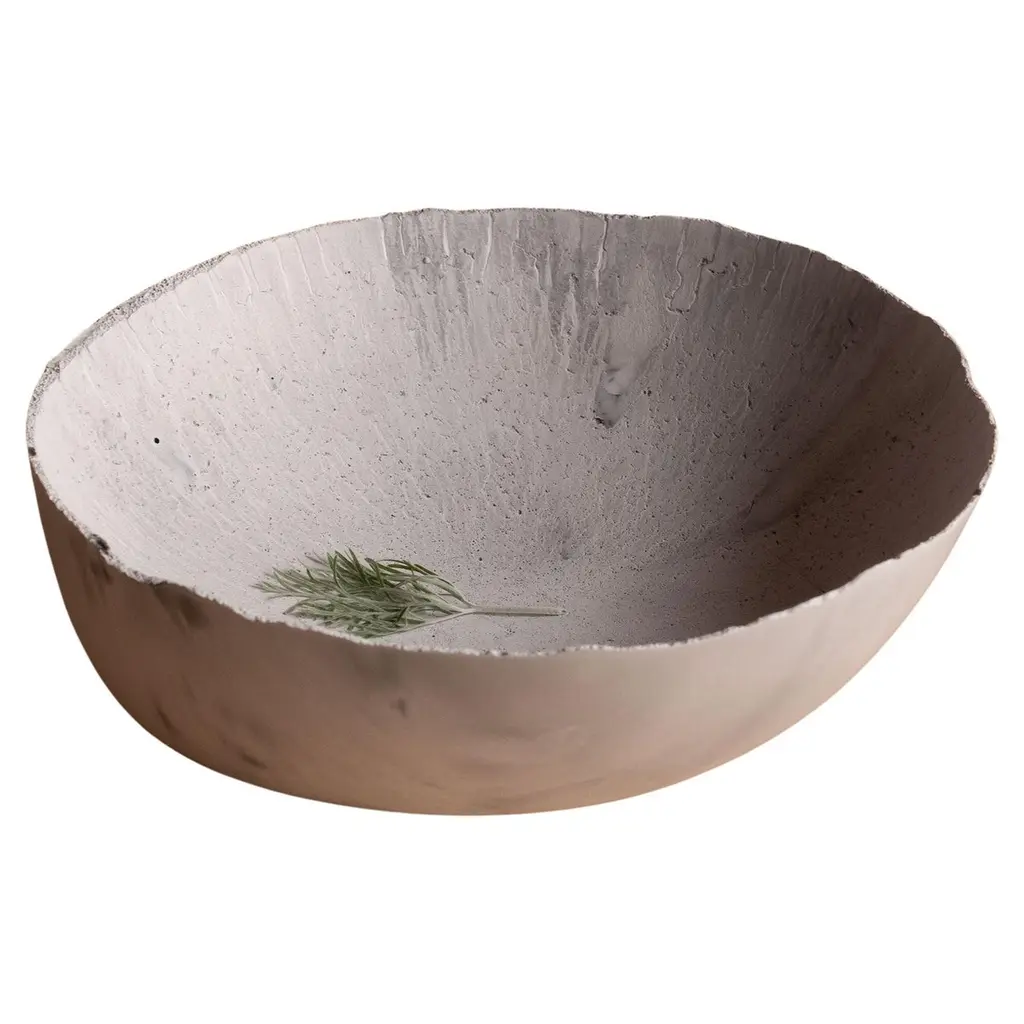 An edition of 150 unique bowls, the concrete Series by UMÉ Studio expresses the tension between heavy concrete and its delicate edge generated by hand pouring. While one assumes concrete should be strong and durable, it is, at its core, fragile. This duality invites touch and contemplation, making it the perfect vessel for daily inspiration and display. Each cast is a unique piece, handmade and one of a kind. Bowl 445GreyCast concrete / Gypsum cement / Mica and natural pigments Items are inherently fragile and should be handled with care, kept away from liquids. Bowls are not food safe.Pieces can be customized if ordered in quantities of six or moreSize: Diameter between 3 inches (7cm) - 13 inches (33cm)Height: Between 3 inches (7cm) - 8 inches (20cm)Color: White speckle, grey speckle, black.