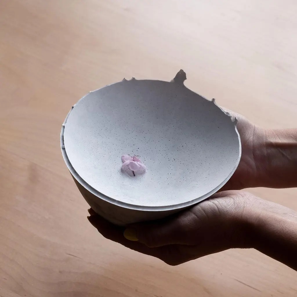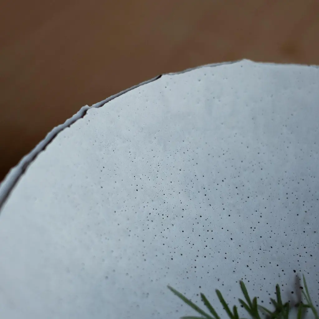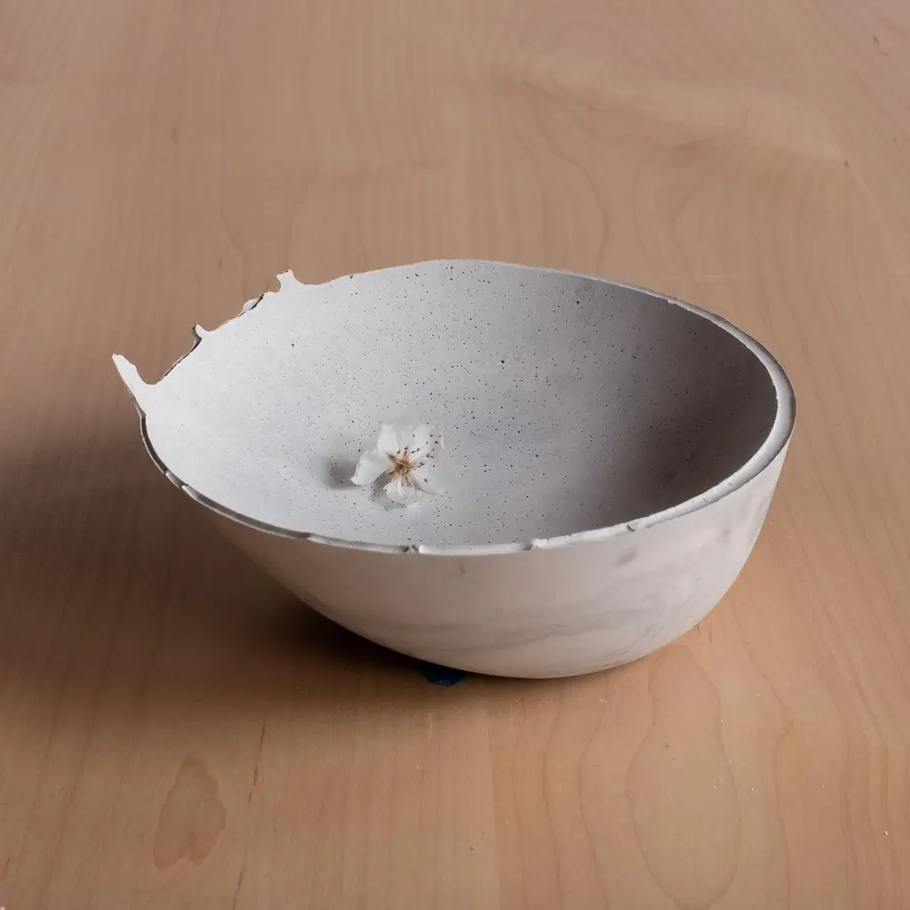 An edition of 150 unique bowls, the concrete Series by UMÉ Studio expresses the tension between heavy concrete and its delicate edge generated by hand pouring. While one assumes concrete should be strong and durable, it is, at its core, fragile. This duality invites touch and contemplation, making it the perfect vessel for daily inspiration and display. Each cast is a unique piece, handmade and one of a kind. Bowl 414GreyCast concrete / Gypsum cement / Mica and natural pigments Items are inherently fragile and should be handled with care, kept away from liquids. Bowls are not food safe.Pieces can be customized if ordered in quantities of six or moreSize: Diameter between 3 inches (7cm) - 13 inches (33cm)Height: Between 3 inches (7cm) - 8 inches (20cm)Color: White speckle, grey speckle, black.