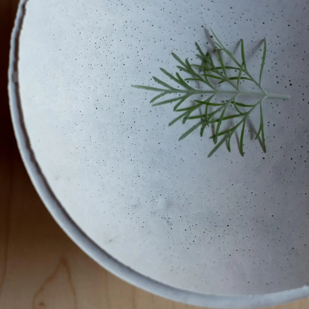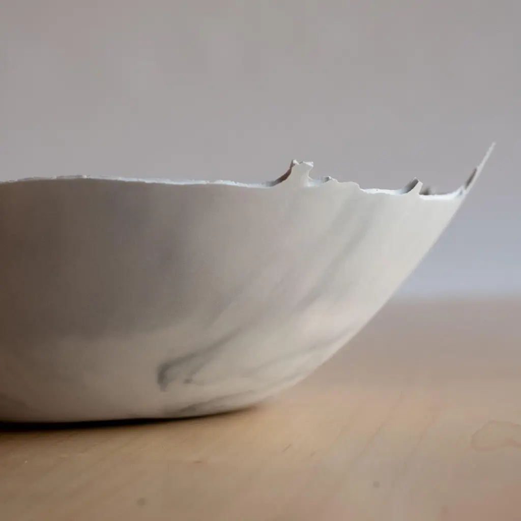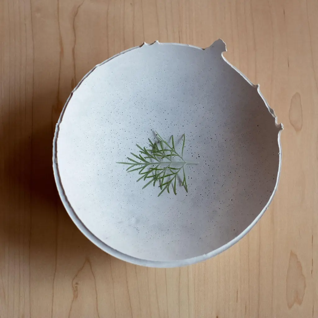An edition of 150 unique bowls, the concrete Series by UMÉ Studio expresses the tension between heavy concrete and its delicate edge generated by hand pouring. While one assumes concrete should be strong and durable, it is, at its core, fragile. This duality invites touch and contemplation, making it the perfect vessel for daily inspiration and display. Each cast is a unique piece, handmade and one of a kind. Bowl 414GreyCast concrete / Gypsum cement / Mica and natural pigments Items are inherently fragile and should be handled with care, kept away from liquids. Bowls are not food safe.Pieces can be customized if ordered in quantities of six or moreSize: Diameter between 3 inches (7cm) - 13 inches (33cm)Height: Between 3 inches (7cm) - 8 inches (20cm)Color: White speckle, grey speckle, black.