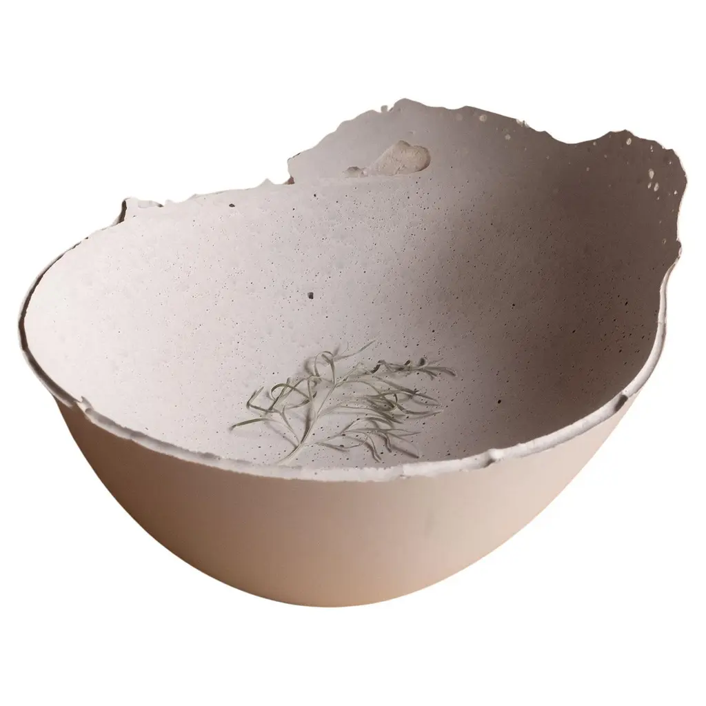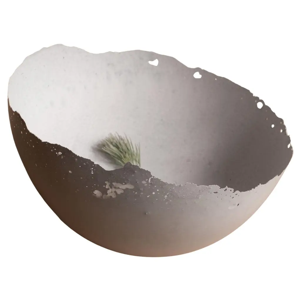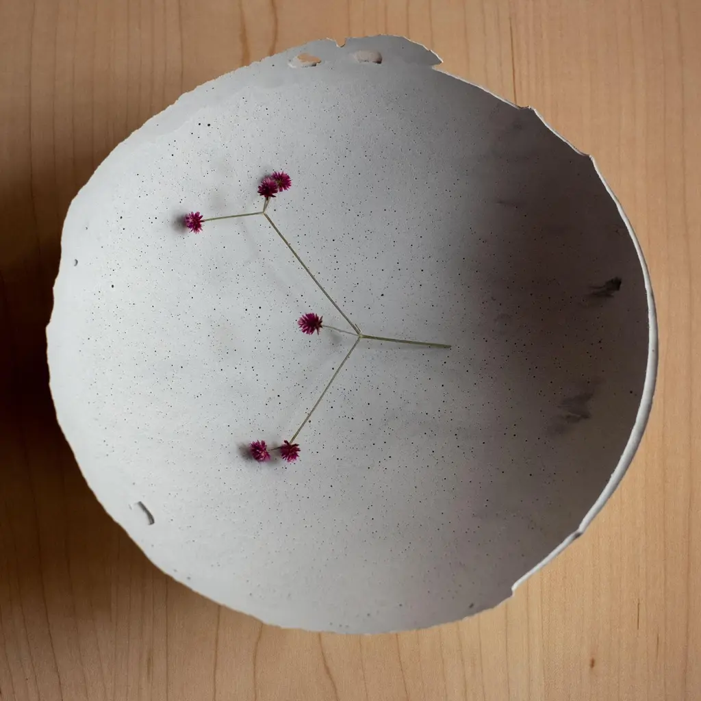 An edition of 150 unique bowls, the concrete Series by UMÉ Studio expresses the tension between heavy concrete and its delicate edge generated by hand pouring. While one assumes concrete should be strong and durable, it is, at its core, fragile. This duality invites touch and contemplation, making it the perfect vessel for daily inspiration and display. Each cast is a unique piece, handmade and one of a kind. Bowl 426GreyCast concrete / Gypsum cement / Mica and natural pigments Items are inherently fragile and should be handled with care, kept away from liquids. Bowls are not food safe.Pieces can be customized if ordered in quantities of six or moreSize: Diameter between 3 inches (7cm) - 13 inches (33cm)Height: Between 3 inches (7cm) - 8 inches (20cm)Color: White speckle, grey speckle, black.