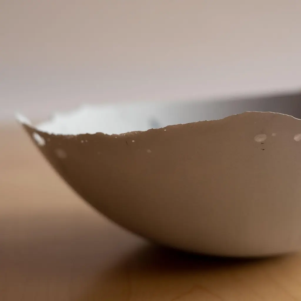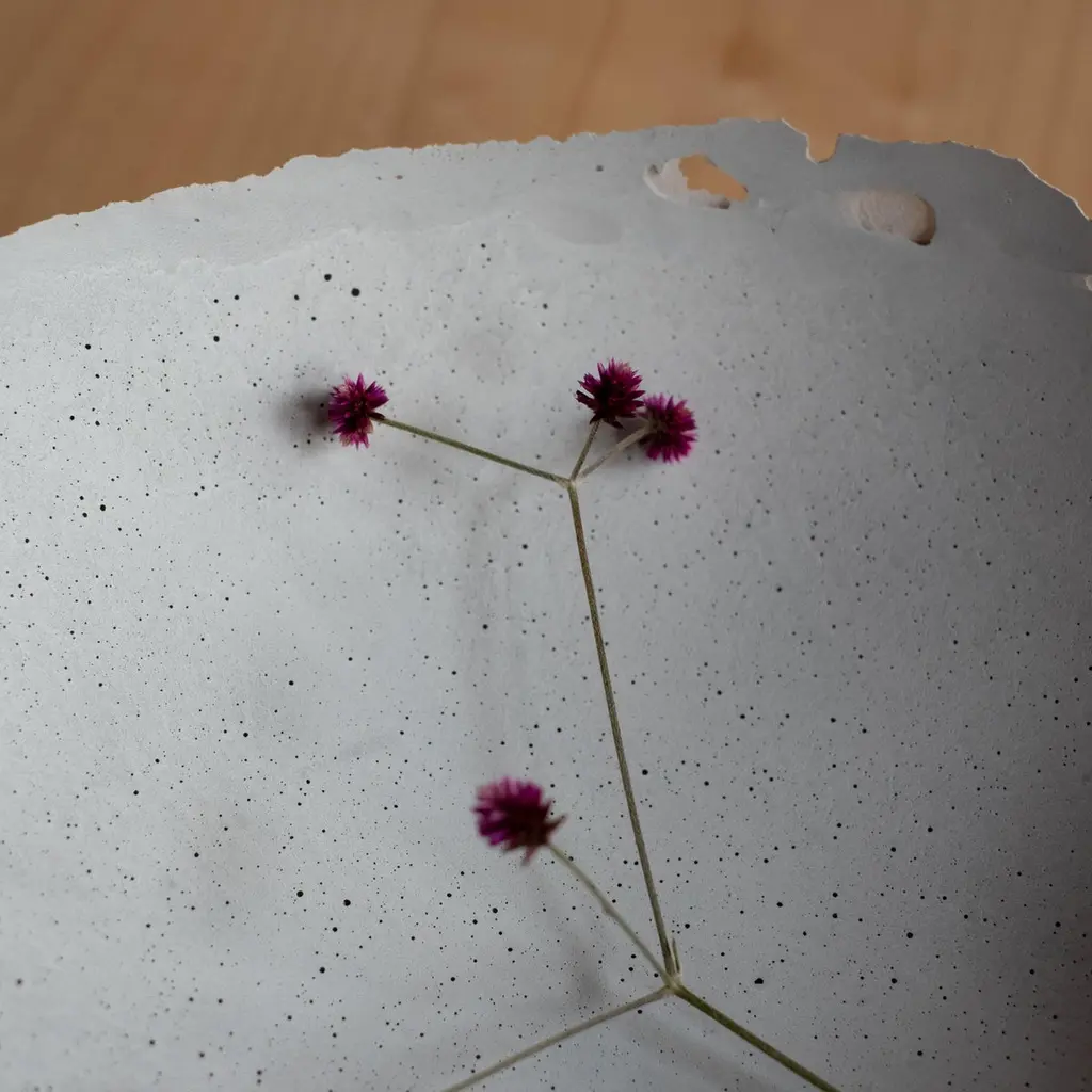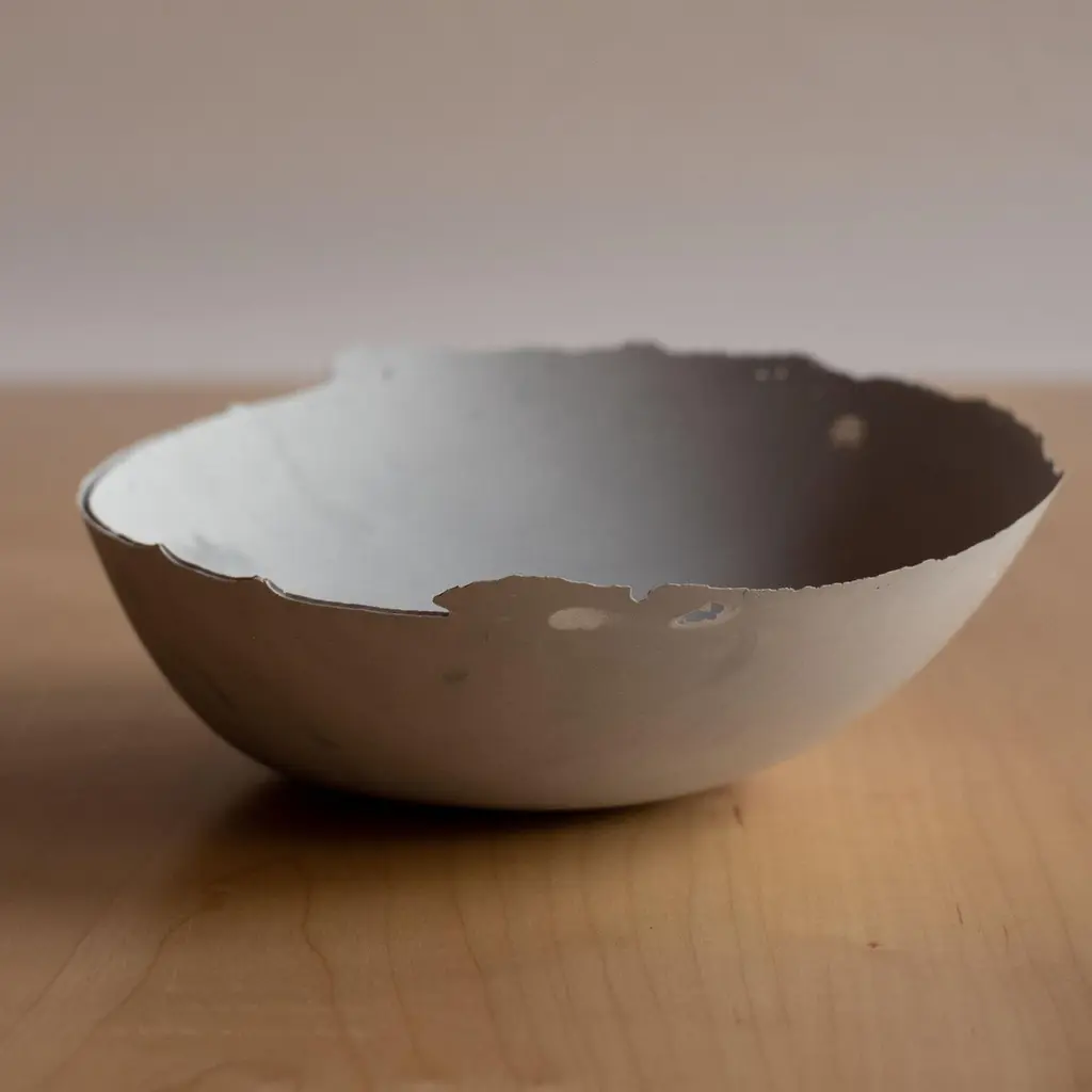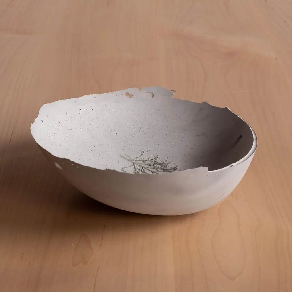 An edition of 150 unique bowls, the concrete Series by UMÉ Studio expresses the tension between heavy concrete and its delicate edge generated by hand pouring. While one assumes concrete should be strong and durable, it is, at its core, fragile. This duality invites touch and contemplation, making it the perfect vessel for daily inspiration and display. Each cast is a unique piece, handmade and one of a kind. Bowl 426GreyCast concrete / Gypsum cement / Mica and natural pigments Items are inherently fragile and should be handled with care, kept away from liquids. Bowls are not food safe.Pieces can be customized if ordered in quantities of six or moreSize: Diameter between 3 inches (7cm) - 13 inches (33cm)Height: Between 3 inches (7cm) - 8 inches (20cm)Color: White speckle, grey speckle, black.