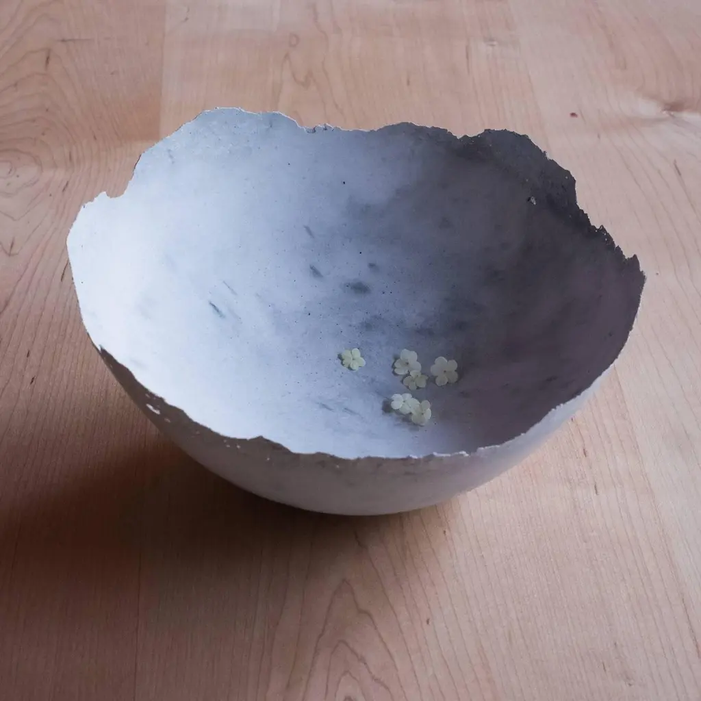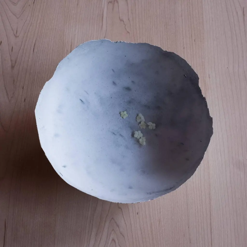 A collection of 236 unique bowls, the Concrete Series by UMÉ Studio expresses the tension between heavy concrete and its delicate edge generated by hand pouring. While one assumes concrete should be strong and durable, it is, at its core, fragile. This duality invites touch and contemplation, making it the perfect vessel for daily inspiration and display. Each cast is a unique piece, handmade and one of a kind. Bowl 170GreyCast concrete / Gypsum cement / Mica and natural pigments Items are inherently fragile and should be handled with care, kept away from liquids. Bowls are not food safe.Pieces can be customized if ordered in quantities of six or moreSize: Diameter between 3 inches (7cm) - 13 inches (33cm)Height: Between 3 inches (7cm) - 8 inches (20cm)Color: White speckle, grey speckle, black.