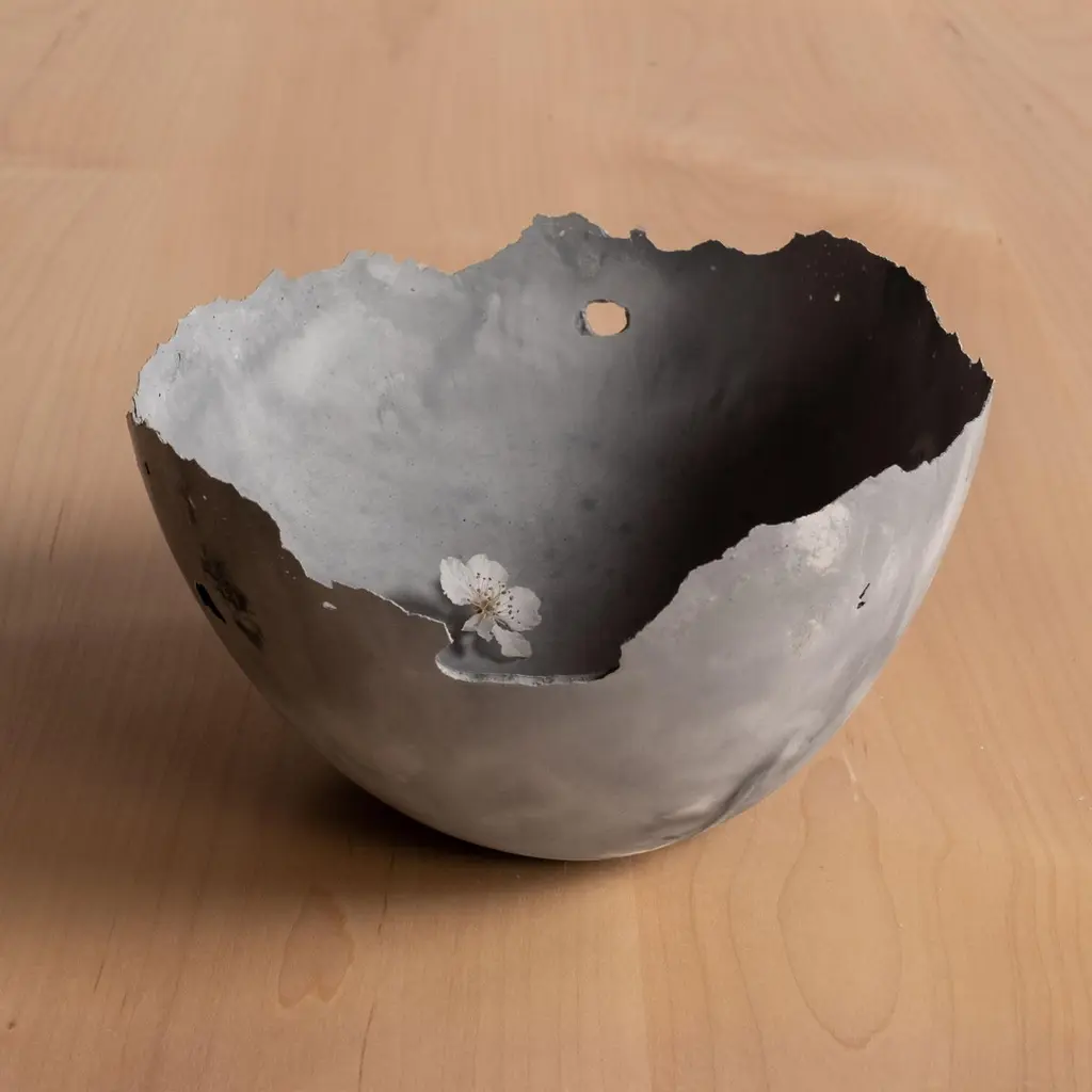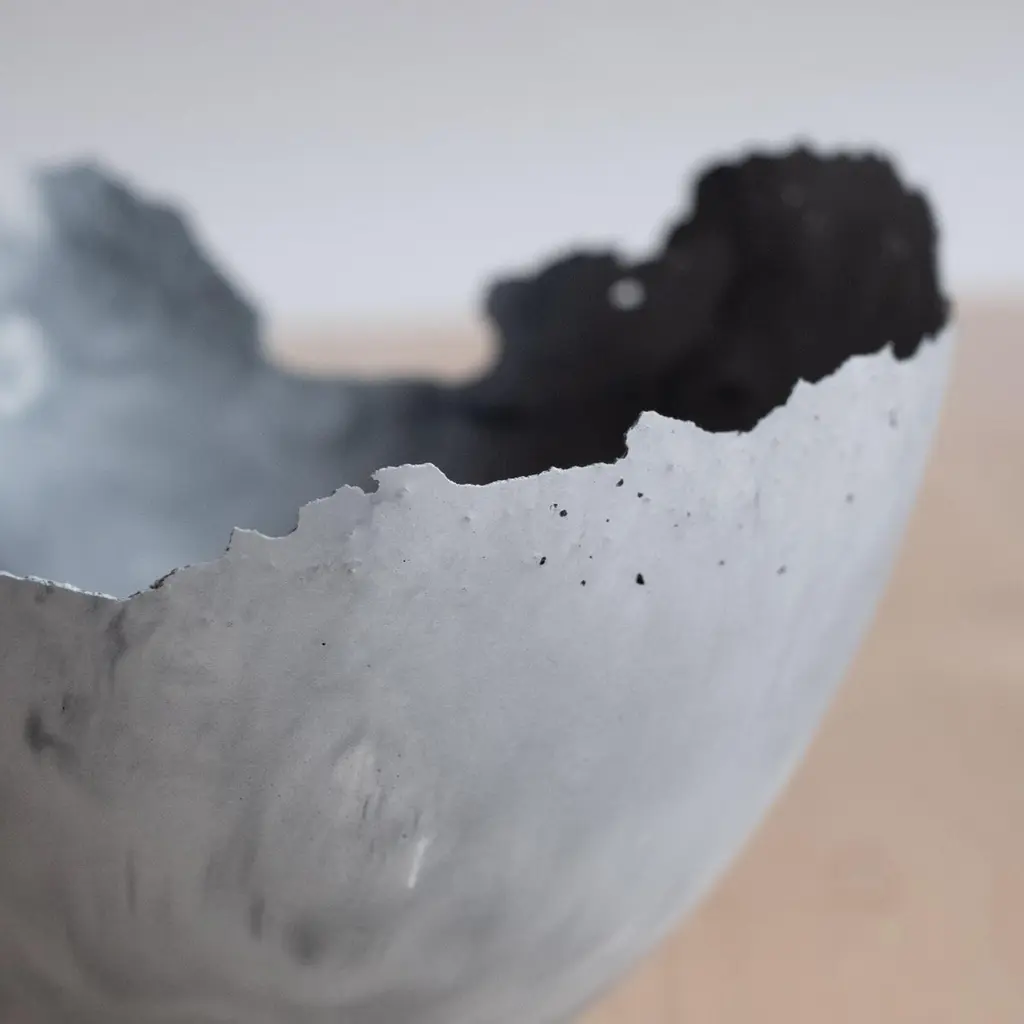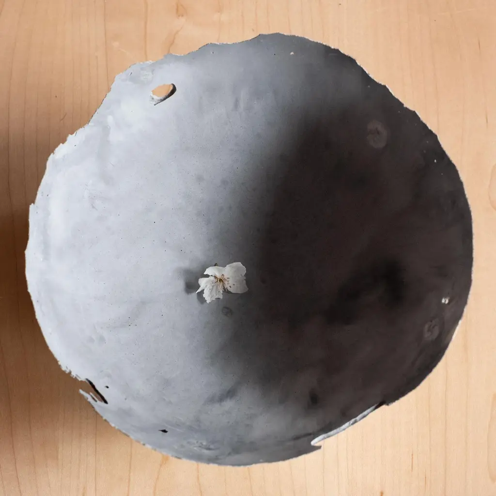 An edition of 150 unique bowls, the concrete Series by UMÉ Studio expresses the tension between heavy concrete and its delicate edge generated by hand pouring. While one assumes concrete should be strong and durable, it is, at its core, fragile. This duality invites touch and contemplation, making it the perfect vessel for daily inspiration and display. Each cast is a unique piece, handmade and one of a kind. Bowl 402GreyCast concrete / Gypsum cement / Mica and natural pigments Items are inherently fragile and should be handled with care, kept away from liquids. Bowls are not food safe.Pieces can be customized if ordered in quantities of six or moreSize: Diameter between 3 inches (7cm) - 13 inches (33cm)Height: Between 3 inches (7cm) - 8 inches (20cm)Color: White speckle, grey speckle, black.