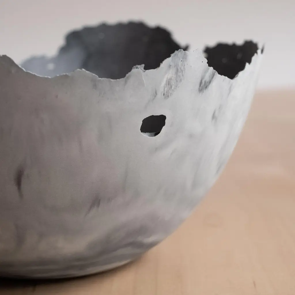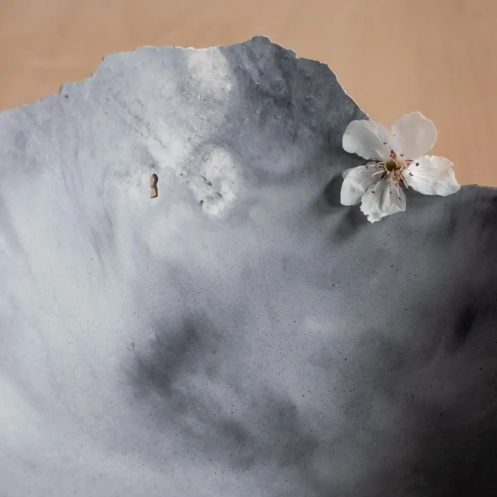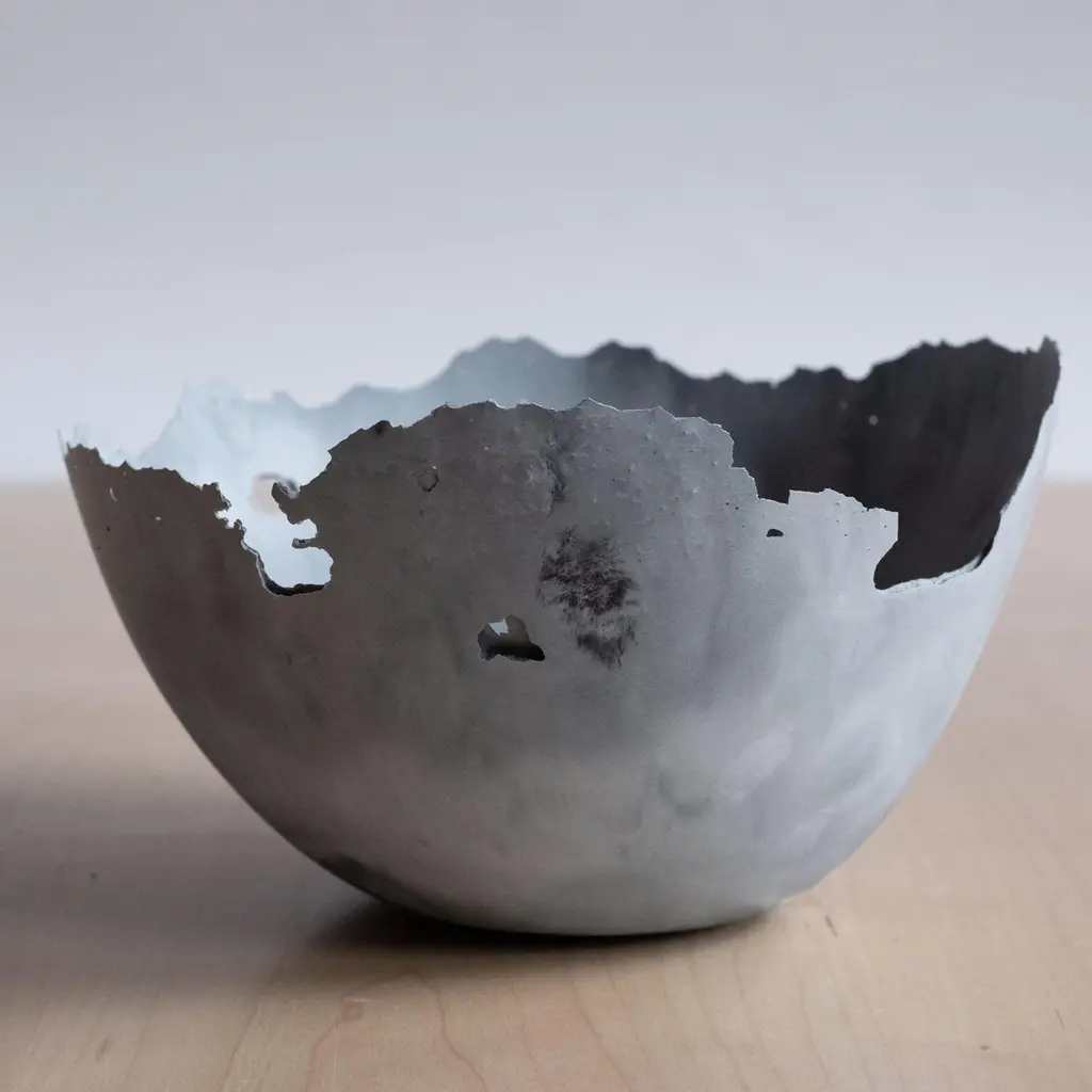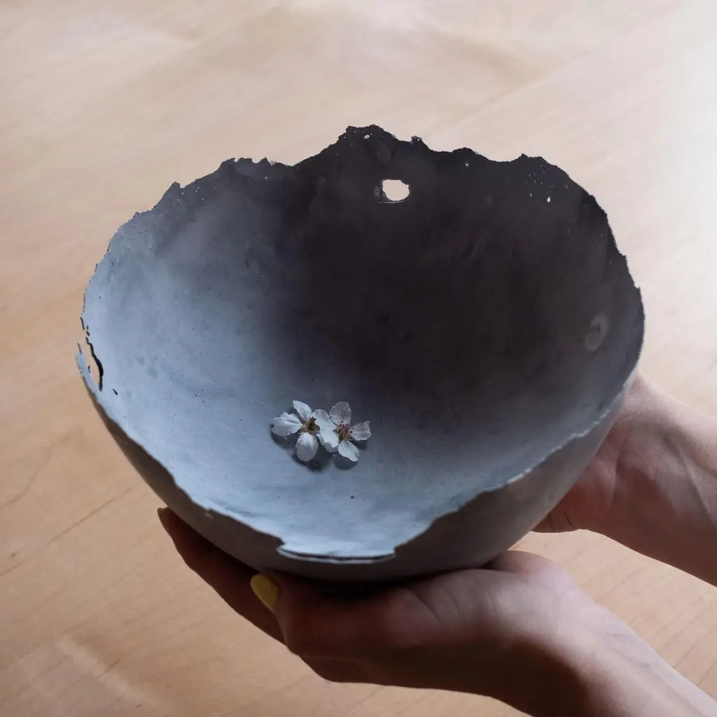 An edition of 150 unique bowls, the concrete Series by UMÉ Studio expresses the tension between heavy concrete and its delicate edge generated by hand pouring. While one assumes concrete should be strong and durable, it is, at its core, fragile. This duality invites touch and contemplation, making it the perfect vessel for daily inspiration and display. Each cast is a unique piece, handmade and one of a kind. Bowl 402GreyCast concrete / Gypsum cement / Mica and natural pigments Items are inherently fragile and should be handled with care, kept away from liquids. Bowls are not food safe.Pieces can be customized if ordered in quantities of six or moreSize: Diameter between 3 inches (7cm) - 13 inches (33cm)Height: Between 3 inches (7cm) - 8 inches (20cm)Color: White speckle, grey speckle, black.