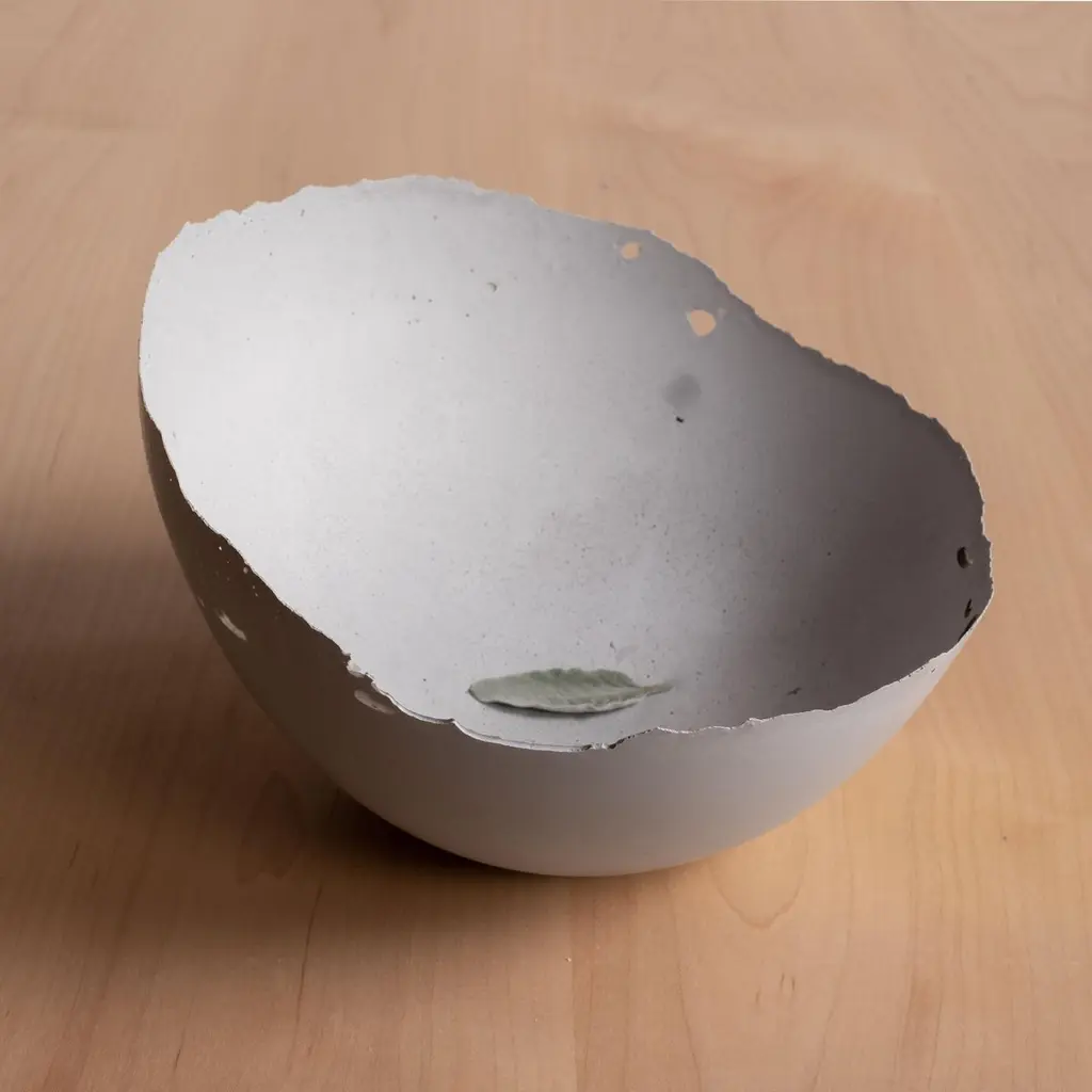 An edition of 150 unique bowls, the concrete Series by UMÉ Studio expresses the tension between heavy concrete and its delicate edge generated by hand pouring. While one assumes concrete should be strong and durable, it is, at its core, fragile. This duality invites touch and contemplation, making it the perfect vessel for daily inspiration and display. Each cast is a unique piece, handmade and one of a kind. Bowl 408GreyCast concrete / Gypsum cement / Mica and natural pigments Items are inherently fragile and should be handled with care, kept away from liquids. Bowls are not food safe.Pieces can be customized if ordered in quantities of six or moreSize: Diameter between 3 inches (7cm) - 13 inches (33cm)Height: Between 3 inches (7cm) - 8 inches (20cm)Color: White speckle, grey speckle, black.