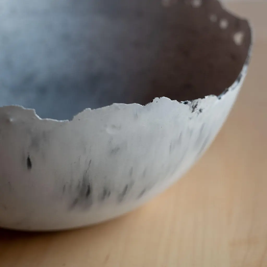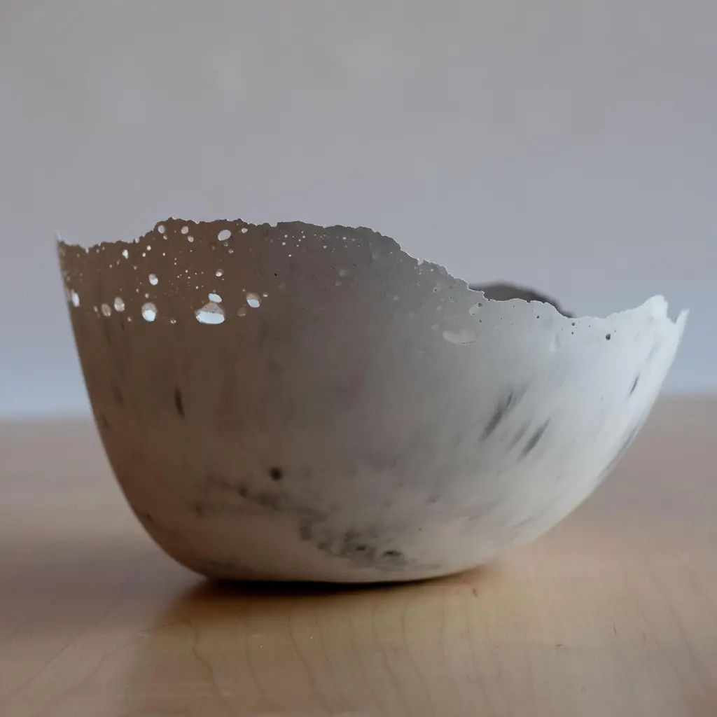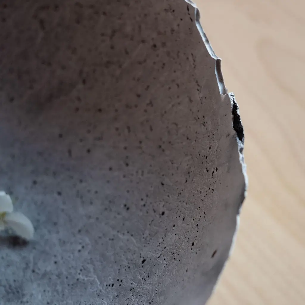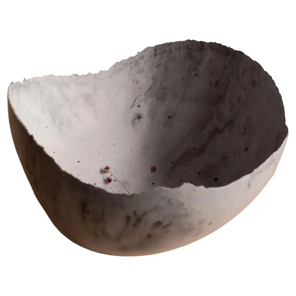 An edition of 150 unique bowls, the concrete Series by UMÉ Studio expresses the tension between heavy concrete and its delicate edge generated by hand pouring. While one assumes concrete should be strong and durable, it is, at its core, fragile. This duality invites touch and contemplation, making it the perfect vessel for daily inspiration and display. Each cast is a unique piece, handmade and one of a kind. Bowl 410GreyCast concrete / Gypsum cement / Mica and natural pigments Items are inherently fragile and should be handled with care, kept away from liquids. Bowls are not food safe.Pieces can be customized if ordered in quantities of six or moreSize: Diameter between 3 inches (7cm) - 13 inches (33cm)Height: Between 3 inches (7cm) - 8 inches (20cm)Color: White speckle, grey speckle, black.