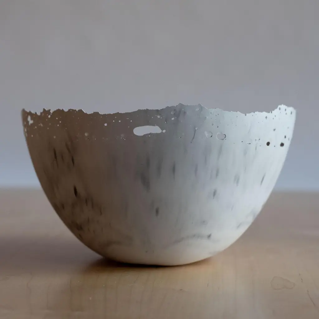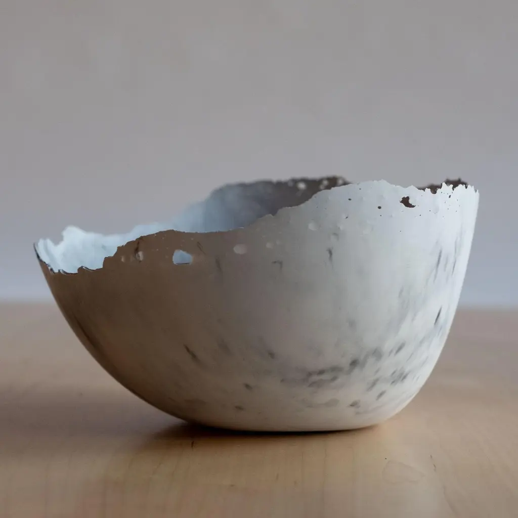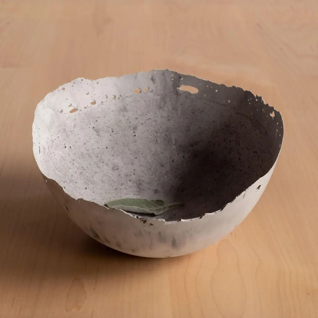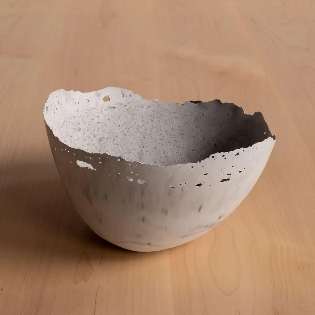 An edition of 150 unique bowls, the concrete Series by UMÉ Studio expresses the tension between heavy concrete and its delicate edge generated by hand pouring. While one assumes concrete should be strong and durable, it is, at its core, fragile. This duality invites touch and contemplation, making it the perfect vessel for daily inspiration and display. Each cast is a unique piece, handmade and one of a kind. Bowl 410GreyCast concrete / Gypsum cement / Mica and natural pigments Items are inherently fragile and should be handled with care, kept away from liquids. Bowls are not food safe.Pieces can be customized if ordered in quantities of six or moreSize: Diameter between 3 inches (7cm) - 13 inches (33cm)Height: Between 3 inches (7cm) - 8 inches (20cm)Color: White speckle, grey speckle, black.