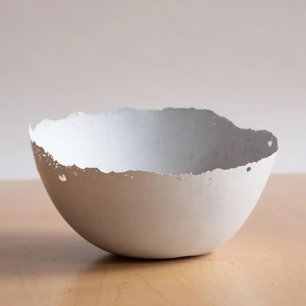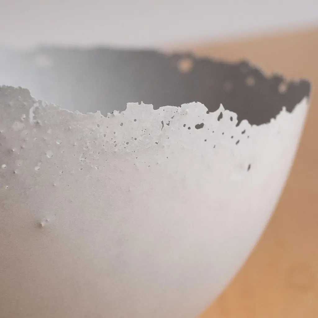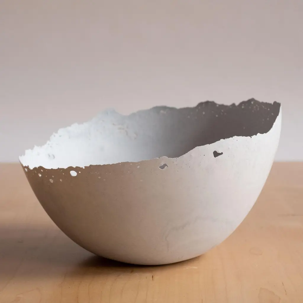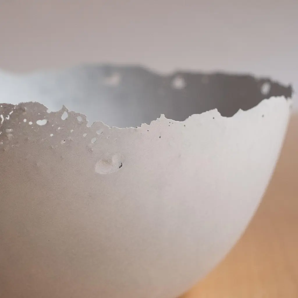 An edition of 150 unique bowls, the concrete Series by UMÉ Studio expresses the tension between heavy concrete and its delicate edge generated by hand pouring. While one assumes concrete should be strong and durable, it is, at its core, fragile. This duality invites touch and contemplation, making it the perfect vessel for daily inspiration and display. Each cast is a unique piece, handmade and one of a kind. Bowl 482GreyCast concrete / Gypsum cement / Mica and natural pigments Items are inherently fragile and should be handled with care, kept away from liquids. Bowls are not food safe.Pieces can be customized if ordered in quantities of six or moreSize: Diameter between 3 inches (7cm) - 13 inches (33cm)Height: Between 3 inches (7cm) - 8 inches (20cm)Color: White speckle, grey speckle, black.