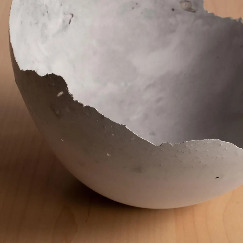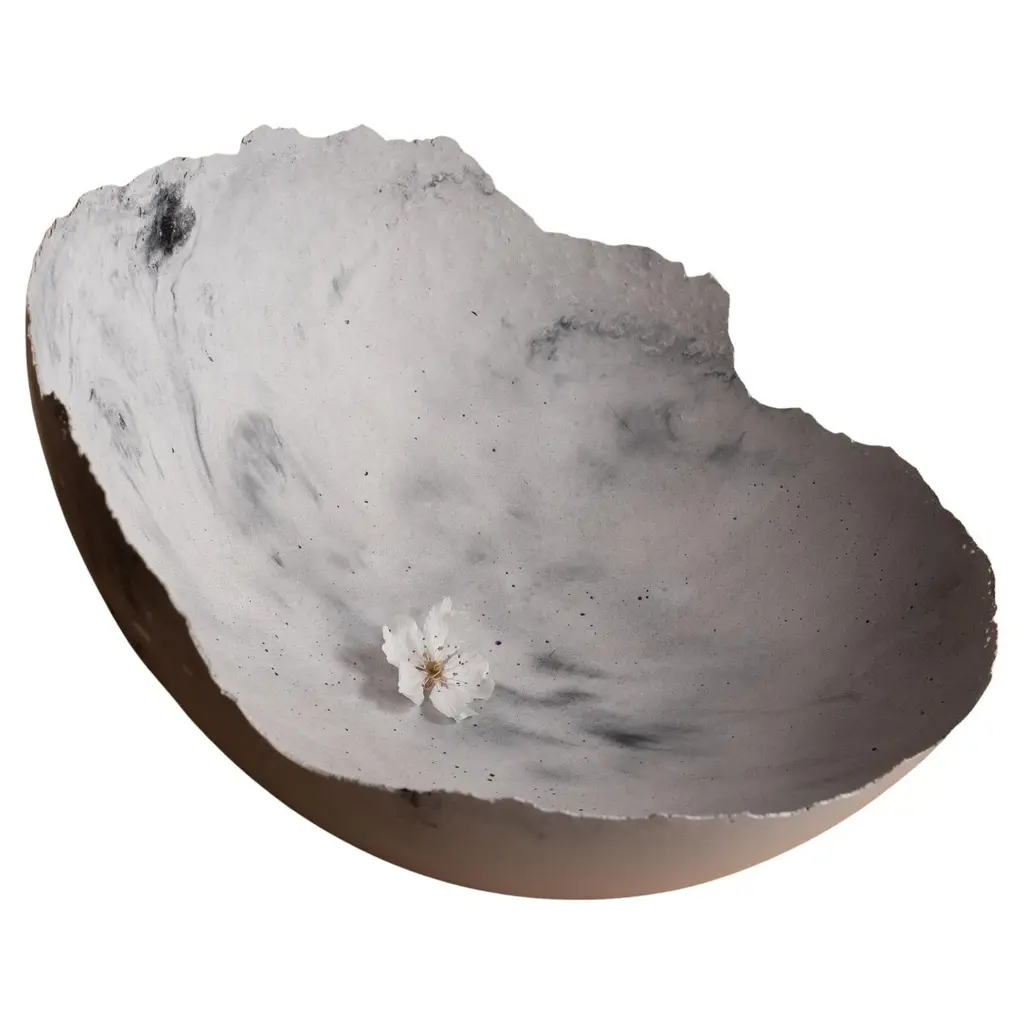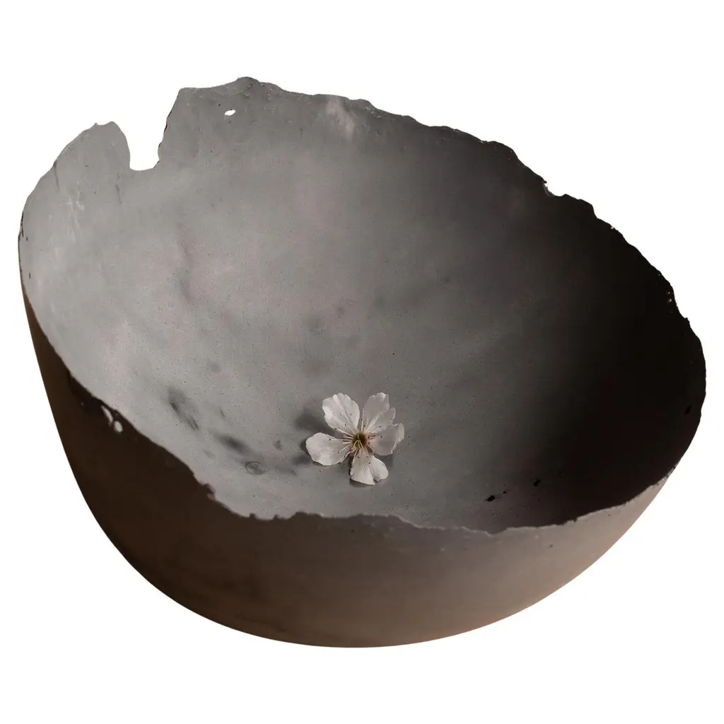 An edition of 150 unique bowls, the concrete Series by UMÉ Studio expresses the tension between heavy concrete and its delicate edge generated by hand pouring. While one assumes concrete should be strong and durable, it is, at its core, fragile. This duality invites touch and contemplation, making it the perfect vessel for daily inspiration and display. Each cast is a unique piece, handmade and one of a kind. Bowl 553GreyCast concrete / Gypsum cement / Mica and natural pigments Items are inherently fragile and should be handled with care, kept away from liquids. Bowls are not food safe.Pieces can be customized if ordered in quantities of six or moreSize: Diameter between 3 inches (7cm) - 13 inches (33cm)Height: Between 3 inches (7cm) - 8 inches (20cm)Color: White speckle, grey speckle, black.