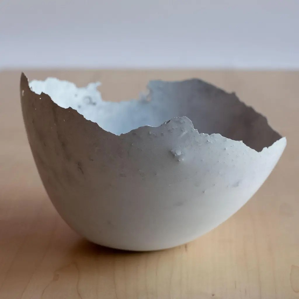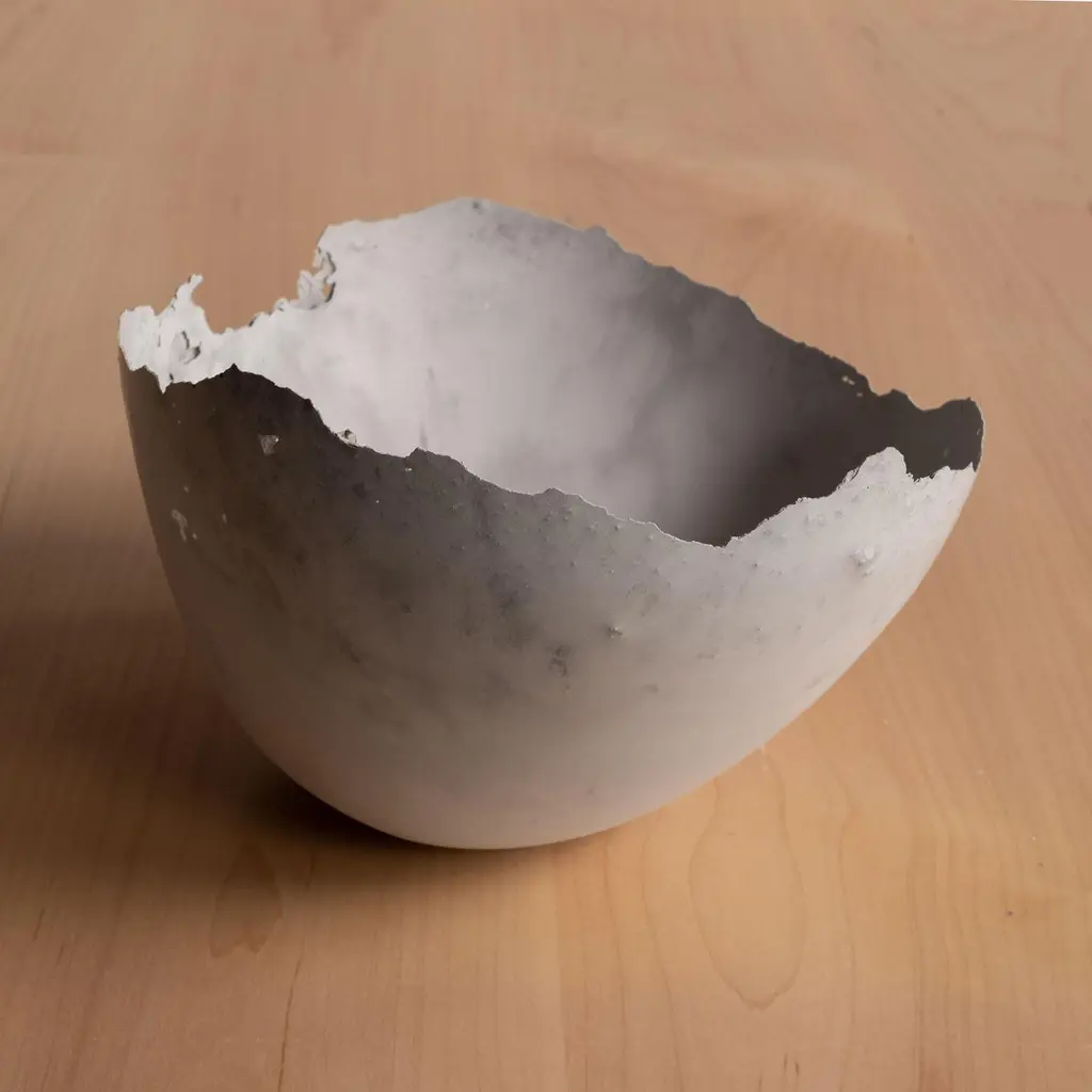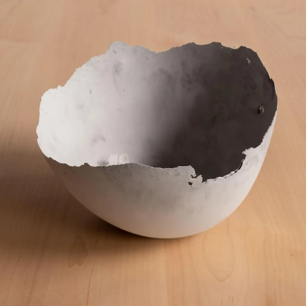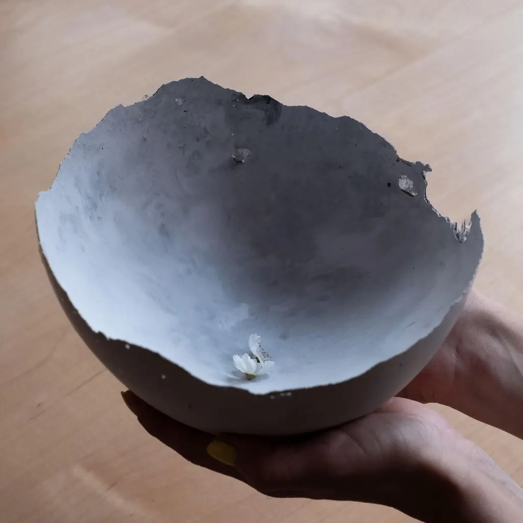 An edition of 150 unique bowls, the concrete Series by UMÉ Studio expresses the tension between heavy concrete and its delicate edge generated by hand pouring. While one assumes concrete should be strong and durable, it is, at its core, fragile. This duality invites touch and contemplation, making it the perfect vessel for daily inspiration and display. Each cast is a unique piece, handmade and one of a kind. Bowl 553GreyCast concrete / Gypsum cement / Mica and natural pigments Items are inherently fragile and should be handled with care, kept away from liquids. Bowls are not food safe.Pieces can be customized if ordered in quantities of six or moreSize: Diameter between 3 inches (7cm) - 13 inches (33cm)Height: Between 3 inches (7cm) - 8 inches (20cm)Color: White speckle, grey speckle, black.