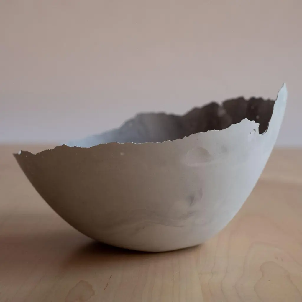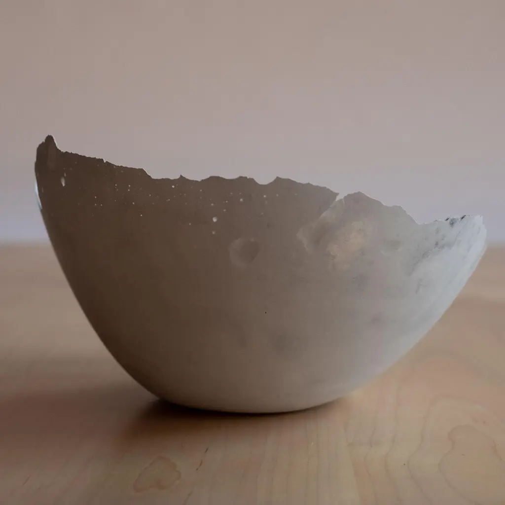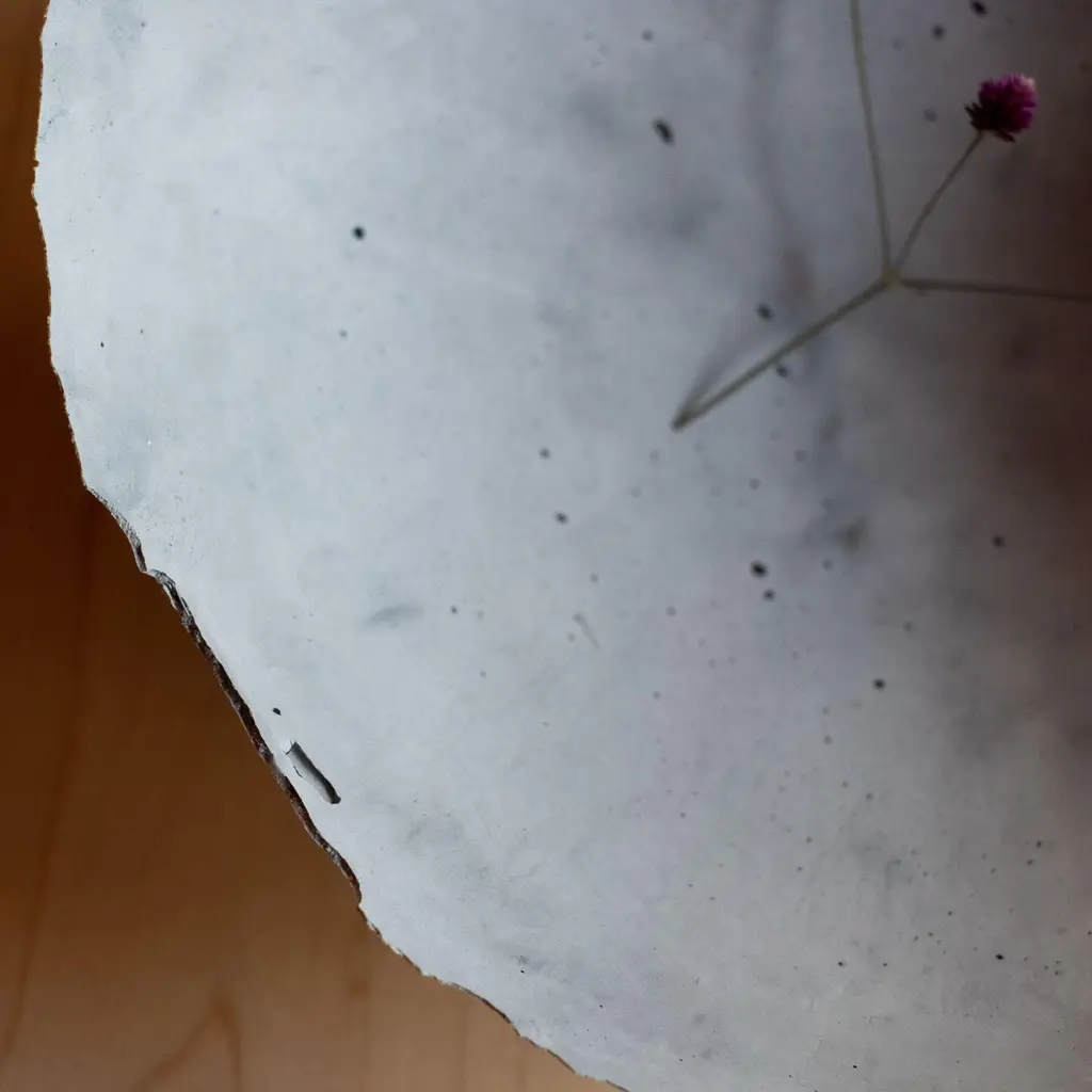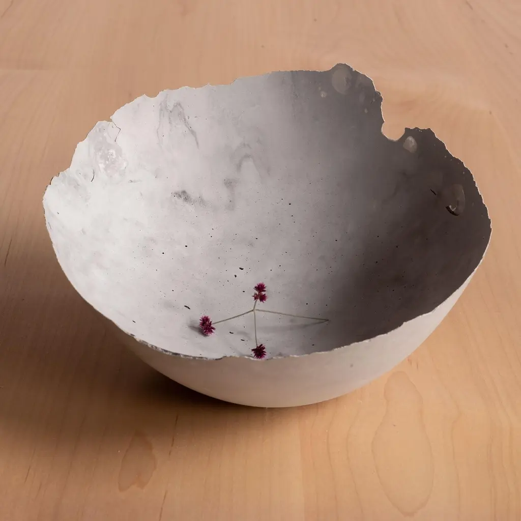 An edition of 150 unique bowls, the concrete Series by UMÉ Studio expresses the tension between heavy concrete and its delicate edge generated by hand pouring. While one assumes concrete should be strong and durable, it is, at its core, fragile. This duality invites touch and contemplation, making it the perfect vessel for daily inspiration and display. Each cast is a unique piece, handmade and one of a kind. Bowl 437GreyCast concrete / Gypsum cement / Mica and natural pigments Items are inherently fragile and should be handled with care, kept away from liquids. Bowls are not food safe.Pieces can be customized if ordered in quantities of six or moreSize: Diameter between 3 inches (7cm) - 13 inches (33cm)Height: Between 3 inches (7cm) - 8 inches (20cm)Color: White speckle, grey speckle, black.