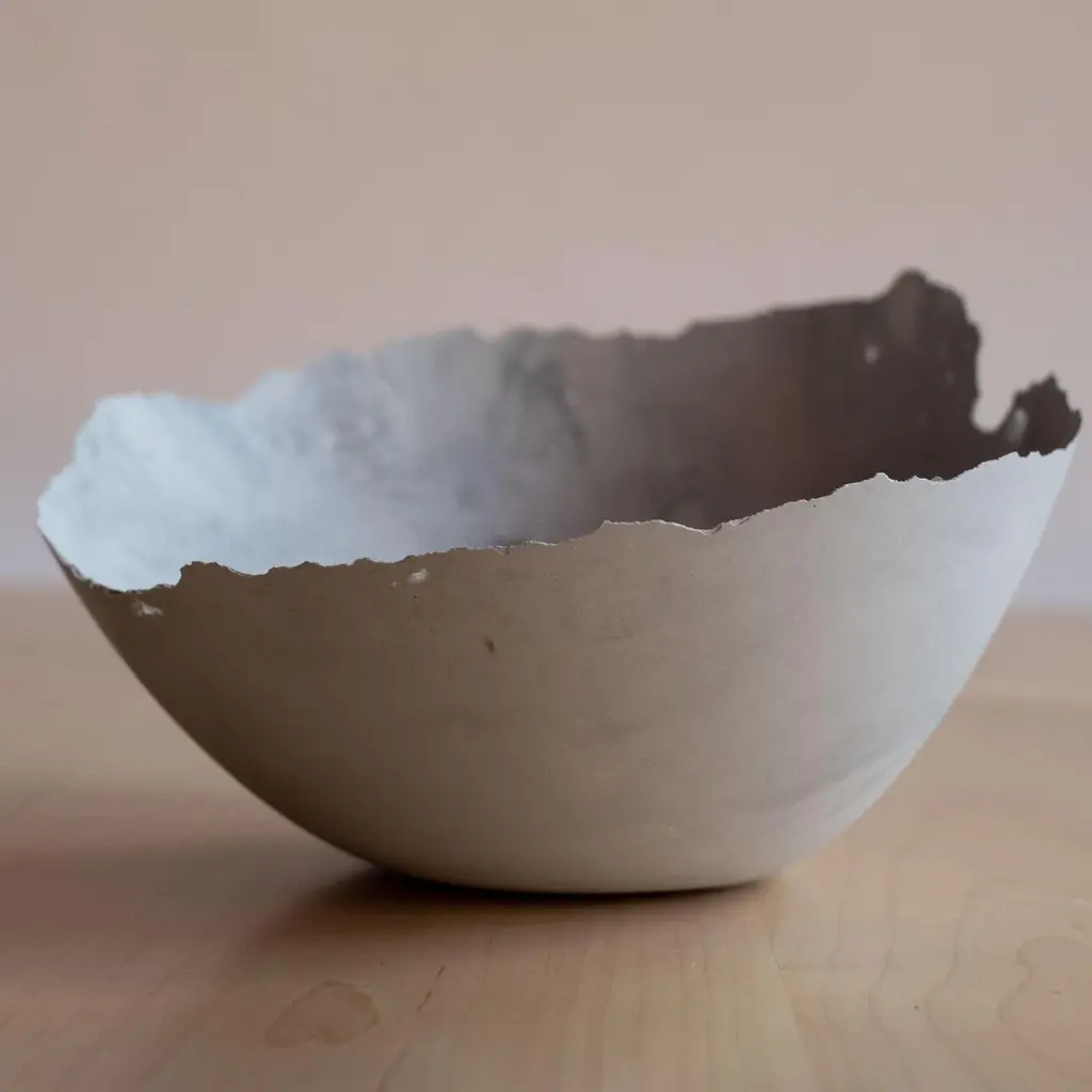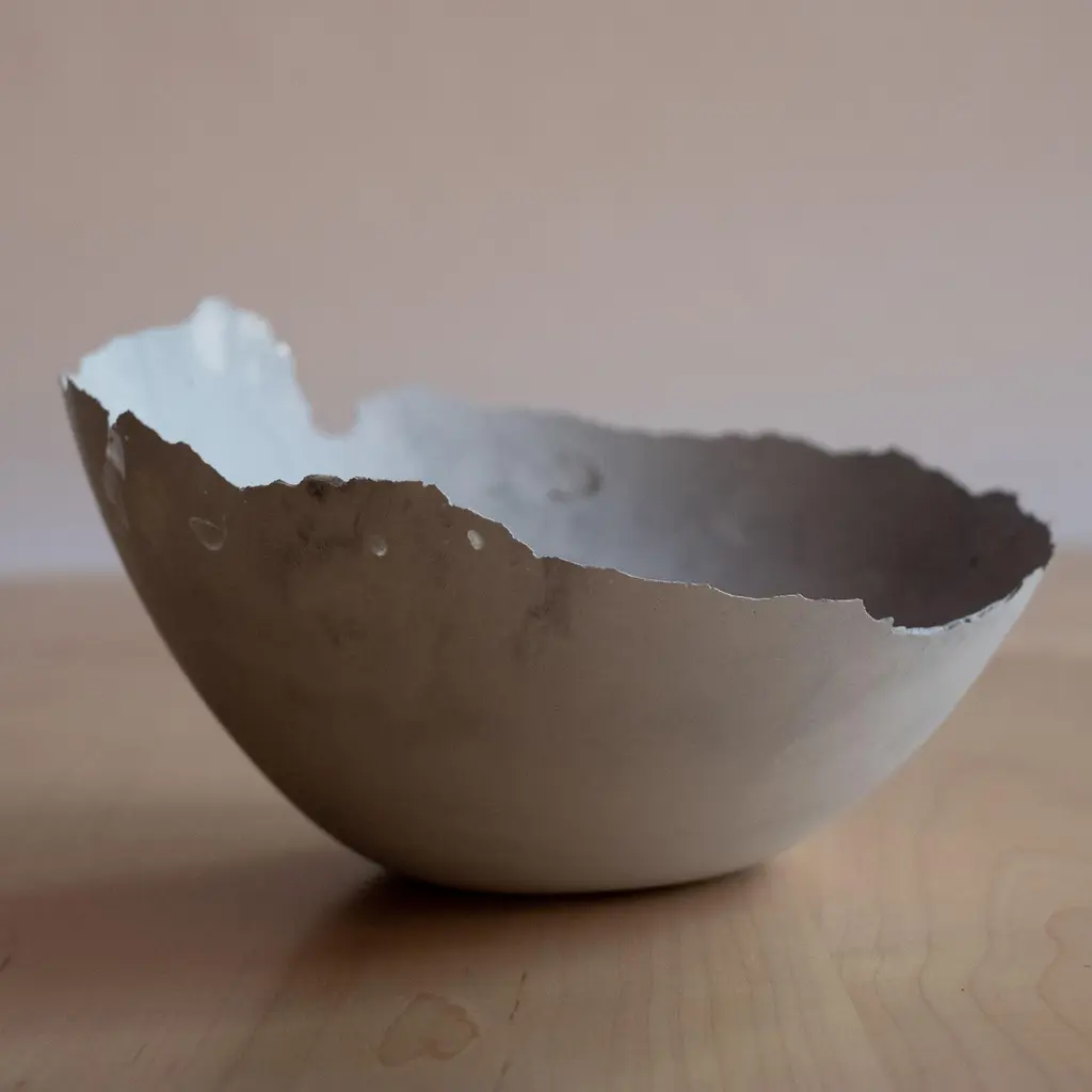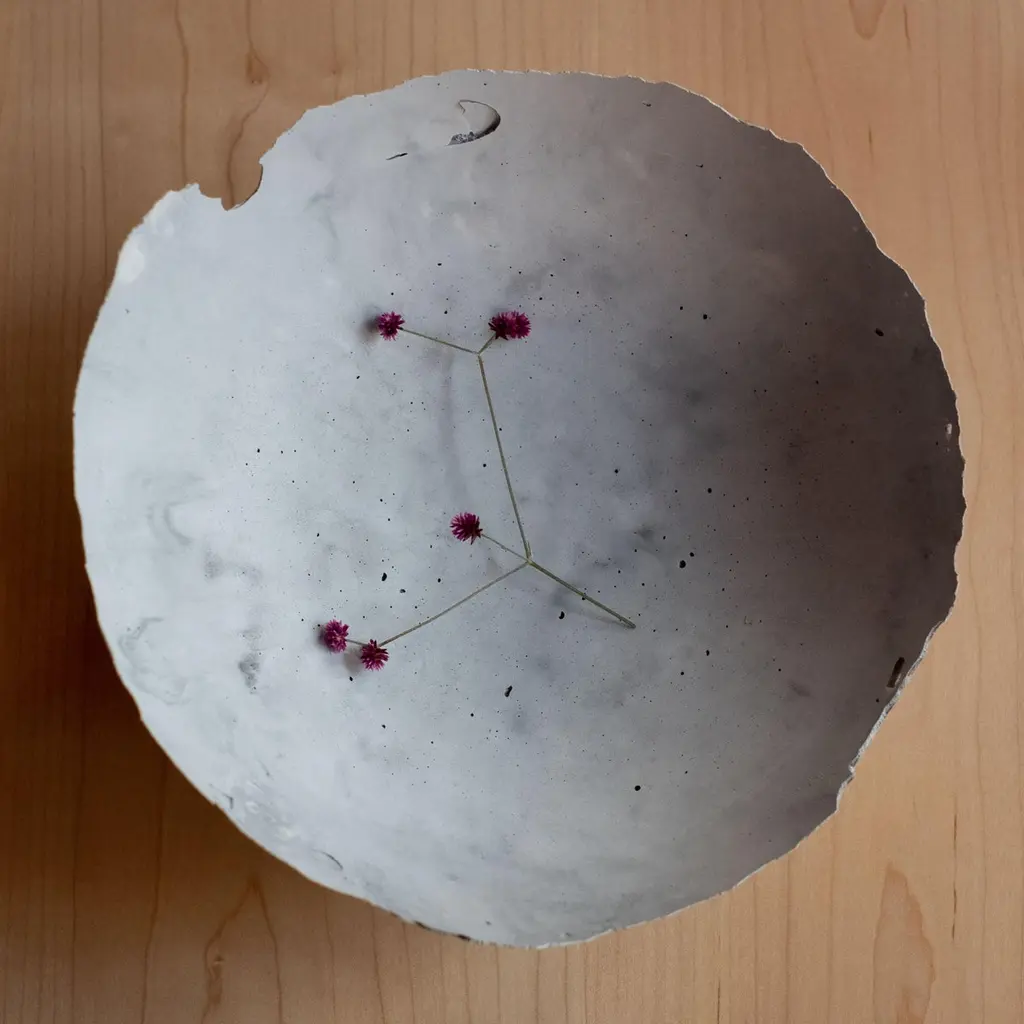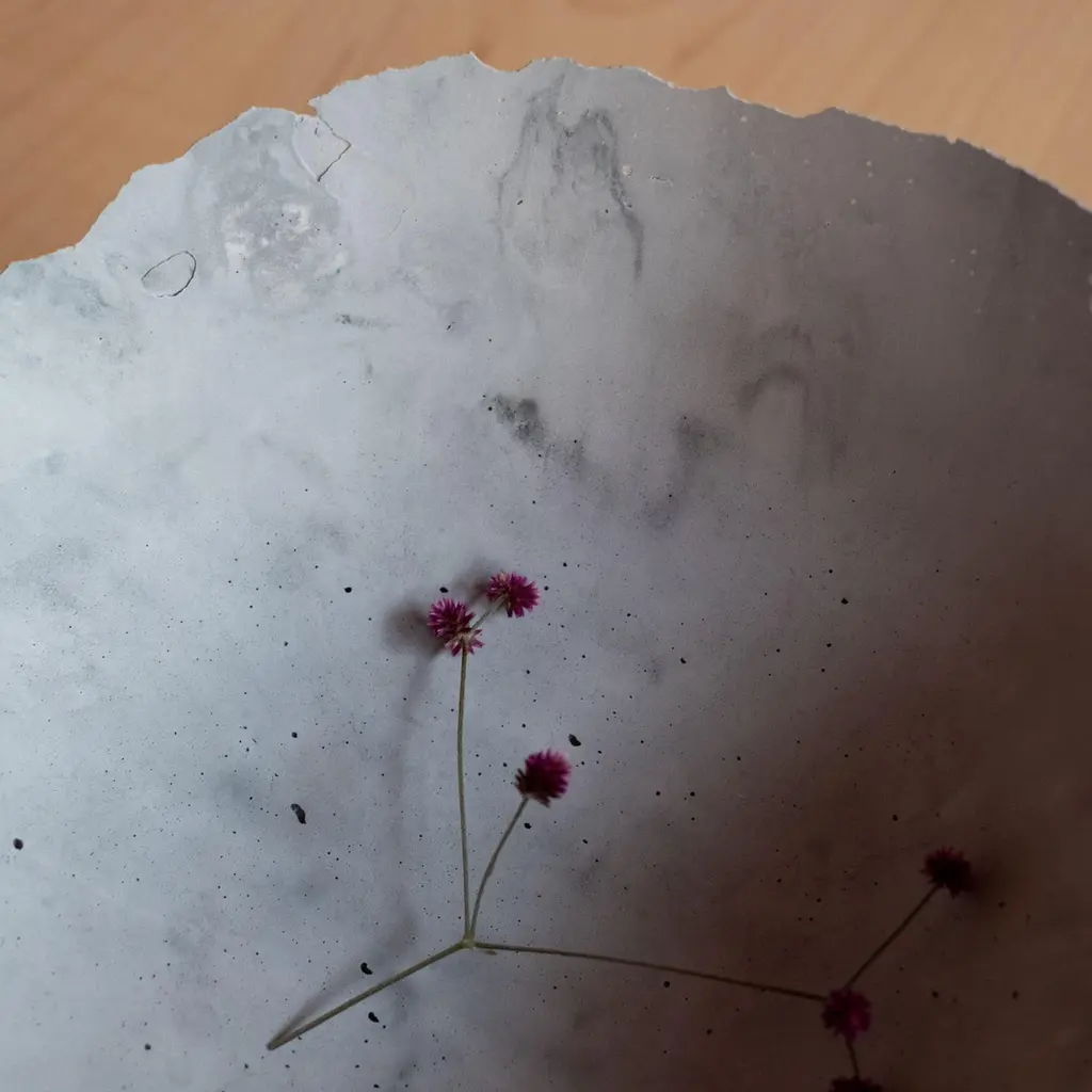An edition of 150 unique bowls, the concrete Series by UMÉ Studio expresses the tension between heavy concrete and its delicate edge generated by hand pouring. While one assumes concrete should be strong and durable, it is, at its core, fragile. This duality invites touch and contemplation, making it the perfect vessel for daily inspiration and display. Each cast is a unique piece, handmade and one of a kind. Bowl 437GreyCast concrete / Gypsum cement / Mica and natural pigments Items are inherently fragile and should be handled with care, kept away from liquids. Bowls are not food safe.Pieces can be customized if ordered in quantities of six or moreSize: Diameter between 3 inches (7cm) - 13 inches (33cm)Height: Between 3 inches (7cm) - 8 inches (20cm)Color: White speckle, grey speckle, black.