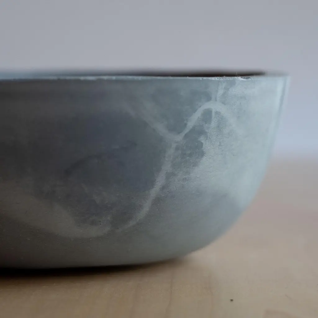 An edition of 150 unique bowls, the Concrete Series by UMÉ Studio expresses the tension between heavy concrete and its delicate edge generated by hand pouring. While one assumes concrete should be strong and durable, it is, at its core, fragile. This duality invites touch and contemplation, making it the perfect vessel for daily inspiration and display. Each cast is a unique piece, handmade and one of a kind. Bowl 386GreyCast concrete / Gypsum cement / Mica and natural pigments Items are inherently fragile and should be handled with care, kept away from liquids. Bowls are not food safe.Pieces can be customized if ordered in quantities of six or moreSize: Diameter between 3 inches (7cm) - 13 inches (33cm)Height: Between 3 inches (7cm) - 8 inches (20cm)Color: White speckle, grey speckle, black.