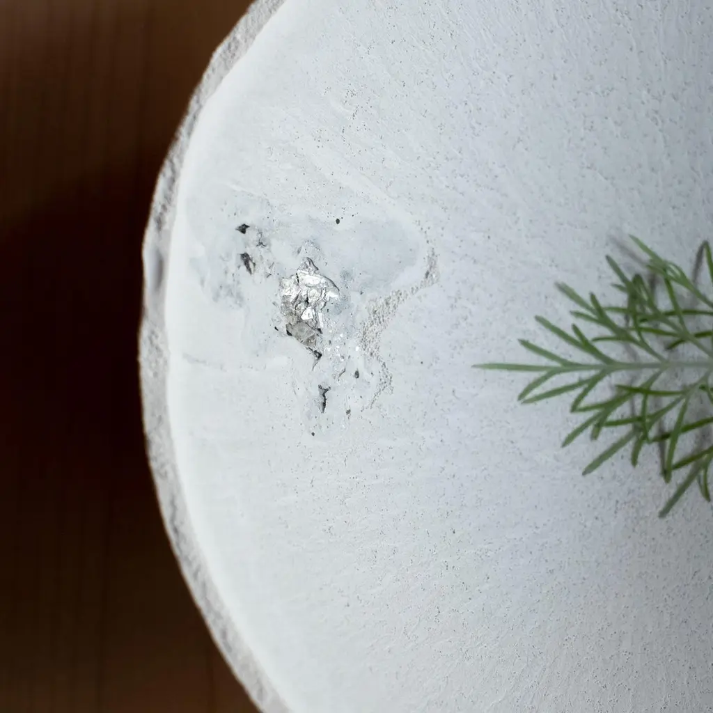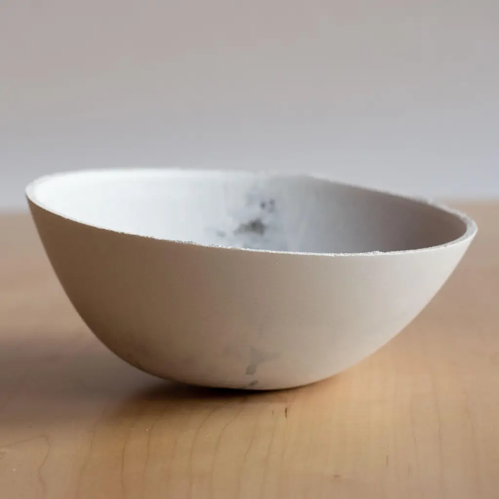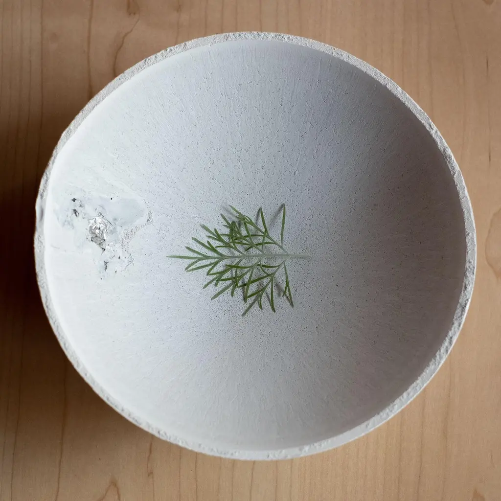 An edition of 150 unique bowls, the concrete Series by UMÉ Studio expresses the tension between heavy concrete and its delicate edge generated by hand pouring. While one assumes concrete should be strong and durable, it is, at its core, fragile. This duality invites touch and contemplation, making it the perfect vessel for daily inspiration and display. Each cast is a unique piece, handmade and one of a kind. Bowl 443GreyCast concrete / Gypsum cement / Mica and natural pigments Items are inherently fragile and should be handled with care, kept away from liquids. Bowls are not food safe.Pieces can be customized if ordered in quantities of six or moreSize: Diameter between 3 inches (7cm) - 13 inches (33cm)Height: Between 3 inches (7cm) - 8 inches (20cm)Color: White speckle, grey speckle, black.