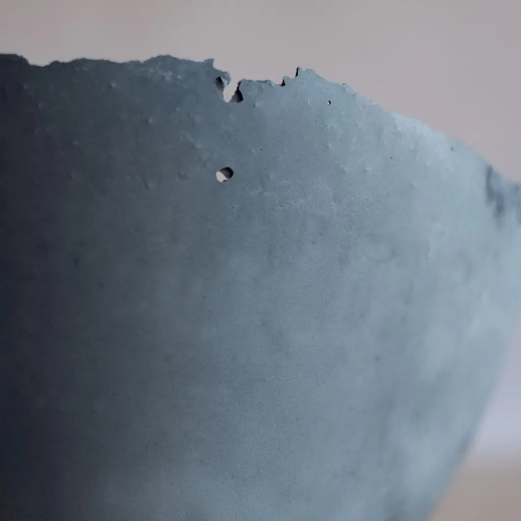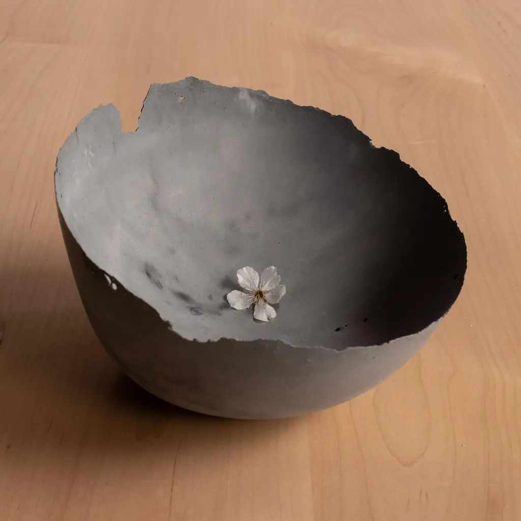 An edition of 150 unique bowls, the concrete Series by UMÉ Studio expresses the tension between heavy concrete and its delicate edge generated by hand pouring. While one assumes concrete should be strong and durable, it is, at its core, fragile. This duality invites touch and contemplation, making it the perfect vessel for daily inspiration and display. Each cast is a unique piece, handmade and one of a kind. Bowl 476GreyCast concrete / Gypsum cement / Mica and natural pigments Items are inherently fragile and should be handled with care, kept away from liquids. Bowls are not food safe.Pieces can be customized if ordered in quantities of six or moreSize: Diameter between 3 inches (7cm) - 13 inches (33cm)Height: Between 3 inches (7cm) - 8 inches (20cm)Color: White speckle, grey speckle, black.