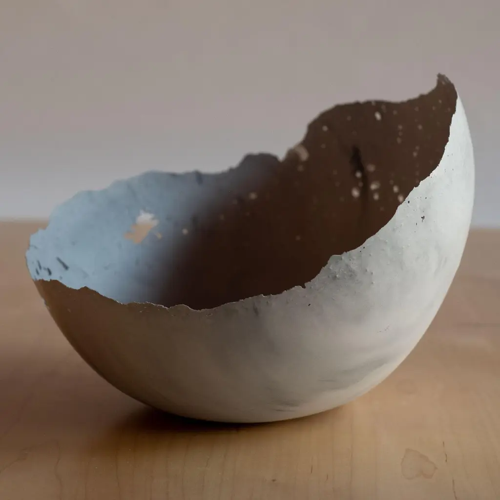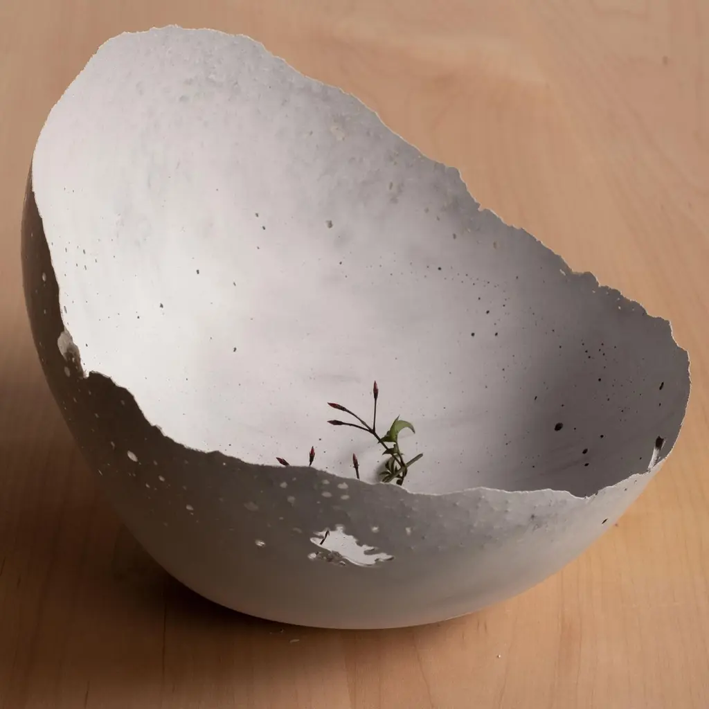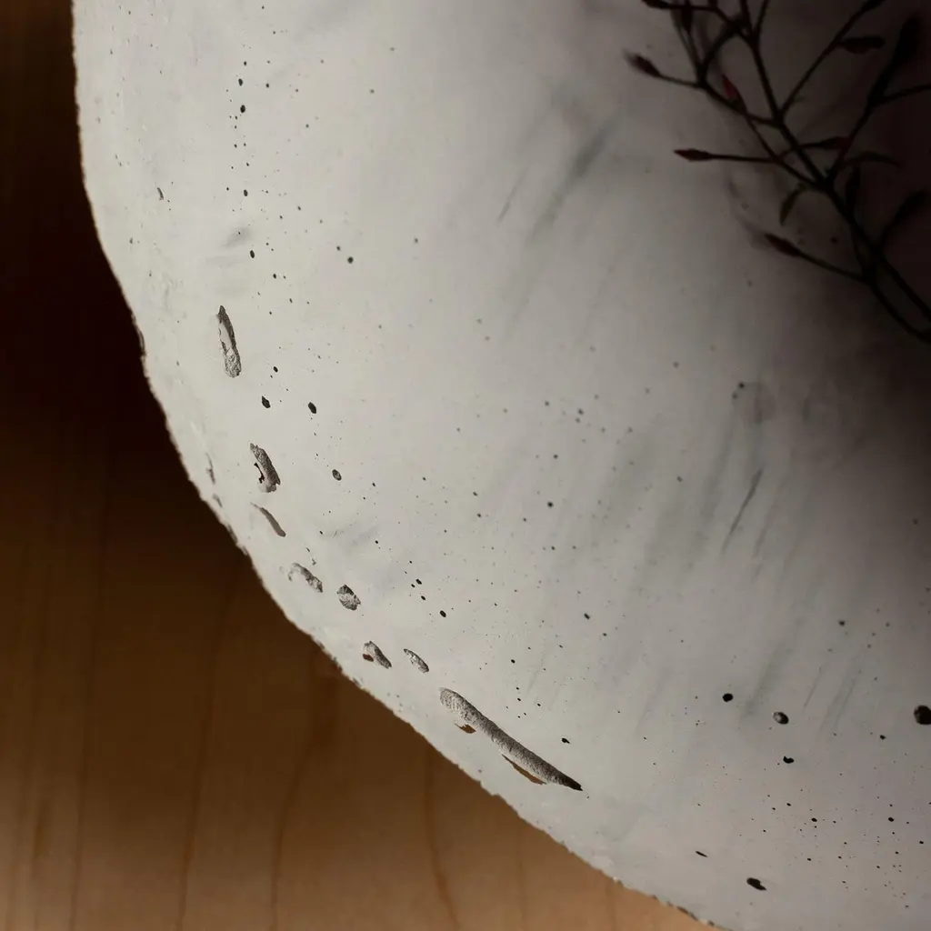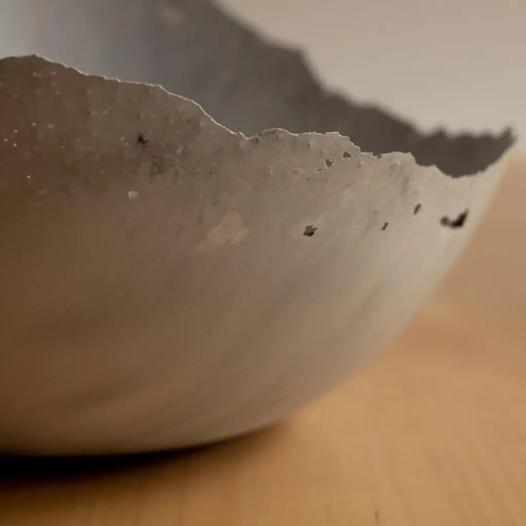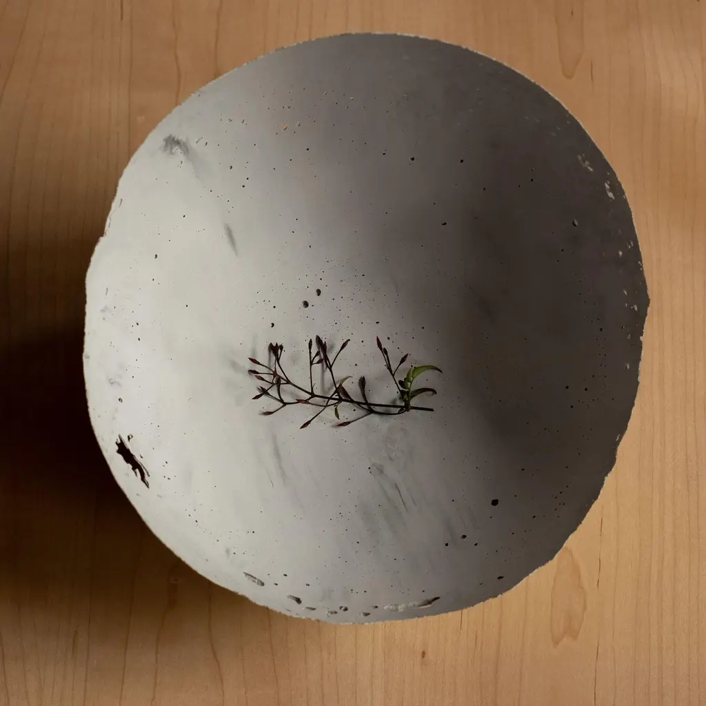 An edition of 150 unique bowls, the concrete Series by UMÉ Studio expresses the tension between heavy concrete and its delicate edge generated by hand pouring. While one assumes concrete should be strong and durable, it is, at its core, fragile. This duality invites touch and contemplation, making it the perfect vessel for daily inspiration and display. Each cast is a unique piece, handmade and one of a kind. Bowl 421GreyCast concrete / Gypsum cement / Mica and natural pigments Items are inherently fragile and should be handled with care, kept away from liquids. Bowls are not food safe.Pieces can be customized if ordered in quantities of six or moreSize: Diameter between 3 inches (7cm) - 13 inches (33cm)Height: Between 3 inches (7cm) - 8 inches (20cm)Color: White speckle, grey speckle, black.