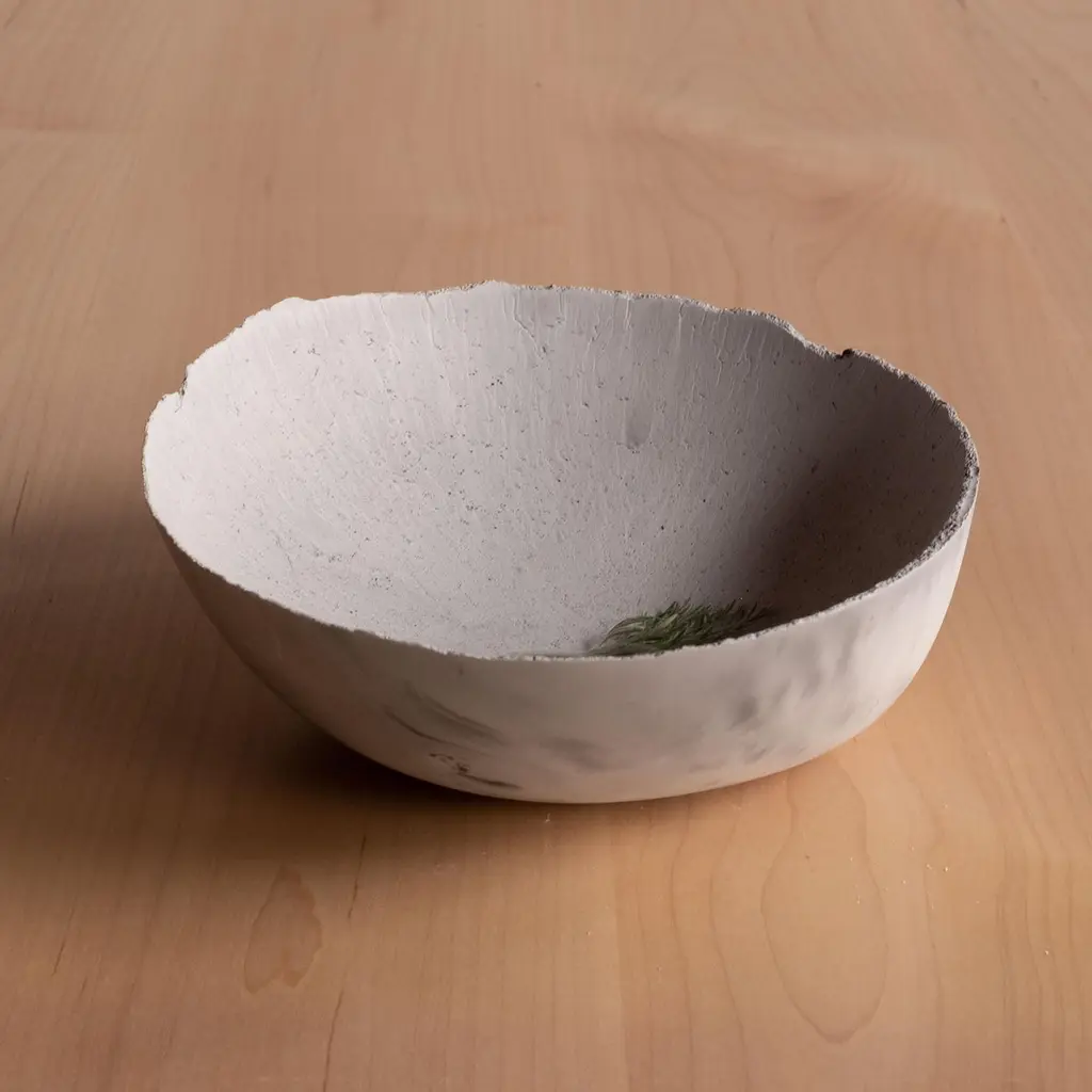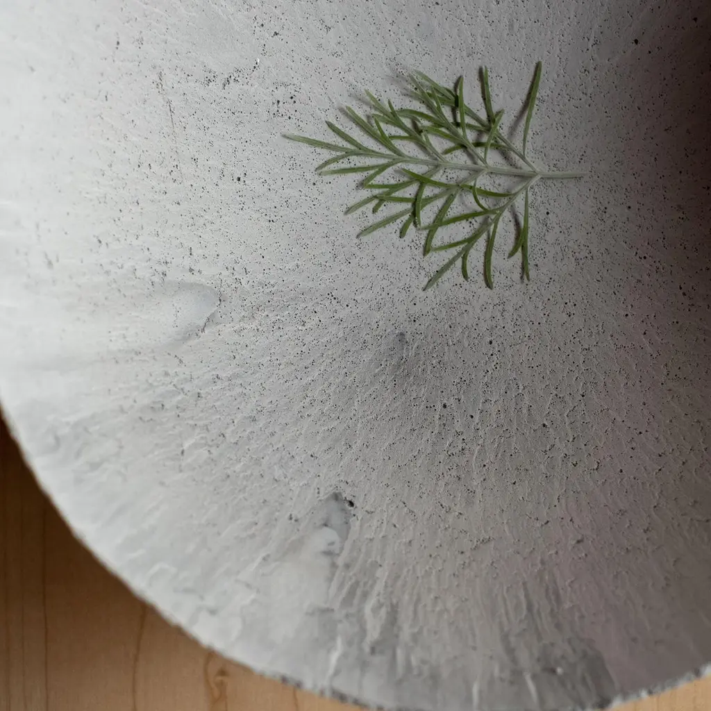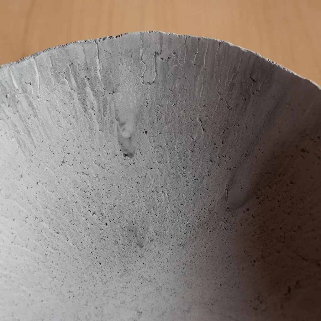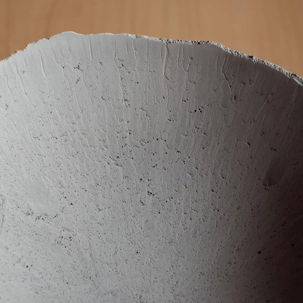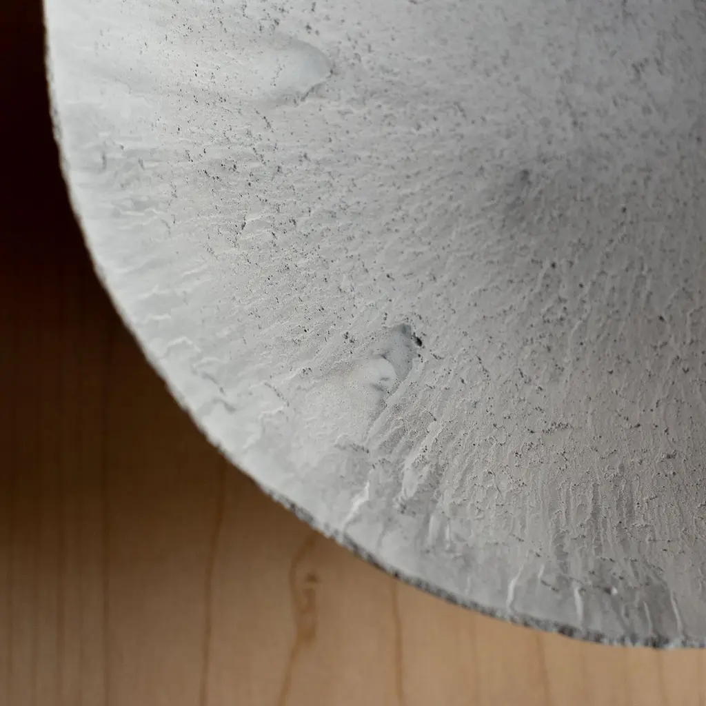 An edition of 150 unique bowls, the concrete Series by UMÉ Studio expresses the tension between heavy concrete and its delicate edge generated by hand pouring. While one assumes concrete should be strong and durable, it is, at its core, fragile. This duality invites touch and contemplation, making it the perfect vessel for daily inspiration and display. Each cast is a unique piece, handmade and one of a kind. Bowl 469GreyCast concrete / Gypsum cement / Mica and natural pigments Items are inherently fragile and should be handled with care, kept away from liquids. Bowls are not food safe.Pieces can be customized if ordered in quantities of six or moreSize: Diameter between 3 inches (7cm) - 13 inches (33cm)Height: Between 3 inches (7cm) - 8 inches (20cm)Color: White speckle, grey speckle, black.