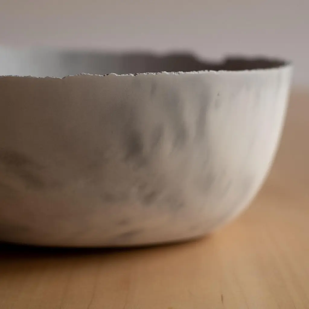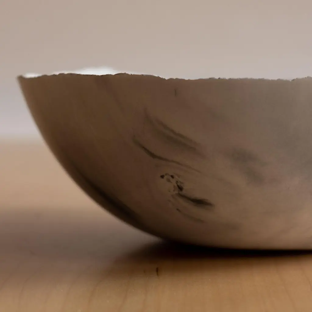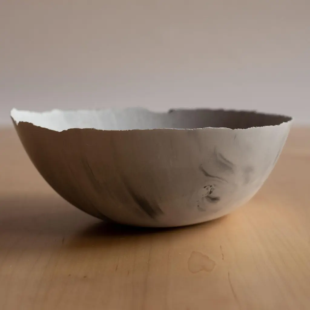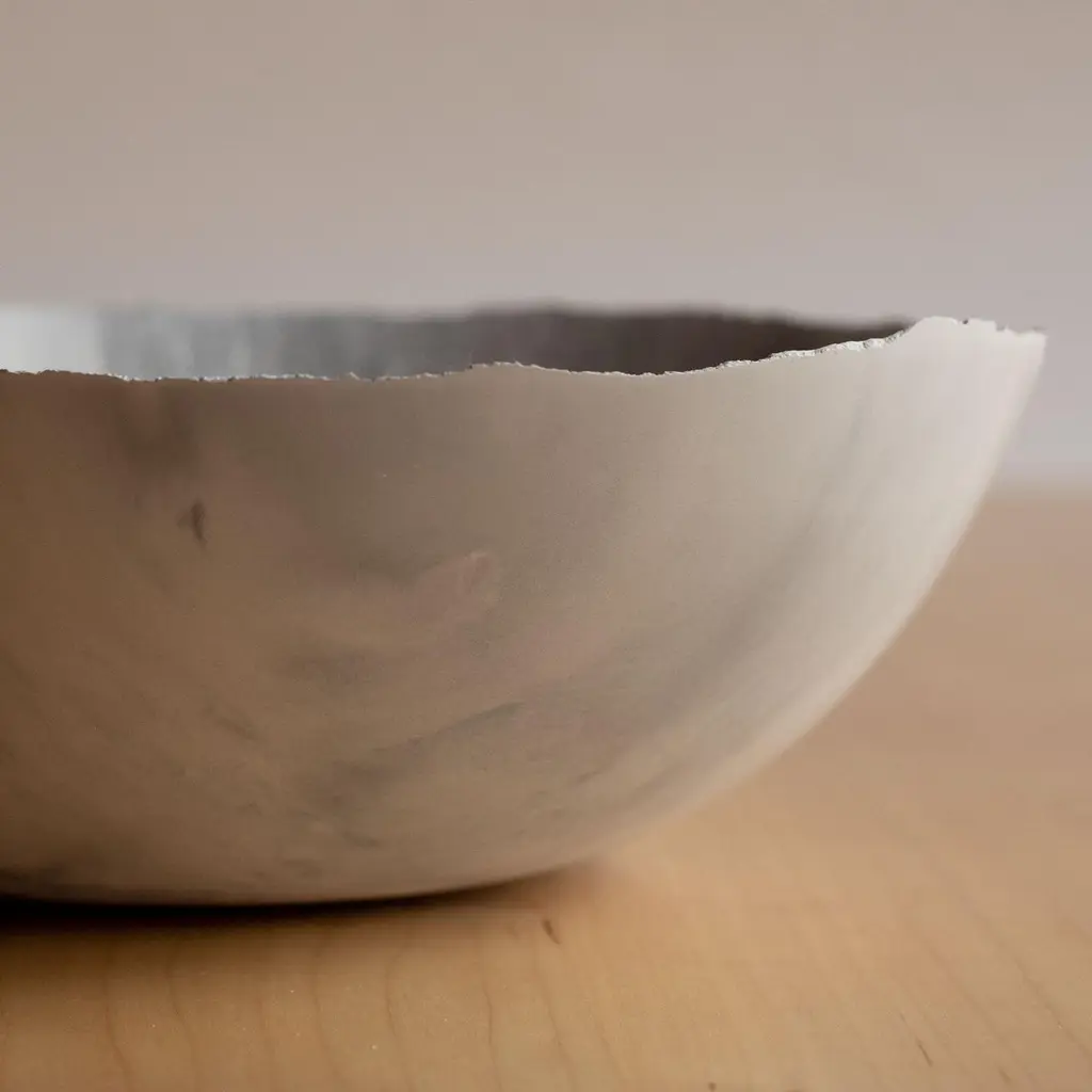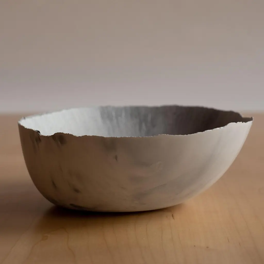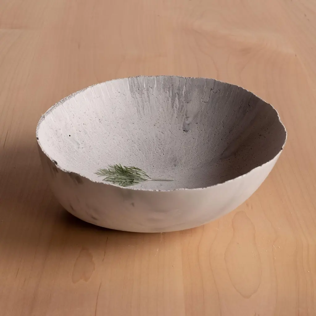 An edition of 150 unique bowls, the concrete Series by UMÉ Studio expresses the tension between heavy concrete and its delicate edge generated by hand pouring. While one assumes concrete should be strong and durable, it is, at its core, fragile. This duality invites touch and contemplation, making it the perfect vessel for daily inspiration and display. Each cast is a unique piece, handmade and one of a kind. Bowl 469GreyCast concrete / Gypsum cement / Mica and natural pigments Items are inherently fragile and should be handled with care, kept away from liquids. Bowls are not food safe.Pieces can be customized if ordered in quantities of six or moreSize: Diameter between 3 inches (7cm) - 13 inches (33cm)Height: Between 3 inches (7cm) - 8 inches (20cm)Color: White speckle, grey speckle, black.