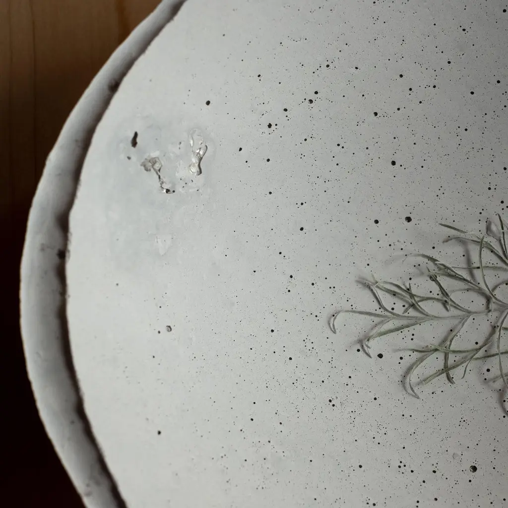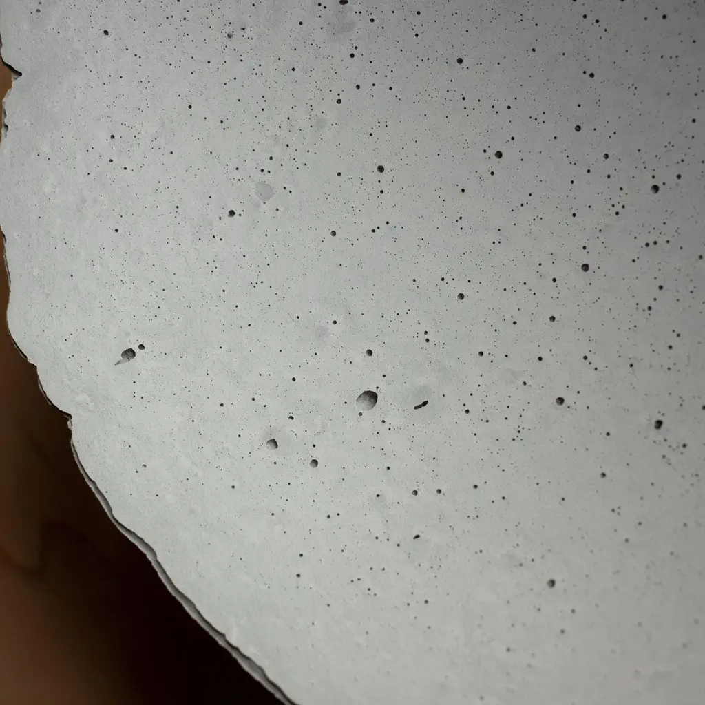 An edition of 150 unique bowls, the concrete Series by UMÉ Studio expresses the tension between heavy concrete and its delicate edge generated by hand pouring. While one assumes concrete should be strong and durable, it is, at its core, fragile. This duality invites touch and contemplation, making it the perfect vessel for daily inspiration and display. Each cast is a unique piece, handmade and one of a kind. Bowl 460GreyCast concrete / Gypsum cement / Mica and natural pigments Items are inherently fragile and should be handled with care, kept away from liquids. Bowls are not food safe.Pieces can be customized if ordered in quantities of six or moreSize: Diameter between 3 inches (7cm) - 13 inches (33cm)Height: Between 3 inches (7cm) - 8 inches (20cm)Color: White speckle, grey speckle, black.