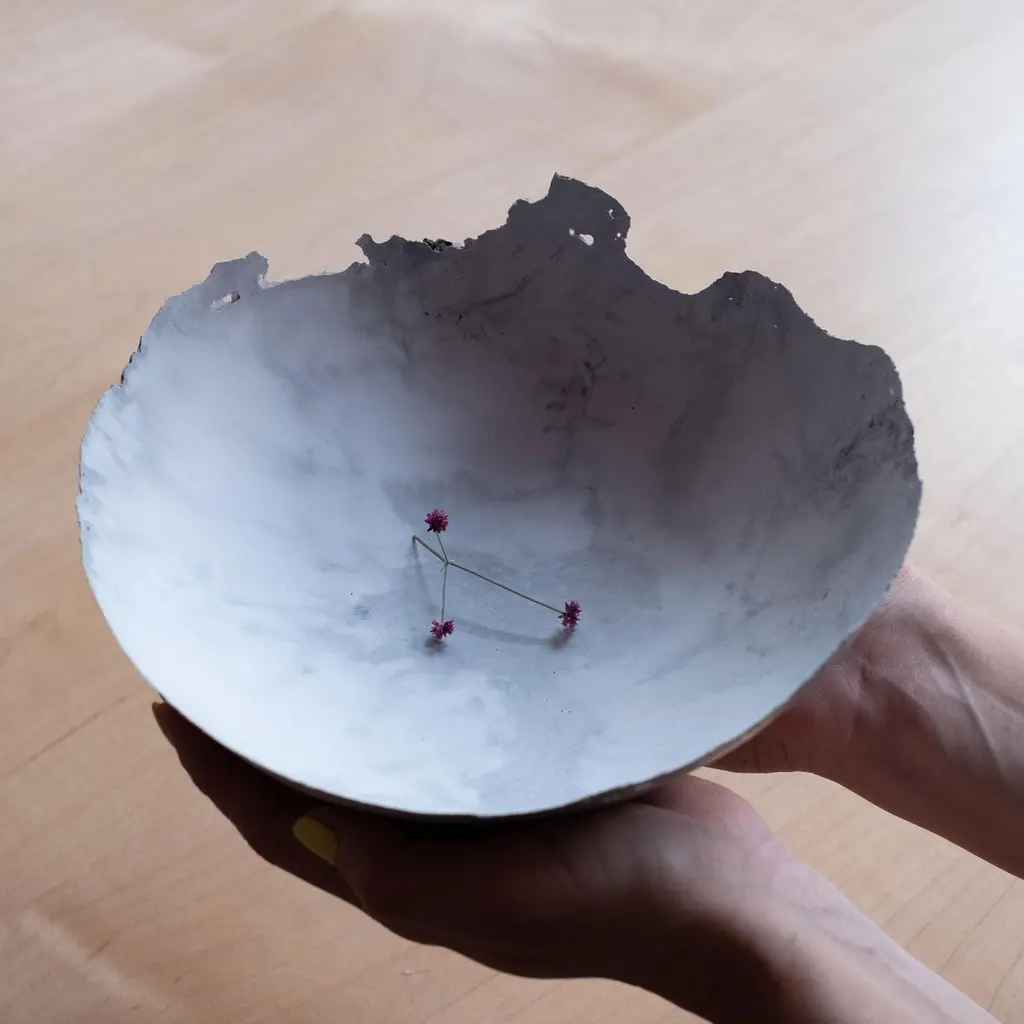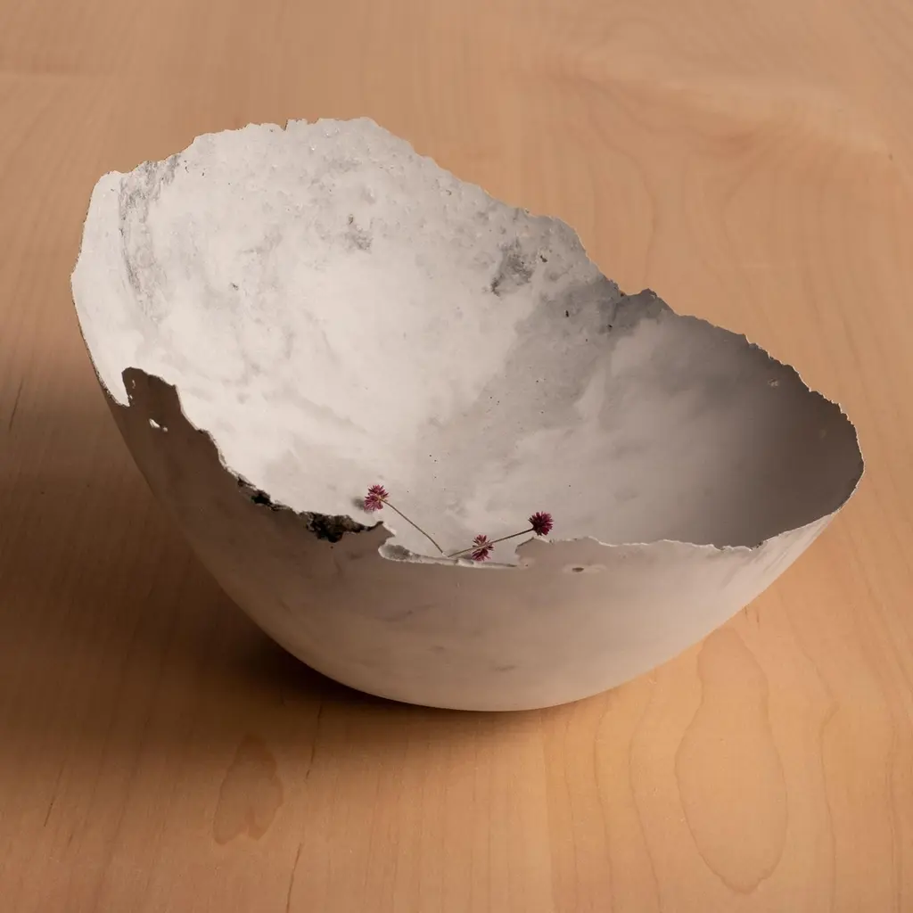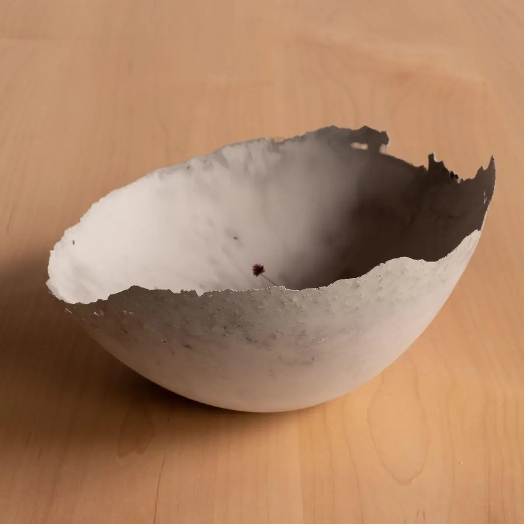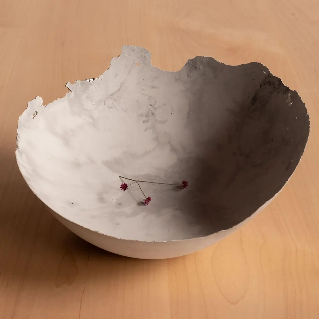 An edition of 150 unique bowls, the concrete Series by UMÉ Studio expresses the tension between heavy concrete and its delicate edge generated by hand pouring. While one assumes concrete should be strong and durable, it is, at its core, fragile. This duality invites touch and contemplation, making it the perfect vessel for daily inspiration and display. Each cast is a unique piece, handmade and one of a kind. Bowl 447GreyCast concrete / Gypsum cement / Mica and natural pigments Items are inherently fragile and should be handled with care, kept away from liquids. Bowls are not food safe.Pieces can be customized if ordered in quantities of six or moreSize: Diameter between 3 inches (7cm) - 13 inches (33cm)Height: Between 3 inches (7cm) - 8 inches (20cm)Color: White speckle, grey speckle, black.