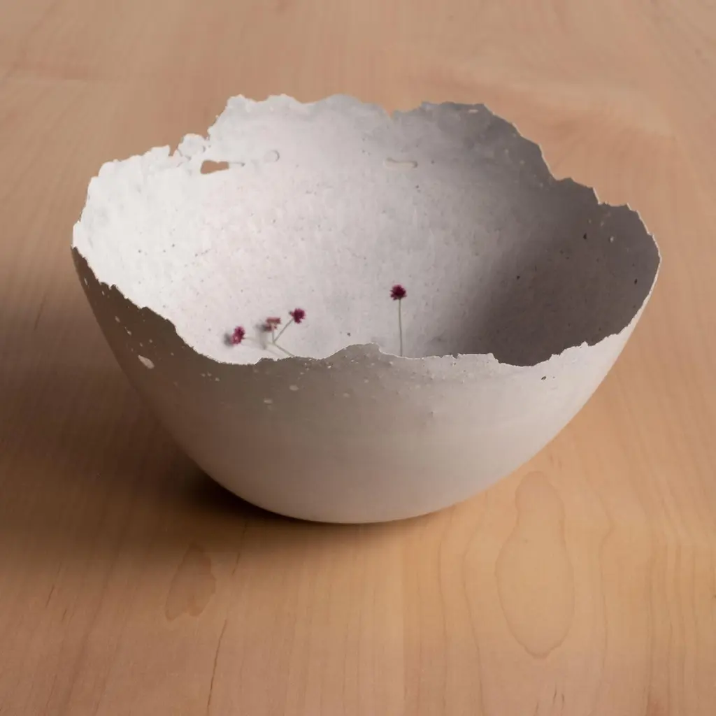 An edition of 150 unique bowls, the concrete Series by UMÉ Studio expresses the tension between heavy concrete and its delicate edge generated by hand pouring. While one assumes concrete should be strong and durable, it is, at its core, fragile. This duality invites touch and contemplation, making it the perfect vessel for daily inspiration and display. Each cast is a unique piece, handmade and one of a kind. Bowl 475GreyCast concrete / Gypsum cement / Mica and natural pigments Items are inherently fragile and should be handled with care, kept away from liquids. Bowls are not food safe.Pieces can be customized if ordered in quantities of six or moreSize: Diameter between 3 inches (7cm) - 13 inches (33cm)Height: Between 3 inches (7cm) - 8 inches (20cm)Color: White speckle, grey speckle, black.