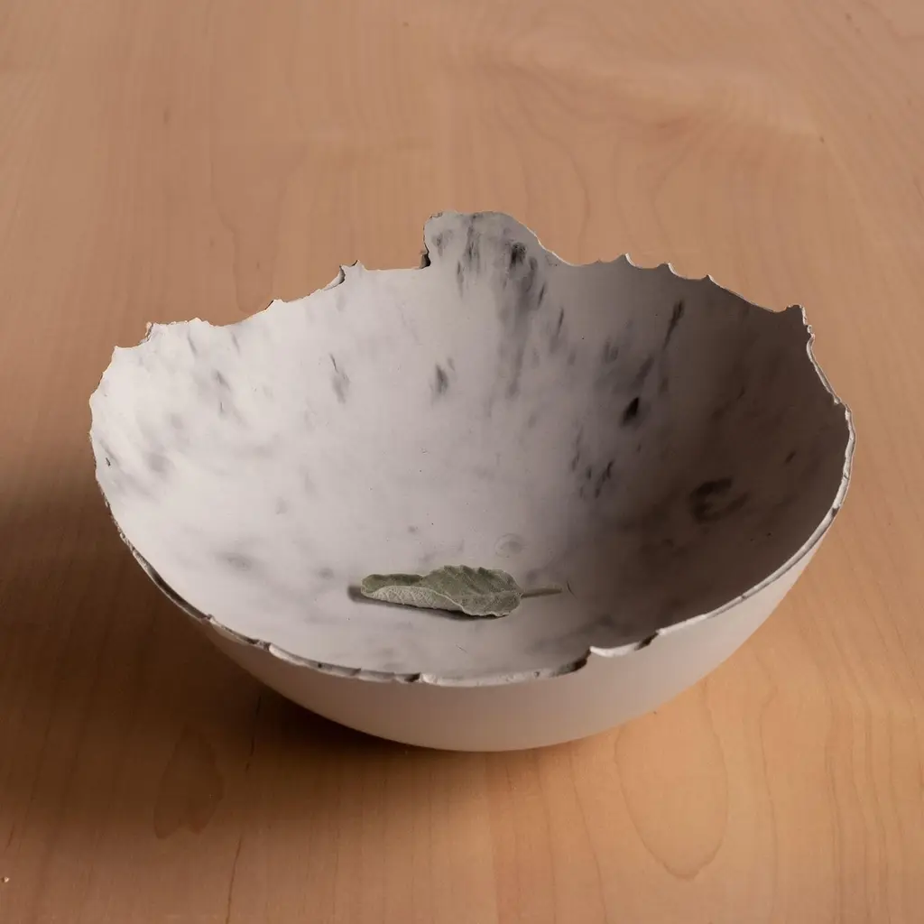 An edition of 150 unique bowls, the concrete Series by UMÉ Studio expresses the tension between heavy concrete and its delicate edge generated by hand pouring. While one assumes concrete should be strong and durable, it is, at its core, fragile. This duality invites touch and contemplation, making it the perfect vessel for daily inspiration and display. Each cast is a unique piece, handmade and one of a kind. Bowl 450GreyCast concrete / Gypsum cement / Mica and natural pigments Items are inherently fragile and should be handled with care, kept away from liquids. Bowls are not food safe.Pieces can be customized if ordered in quantities of six or moreSize: Diameter between 3 inches (7cm) - 13 inches (33cm)Height: Between 3 inches (7cm) - 8 inches (20cm)Color: White speckle, grey speckle, black.