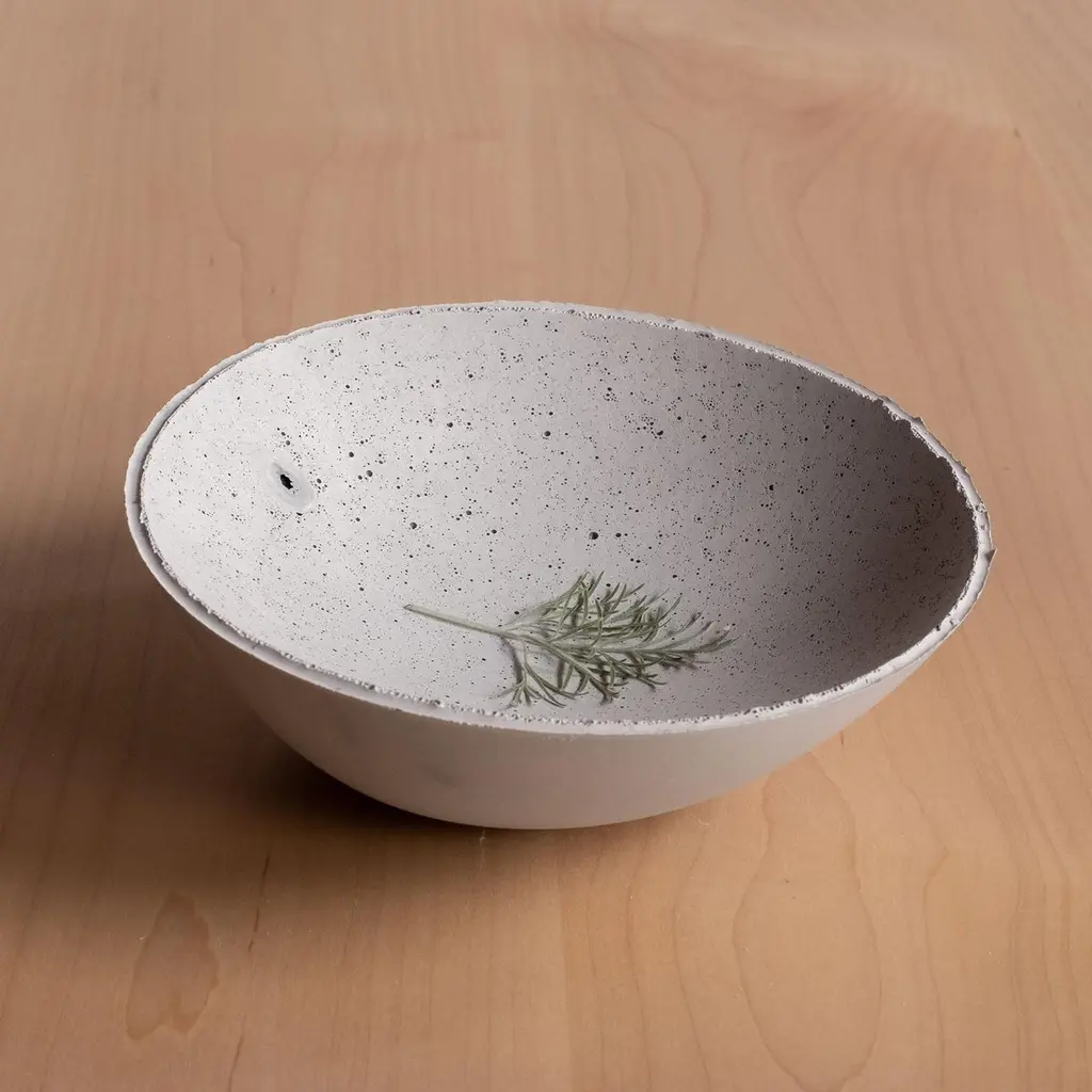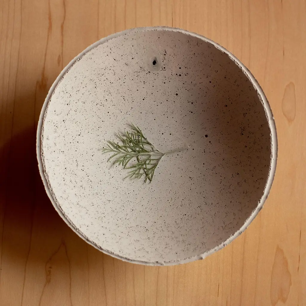 An edition of 150 unique bowls, the concrete Series by UMÉ Studio expresses the tension between heavy concrete and its delicate edge generated by hand pouring. While one assumes concrete should be strong and durable, it is, at its core, fragile. This duality invites touch and contemplation, making it the perfect vessel for daily inspiration and display. Each cast is a unique piece, handmade and one of a kind. Bowl 431GreyCast concrete / Gypsum cement / Mica and natural pigments Items are inherently fragile and should be handled with care, kept away from liquids. Bowls are not food safe.Pieces can be customized if ordered in quantities of six or moreSize: Diameter between 3 inches (7cm) - 13 inches (33cm)Height: Between 3 inches (7cm) - 8 inches (20cm)Color: White speckle, grey speckle, black.