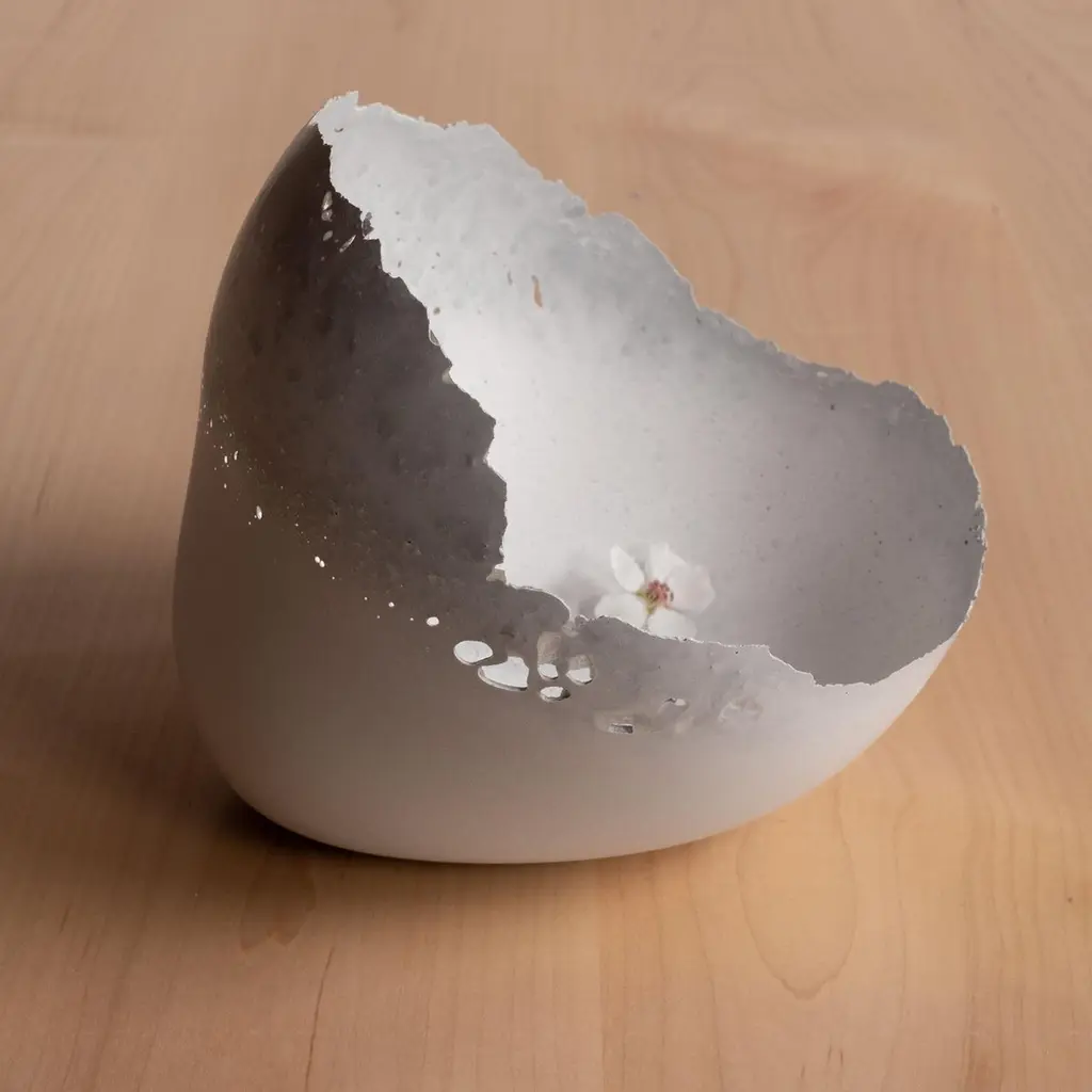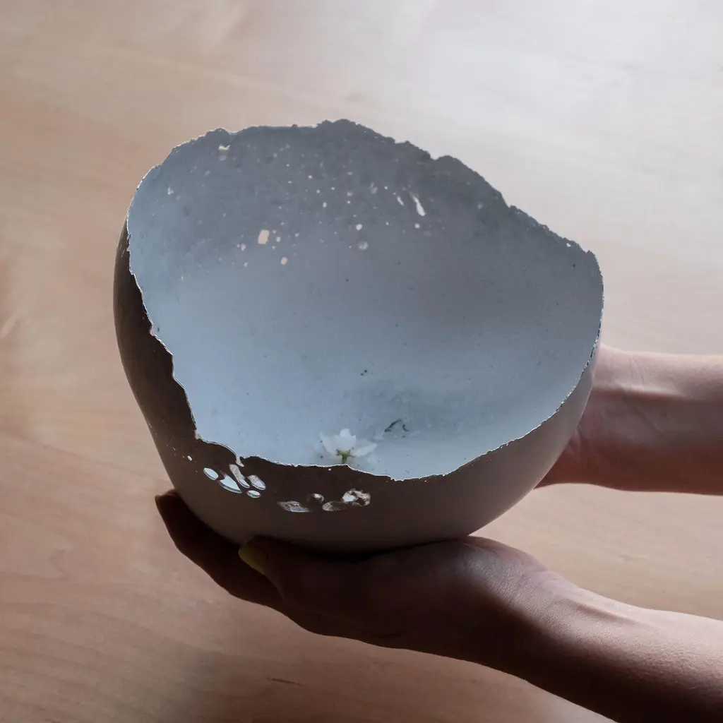 An edition of 150 unique bowls, the Concrete Series by UMÉ Studio expresses the tension between heavy concrete and its delicate edge generated by hand pouring. While one assumes concrete should be strong and durable, it is, at its core, fragile. This duality invites touch and contemplation, making it the perfect vessel for daily inspiration and display. Each cast is a unique piece, handmade and one of a kind. Bowl 401GreyCast concrete / Gypsum cement / Mica and natural pigments Items are inherently fragile and should be handled with care, kept away from liquids. Bowls are not food safe.Pieces can be customized if ordered in quantities of six or moreSize: Diameter between 3 inches (7cm) - 13 inches (33cm)Height: Between 3 inches (7cm) - 8 inches (20cm)Color: White speckle, grey speckle, black.