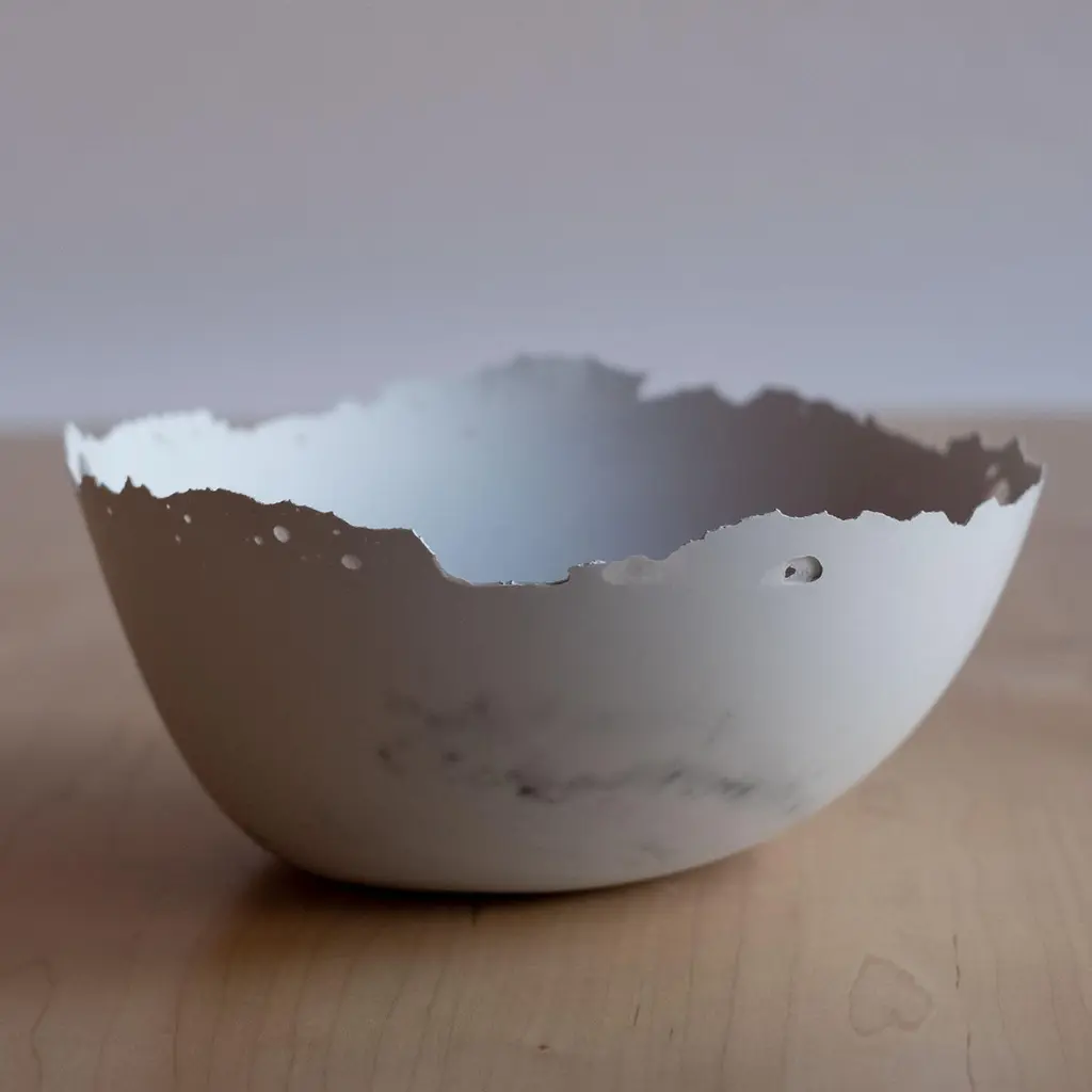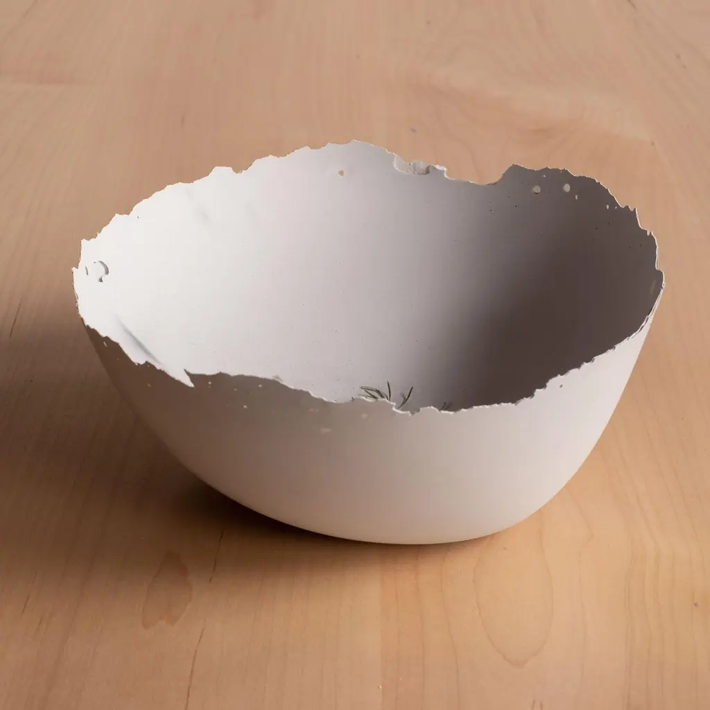 An edition of 150 unique bowls, the concrete Series by UMÉ Studio expresses the tension between heavy concrete and its delicate edge generated by hand pouring. While one assumes concrete should be strong and durable, it is, at its core, fragile. This duality invites touch and contemplation, making it the perfect vessel for daily inspiration and display. Each cast is a unique piece, handmade and one of a kind. Bowl 471GreyCast concrete / Gypsum cement / Mica and natural pigments Items are inherently fragile and should be handled with care, kept away from liquids. Bowls are not food safe.Pieces can be customized if ordered in quantities of six or moreSize: Diameter between 3 inches (7cm) - 13 inches (33cm)Height: Between 3 inches (7cm) - 8 inches (20cm)Color: White speckle, grey speckle, black.