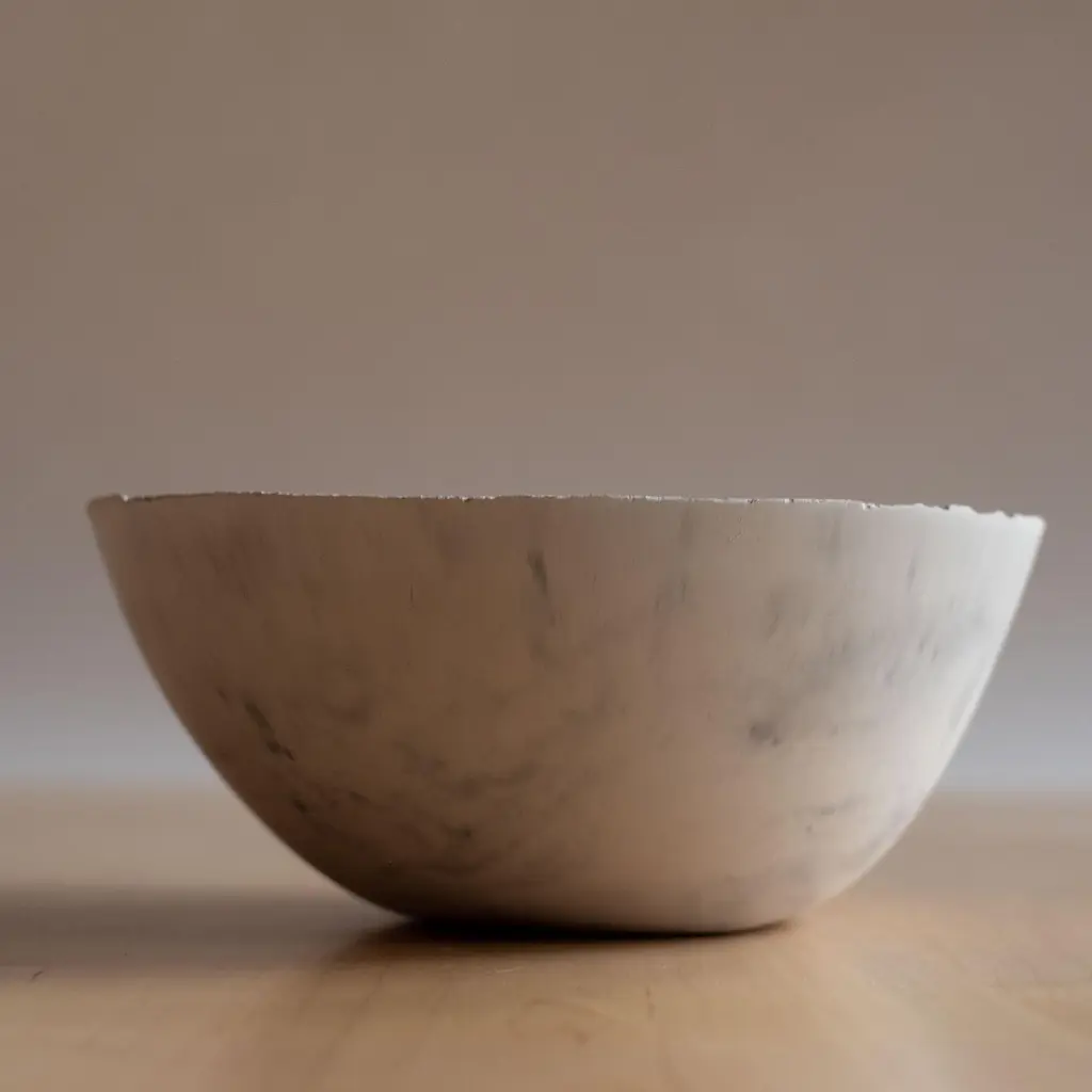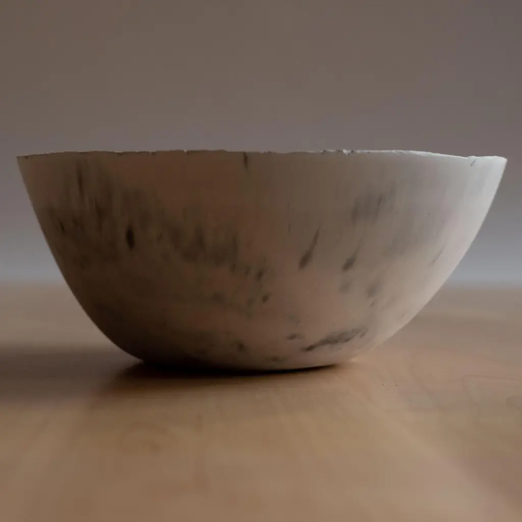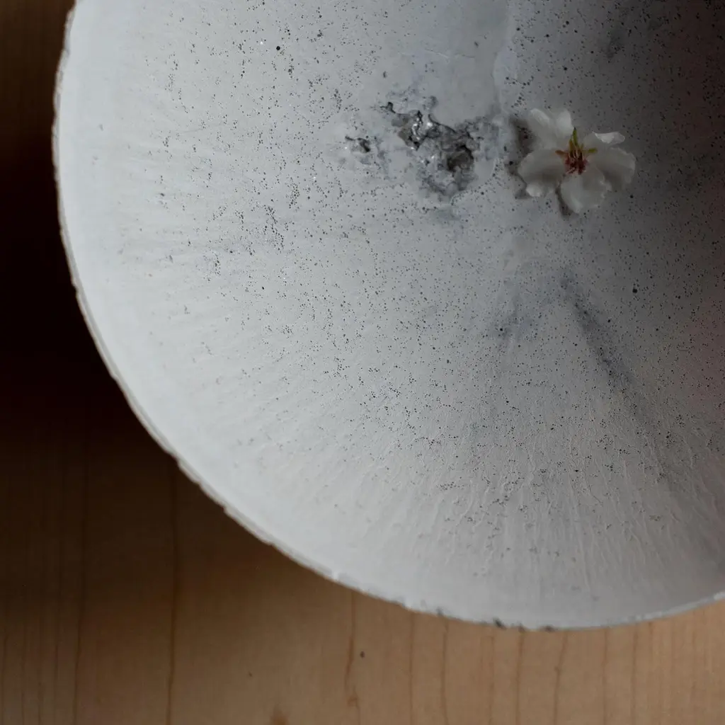 An edition of 150 unique bowls, the concrete Series by UMÉ Studio expresses the tension between heavy concrete and its delicate edge generated by hand pouring. While one assumes concrete should be strong and durable, it is, at its core, fragile. This duality invites touch and contemplation, making it the perfect vessel for daily inspiration and display. Each cast is a unique piece, handmade and one of a kind. Bowl 463GreyCast concrete / Gypsum cement / Mica and natural pigments Items are inherently fragile and should be handled with care, kept away from liquids. Bowls are not food safe.Pieces can be customized if ordered in quantities of six or moreSize: Diameter between 3 inches (7cm) - 13 inches (33cm)Height: Between 3 inches (7cm) - 8 inches (20cm)Color: White speckle, grey speckle, black.