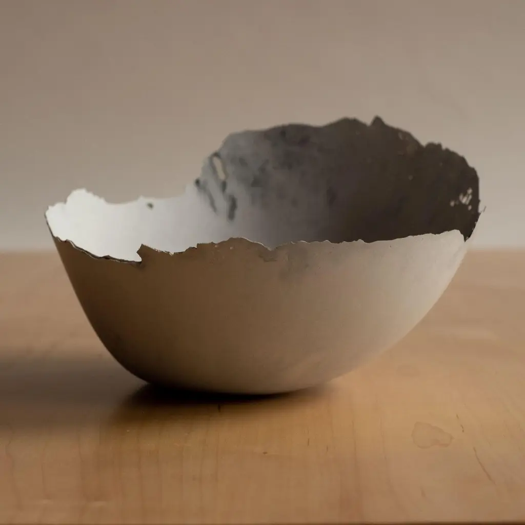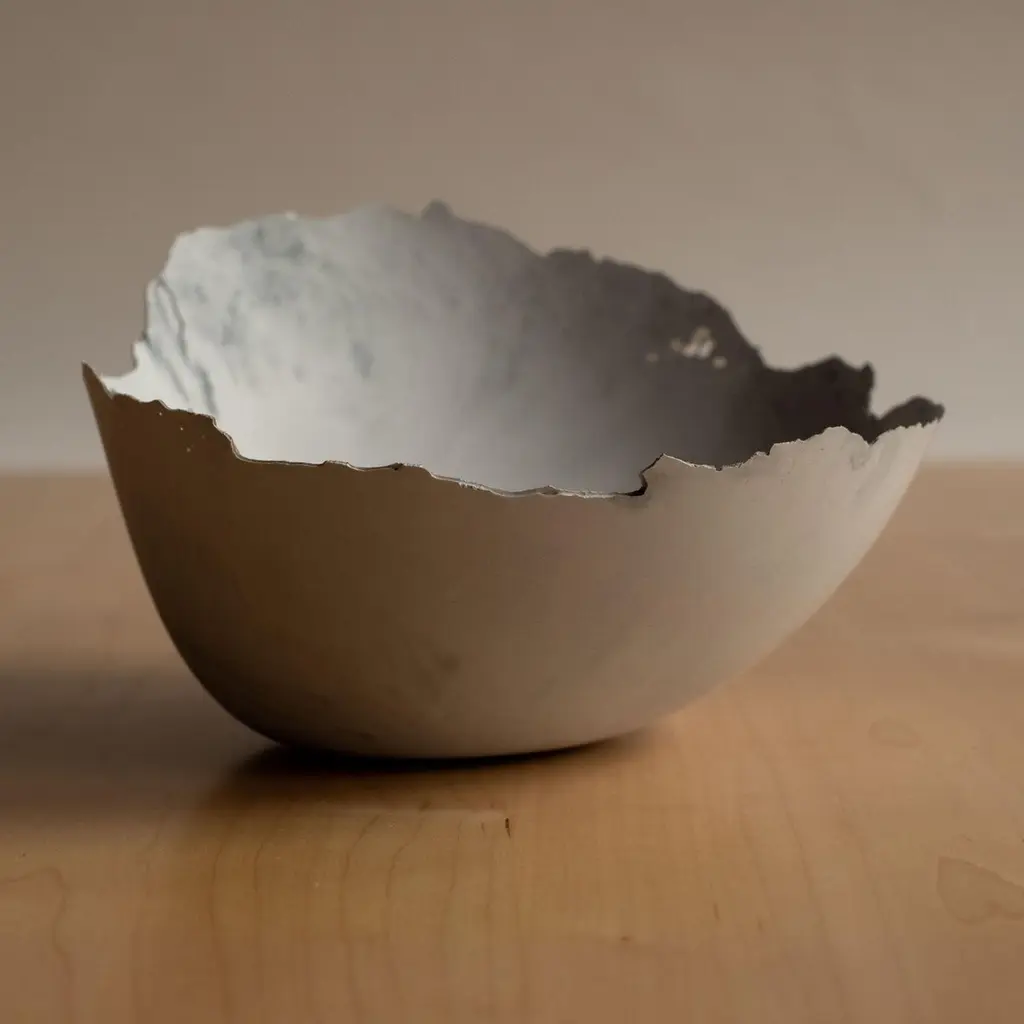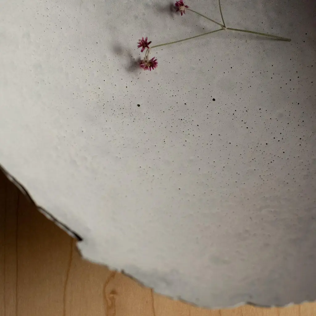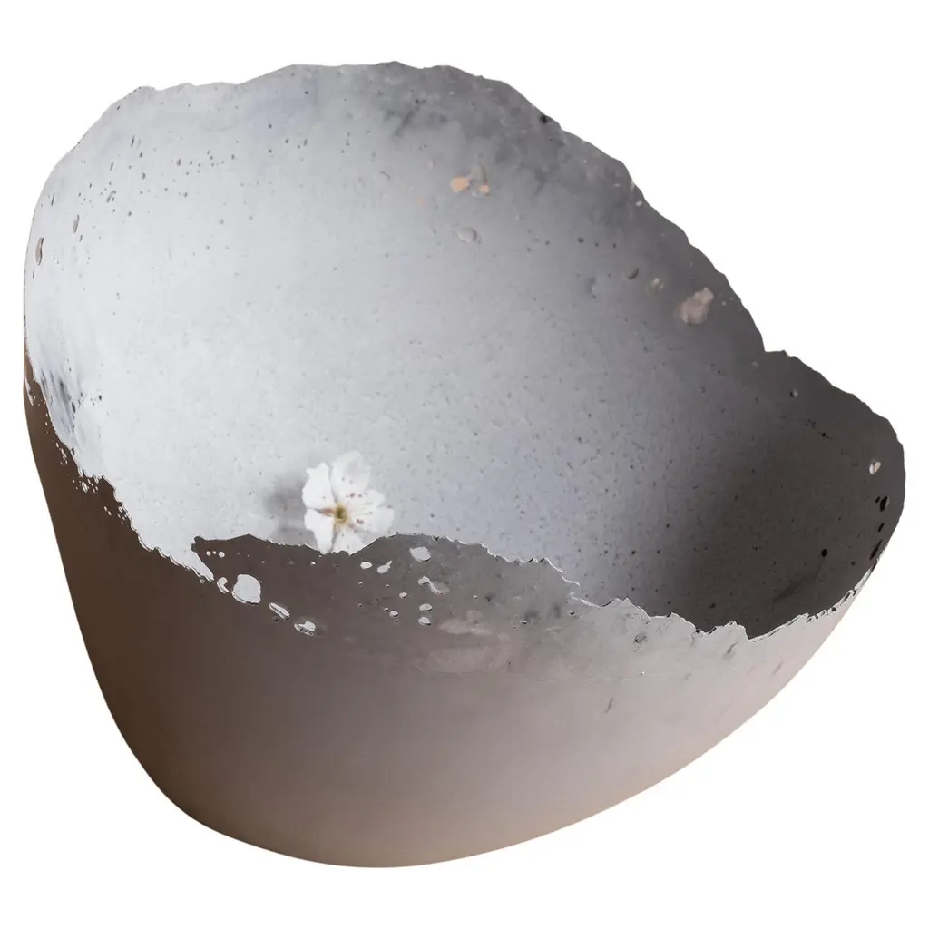 An edition of 150 unique bowls, the concrete Series by UMÉ Studio expresses the tension between heavy concrete and its delicate edge generated by hand pouring. While one assumes concrete should be strong and durable, it is, at its core, fragile. This duality invites touch and contemplation, making it the perfect vessel for daily inspiration and display. Each cast is a unique piece, handmade and one of a kind. Bowl 473GreyCast concrete / Gypsum cement / Mica and natural pigments Items are inherently fragile and should be handled with care, kept away from liquids. Bowls are not food safe.Pieces can be customized if ordered in quantities of six or moreSize: Diameter between 3 inches (7cm) - 13 inches (33cm)Height: Between 3 inches (7cm) - 8 inches (20cm)Color: White speckle, grey speckle, black.