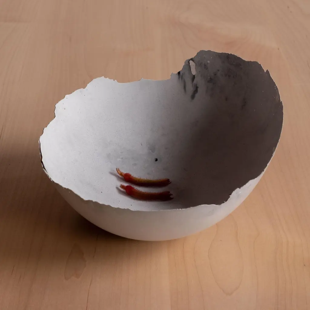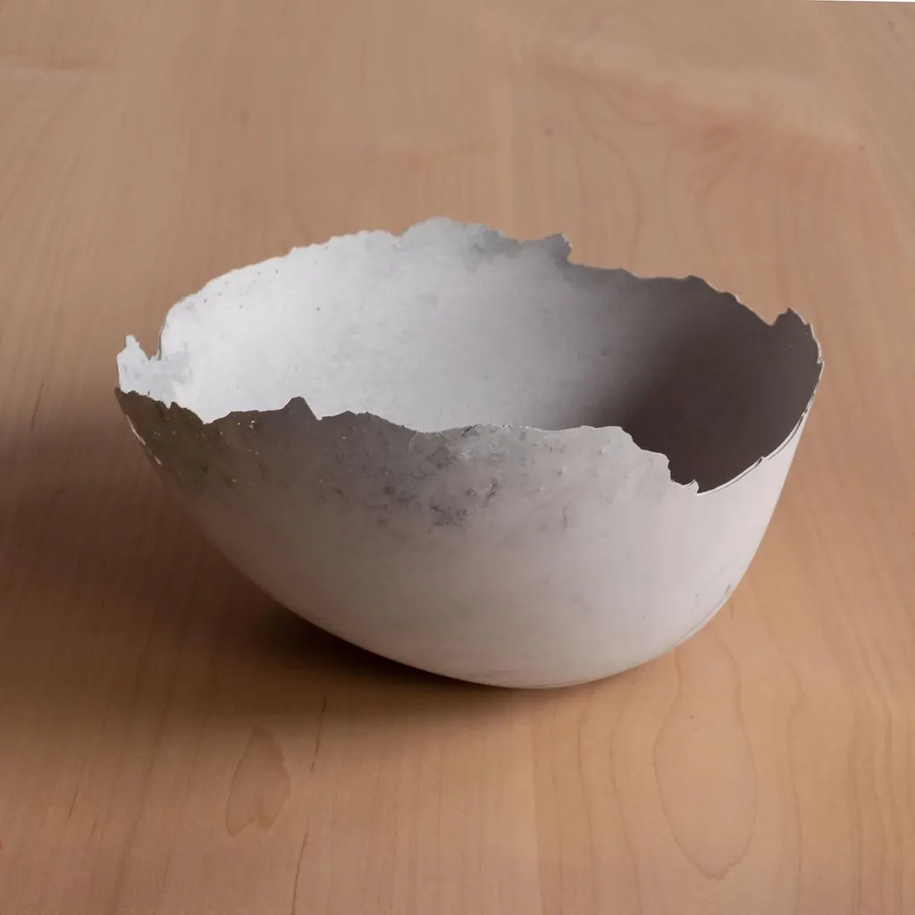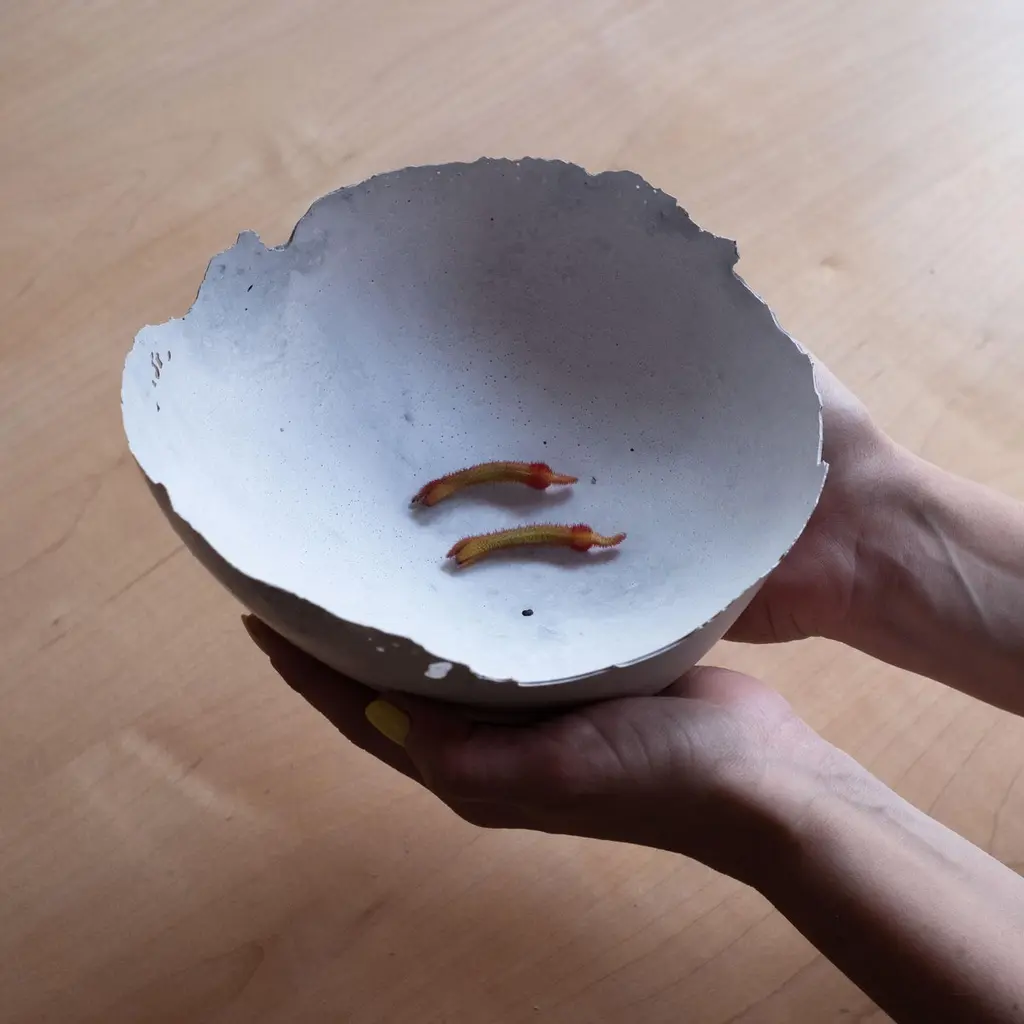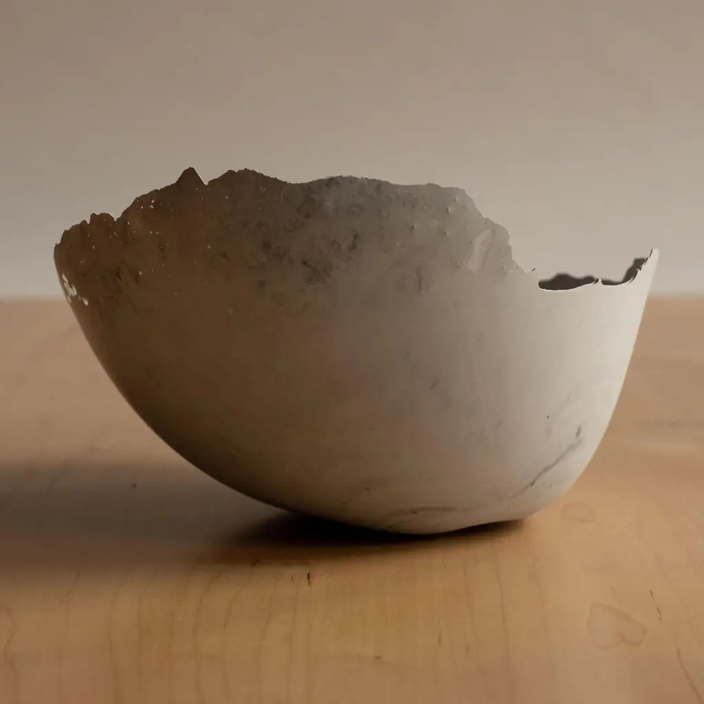 An edition of 150 unique bowls, the concrete Series by UMÉ Studio expresses the tension between heavy concrete and its delicate edge generated by hand pouring. While one assumes concrete should be strong and durable, it is, at its core, fragile. This duality invites touch and contemplation, making it the perfect vessel for daily inspiration and display. Each cast is a unique piece, handmade and one of a kind. Bowl 473GreyCast concrete / Gypsum cement / Mica and natural pigments Items are inherently fragile and should be handled with care, kept away from liquids. Bowls are not food safe.Pieces can be customized if ordered in quantities of six or moreSize: Diameter between 3 inches (7cm) - 13 inches (33cm)Height: Between 3 inches (7cm) - 8 inches (20cm)Color: White speckle, grey speckle, black.