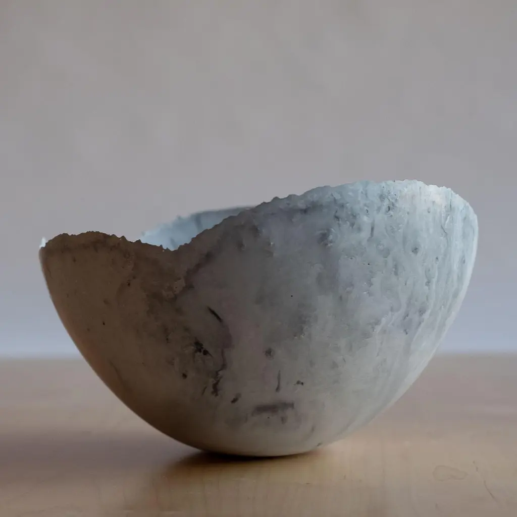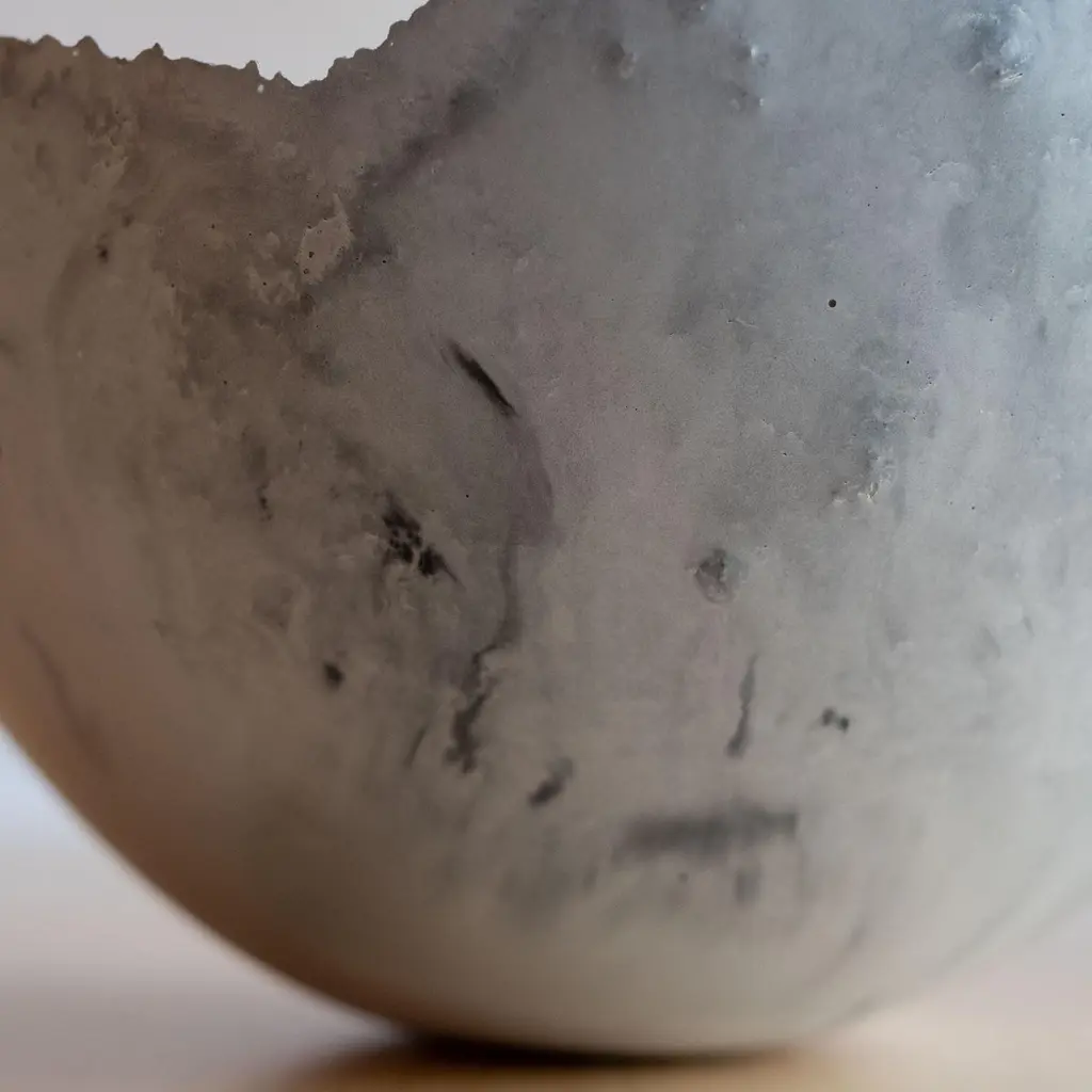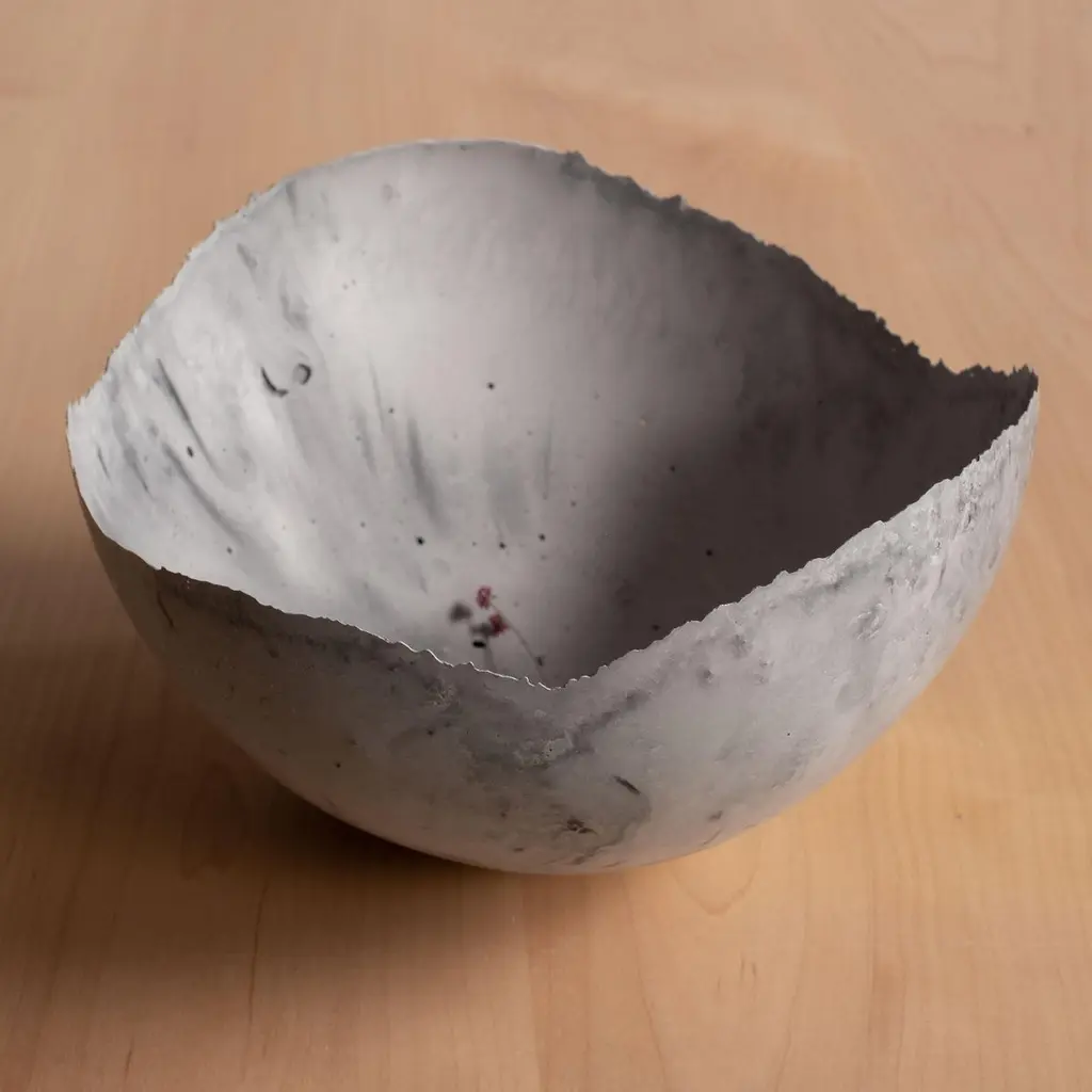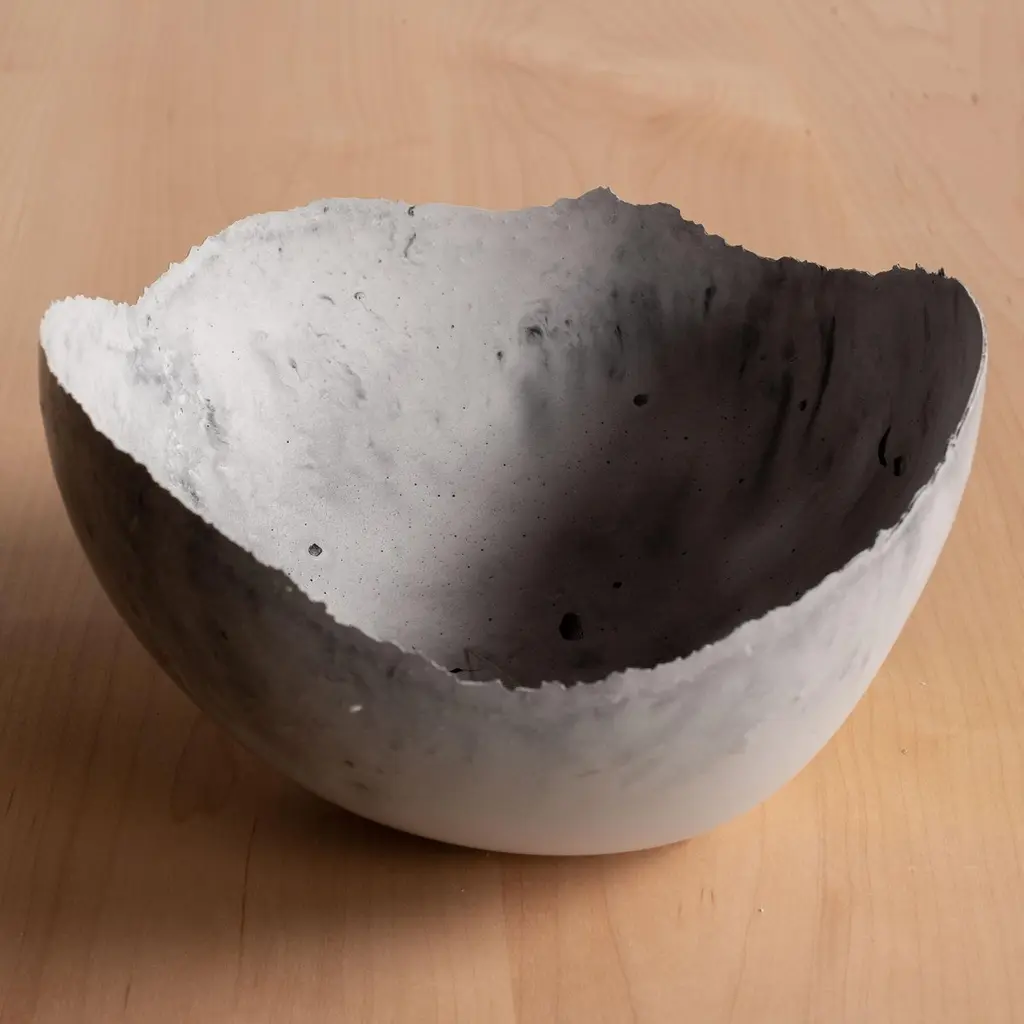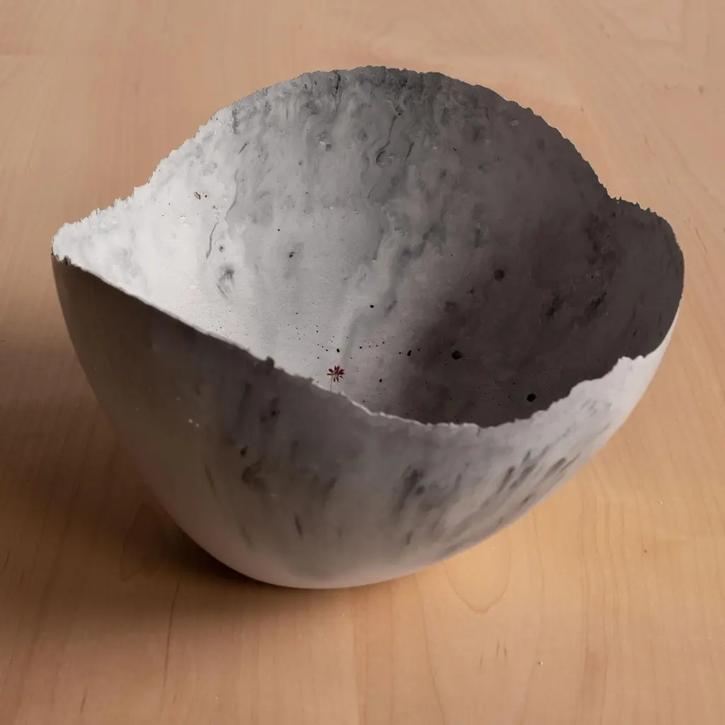 An edition of 150 unique bowls, the Concrete Series by UMÉ Studio expresses the tension between heavy concrete and its delicate edge generated by hand pouring. While one assumes concrete should be strong and durable, it is, at its core, fragile. This duality invites touch and contemplation, making it the perfect vessel for daily inspiration and display. Each cast is a unique piece, handmade and one of a kind. Bowl 383GreyCast concrete / Gypsum cement / Mica and natural pigments Items are inherently fragile and should be handled with care, and kept away from liquids. Bowls are not food safe.Pieces can be customized if ordered in quantities of six or moreSize: Diameter between 3 inches (7cm) - 13 inches (33cm)Height: Between 3 inches (7cm) - 8 inches (20cm)Color: White speckle, grey speckle, black.