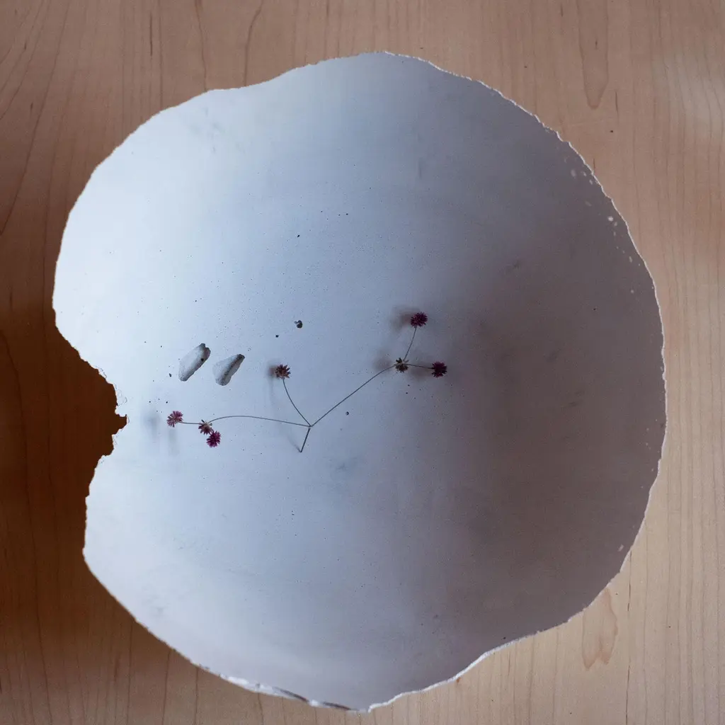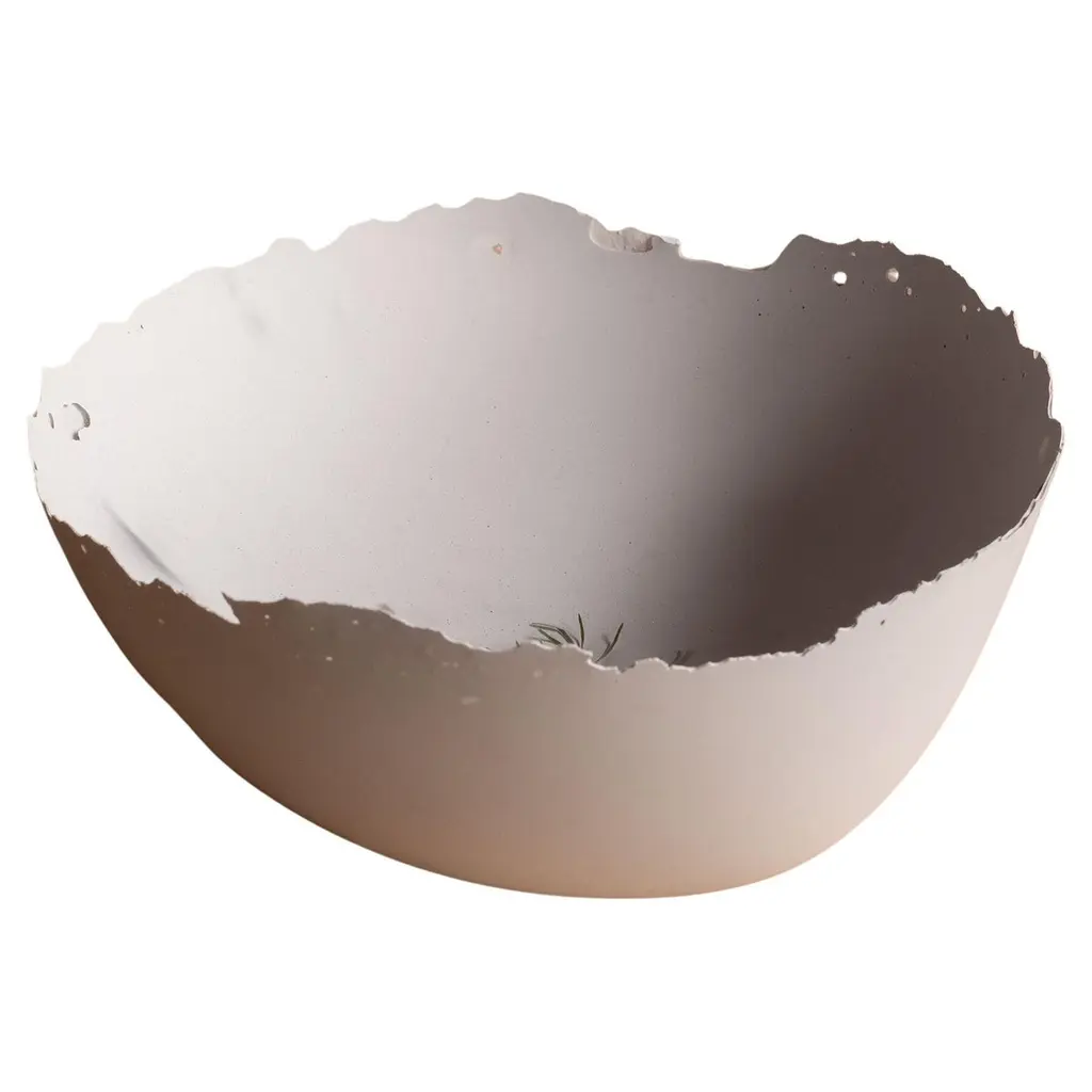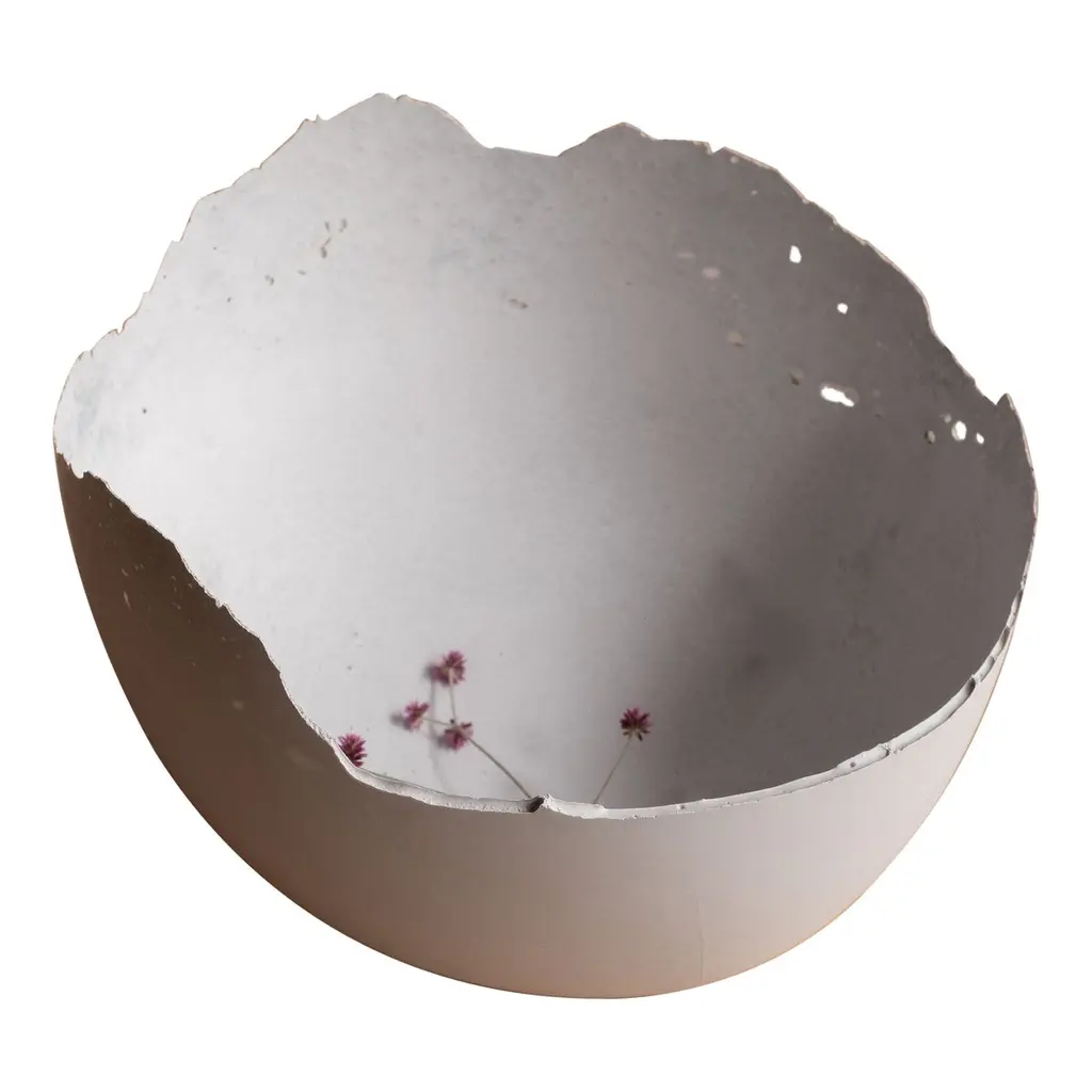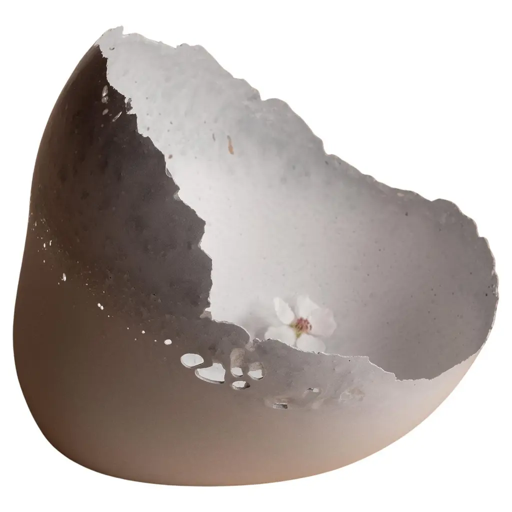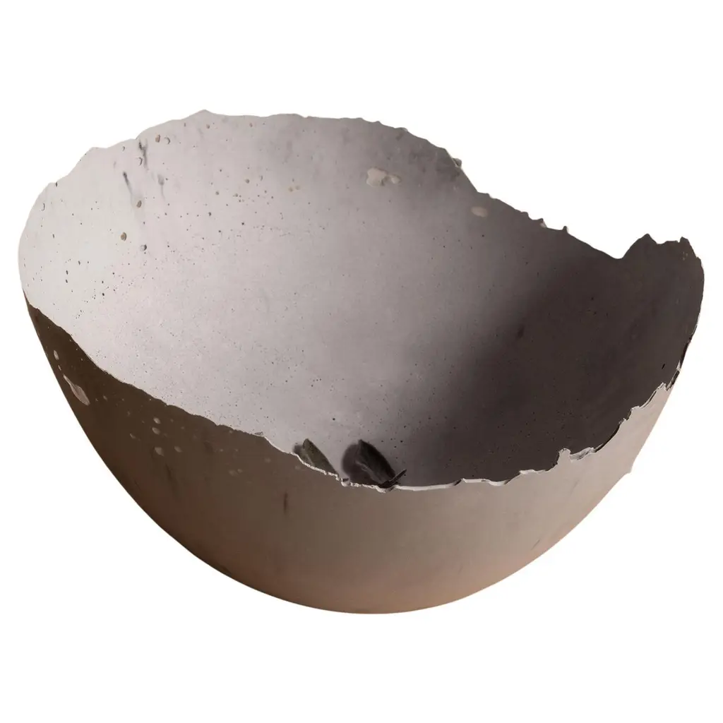 An edition of 150 unique bowls, the Concrete Series by UMÉ Studio expresses the tension between heavy concrete and its delicate edge generated by hand pouring. While one assumes concrete should be strong and durable, it is, at its core, fragile. This duality invites touch and contemplation, making it the perfect vessel for daily inspiration and display. Each cast is a unique piece, handmade and one of a kind. Bowl 491GreyCast concrete / Gypsum cement / Mica and natural pigments Items are inherently fragile and should be handled with care, kept away from liquids. Bowls are not food safe.Pieces can be customized if ordered in quantities of six or moreSize: Diameter between 3 inches (7cm) - 13 inches (33cm)Height: Between 3 inches (7cm) - 8 inches (20cm)Color: White speckle, grey speckle, black.