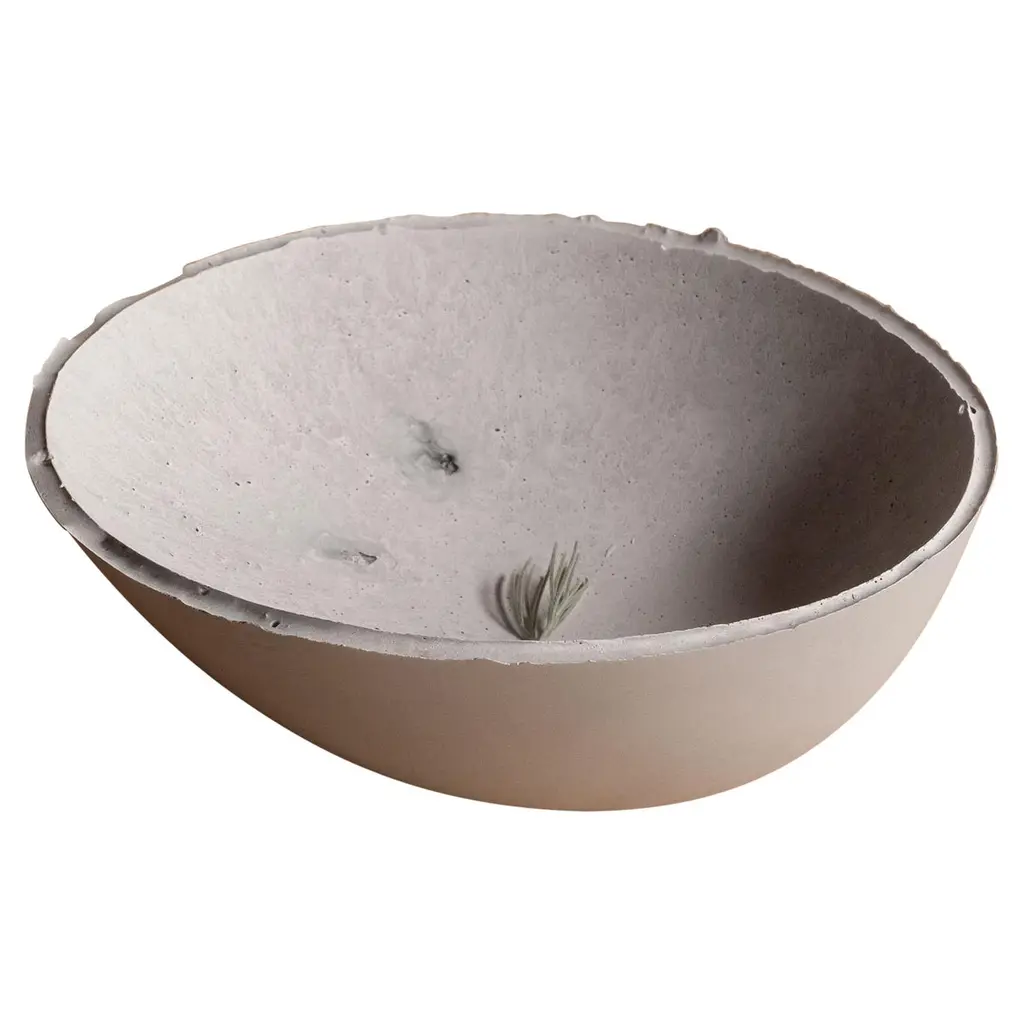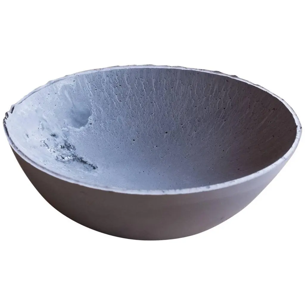 A collection of 236 unique bowls, the Concrete Series by UMÉ Studio expresses the tension between heavy concrete and its delicate edge generated by hand pouring. While one assumes concrete should be strong and durable, it is, at its core, fragile. This duality invites touch and contemplation, making it the perfect vessel for daily inspiration and display. Each cast is a unique piece, handmade and one of a kind. Bowl 218GreyCast concrete / Gypsum cement / Mica and natural pigments Items are inherently fragile and should be handled with care, kept away from liquids. Bowls are not food safe.Pieces can be customized if ordered in quantities of six or moreSize: Diameter between 3 inches (7cm) - 13 inches (33cm)Height: Between 3 inches (7cm) - 8 inches (20cm)Color: White speckle, grey speckle, black.