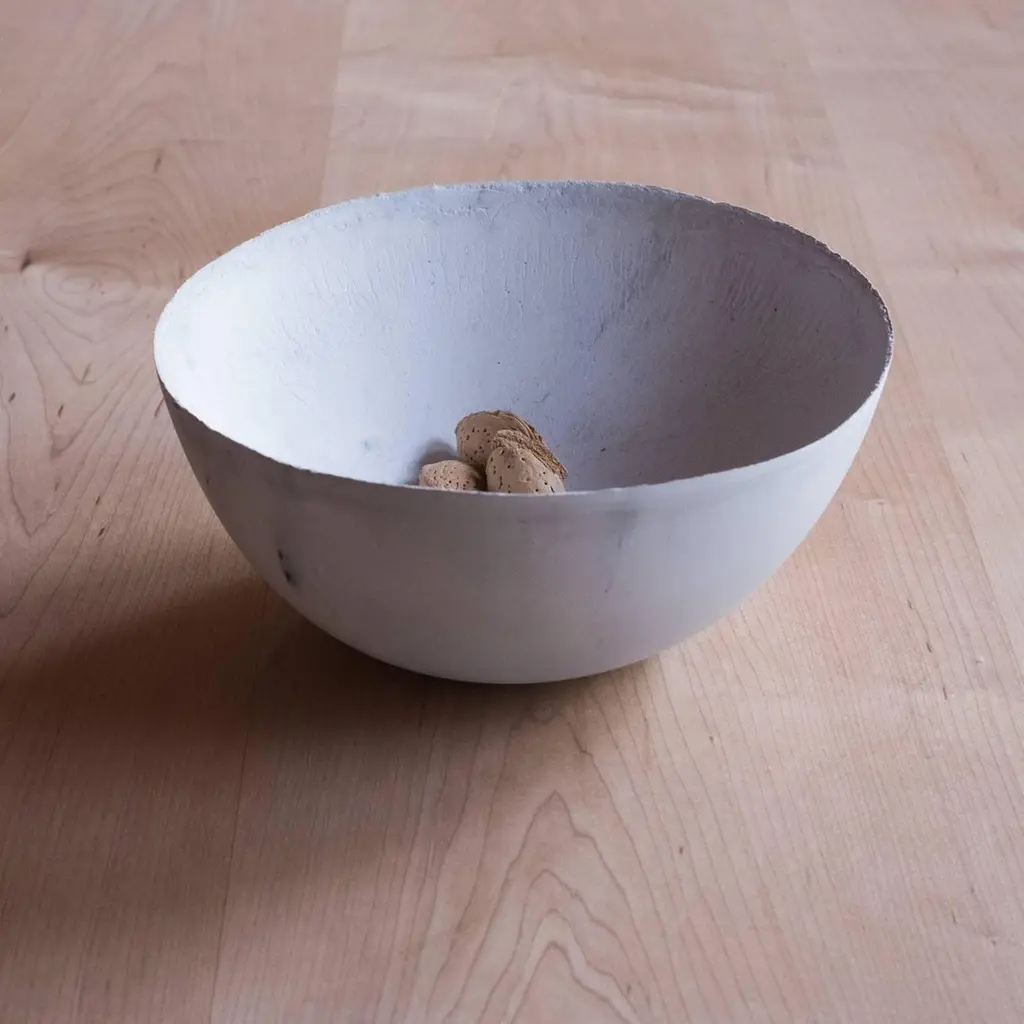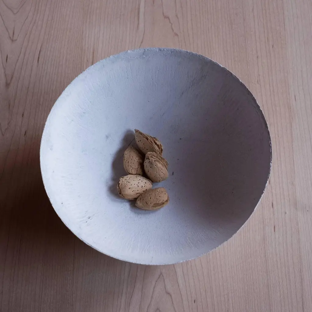 A collection of 236 unique bowls, the Concrete Series by UMÉ Studio expresses the tension between heavy concrete and its delicate edge generated by hand pouring. While one assumes concrete should be strong and durable, it is, at its core, fragile. This duality invites touch and contemplation, making it the perfect vessel for daily inspiration and display. Each cast is a unique piece, handmade and one of a kind. Bowl 168GreyCast concrete / Gypsum cement / Mica and natural pigments Items are inherently fragile and should be handled with care, kept away from liquids. Bowls are not food safe.Pieces can be customized if ordered in quantities of six or moreSize: Diameter between 3 inches (7cm) - 13 inches (33cm)Height: Between 3 inches (7cm) - 8 inches (20cm)Color: White speckle, grey speckle, black.