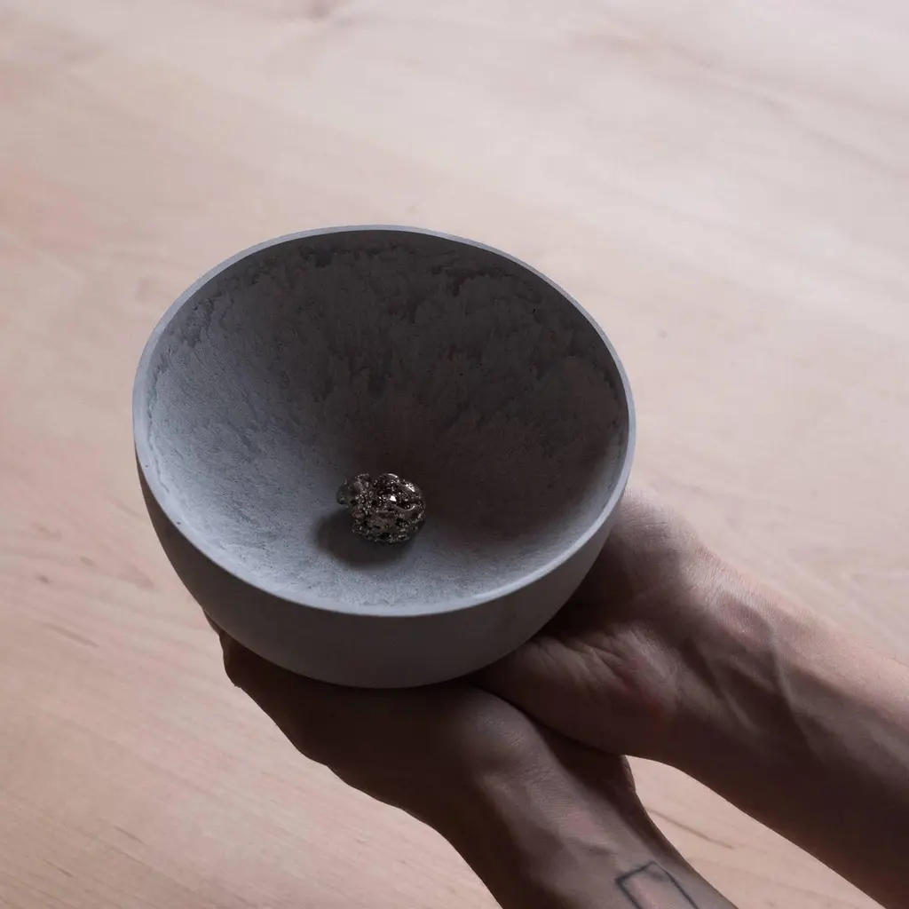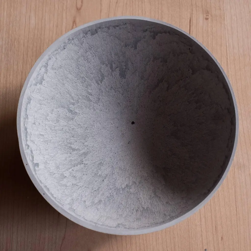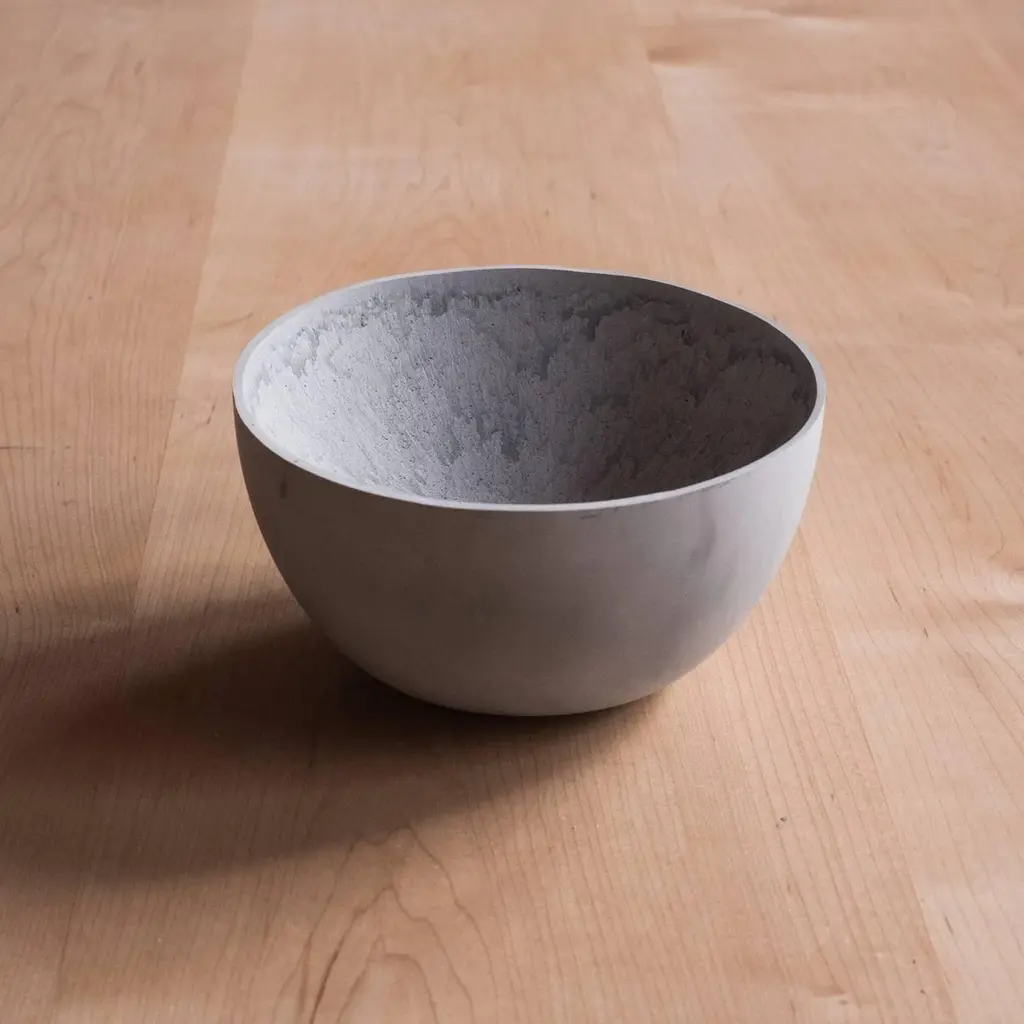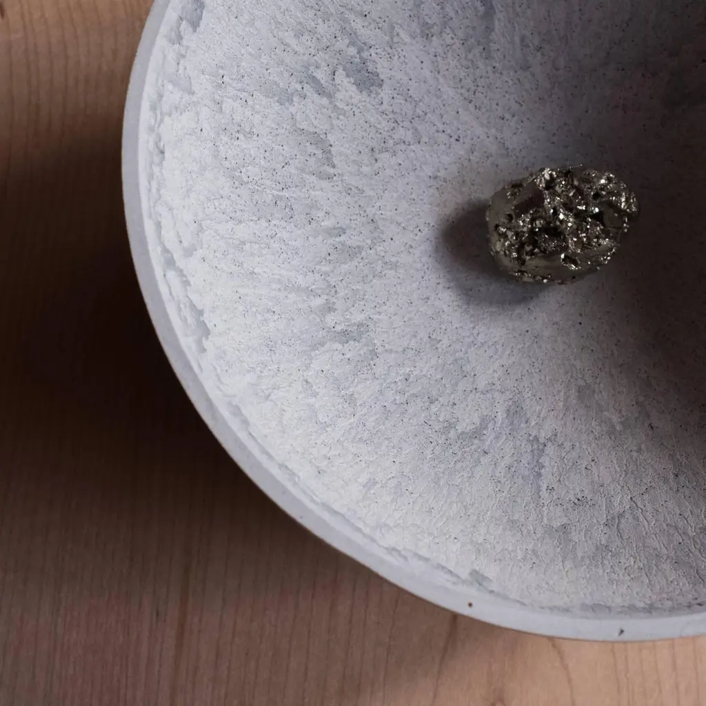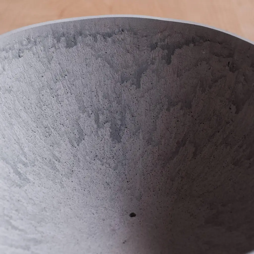 A collection of 236 unique bowls, the Concrete Series by UMÉ Studio expresses the tension between heavy concrete and its delicate edge generated by hand pouring. While one assumes concrete should be strong and durable, it is, at its core, fragile. This duality invites touch and contemplation, making it the perfect vessel for daily inspiration and display. Each cast is a unique piece, handmade and one of a kind. Bowl 191GreyCast concrete / Gypsum cement / Mica and natural pigments Items are inherently fragile and should be handled with care, kept away from liquids. Bowls are not food safe.Pieces can be customized if ordered in quantities of six or moreSize: Diameter between 3 inches (7cm) - 13 inches (33cm)Height: Between 3 inches (7cm) - 8 inches (20cm)Color: White speckle, grey speckle, black.