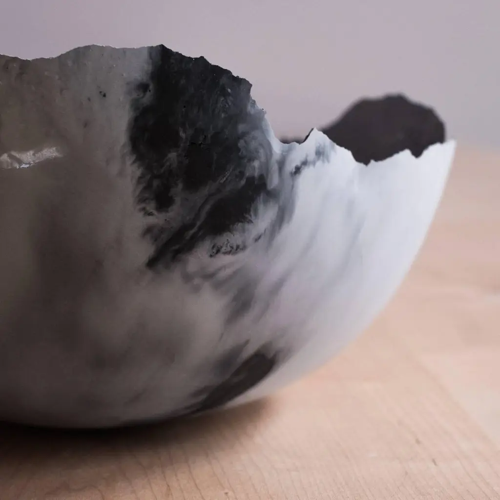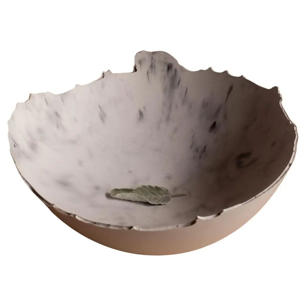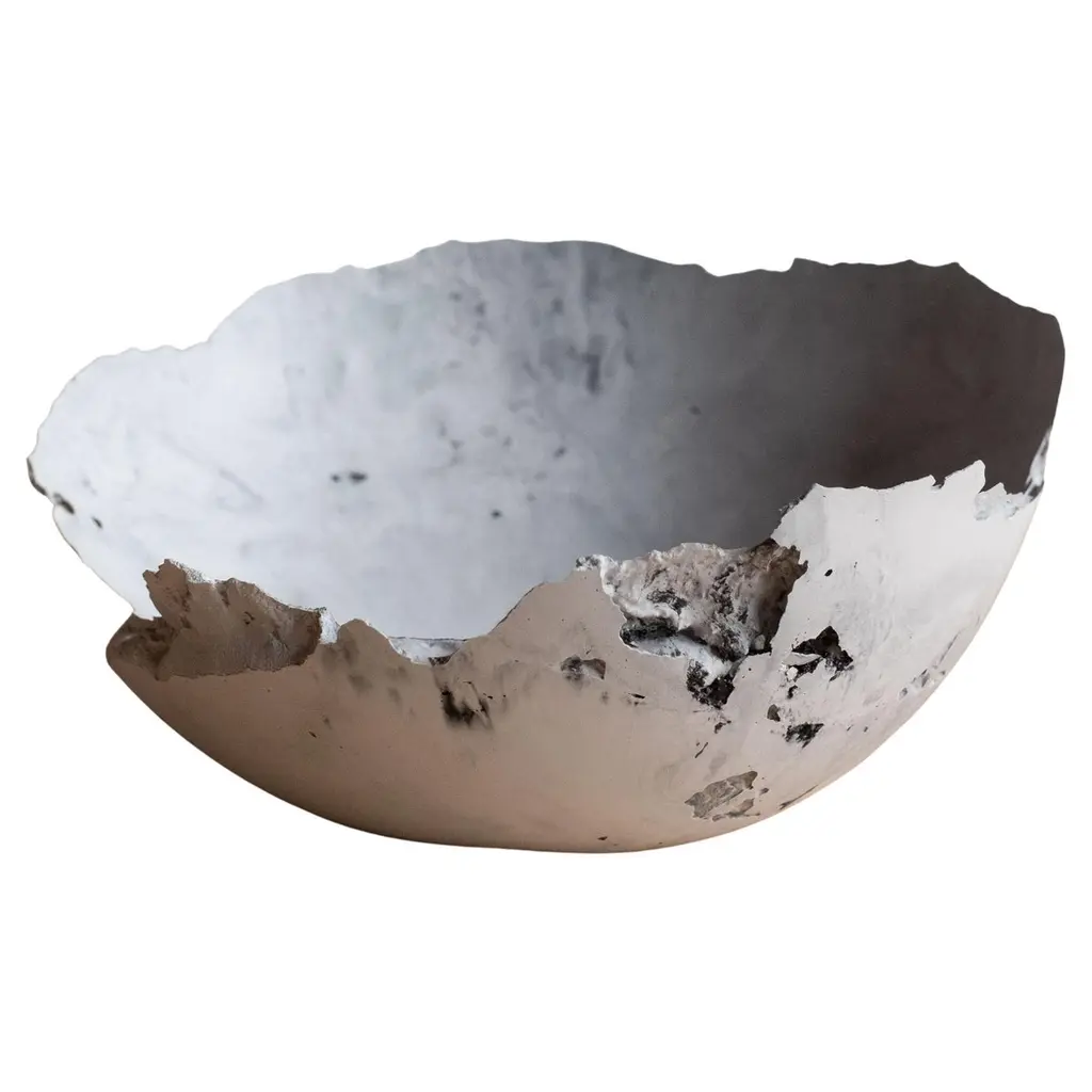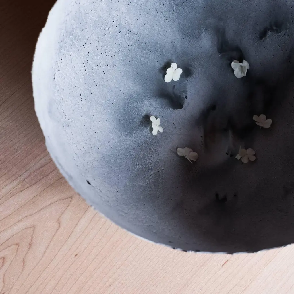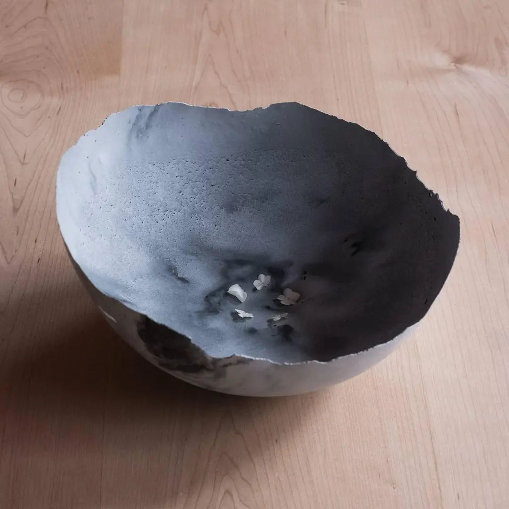A collection of 236 unique bowls, the Concrete Series by UMÉ Studio expresses the tension between heavy concrete and its delicate edge generated by hand pouring. While one assumes concrete should be strong and durable, it is, at its core, fragile. This duality invites touch and contemplation, making it the perfect vessel for daily inspiration and display. Each cast is a unique piece, handmade and one of a kind. Bowl 159GreyCast concrete / Gypsum cement / Mica and natural pigments Items are inherently fragile and should be handled with care, kept away from liquids. Bowls are not food safe.Pieces can be customized if ordered in quantities of six or moreSize: Diameter between 3 inches (7cm) - 13 inches (33cm)Height: Between 3 inches (7cm) - 8 inches (20cm)Color: White speckle, grey speckle, black.
