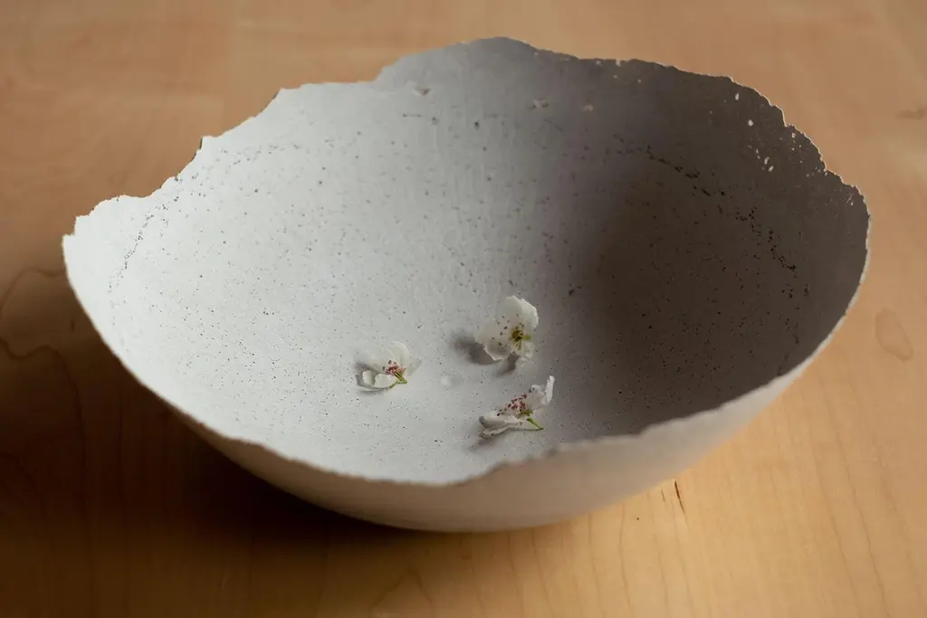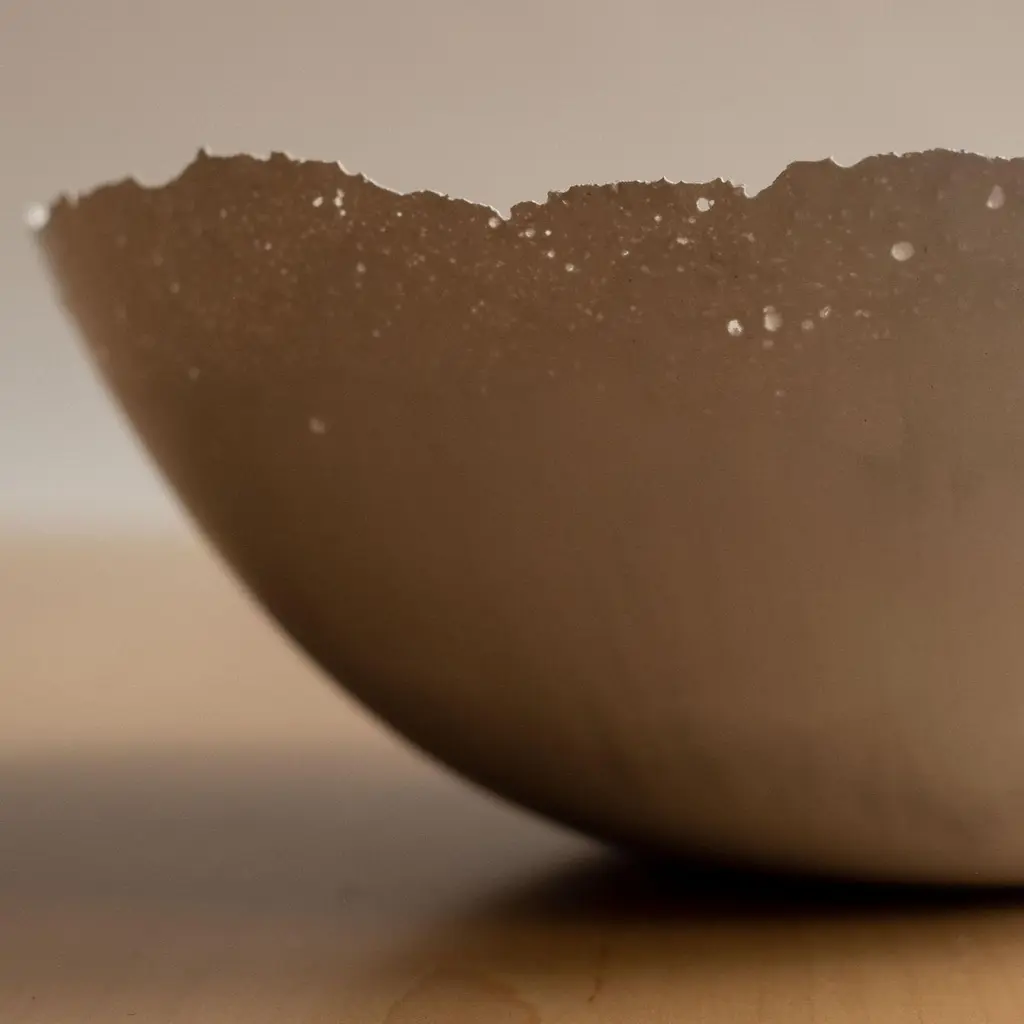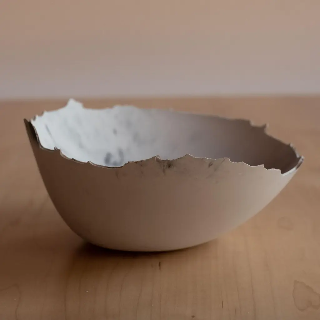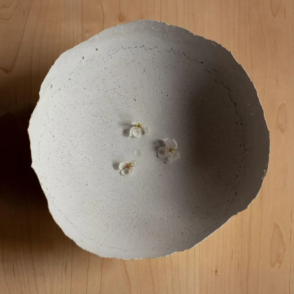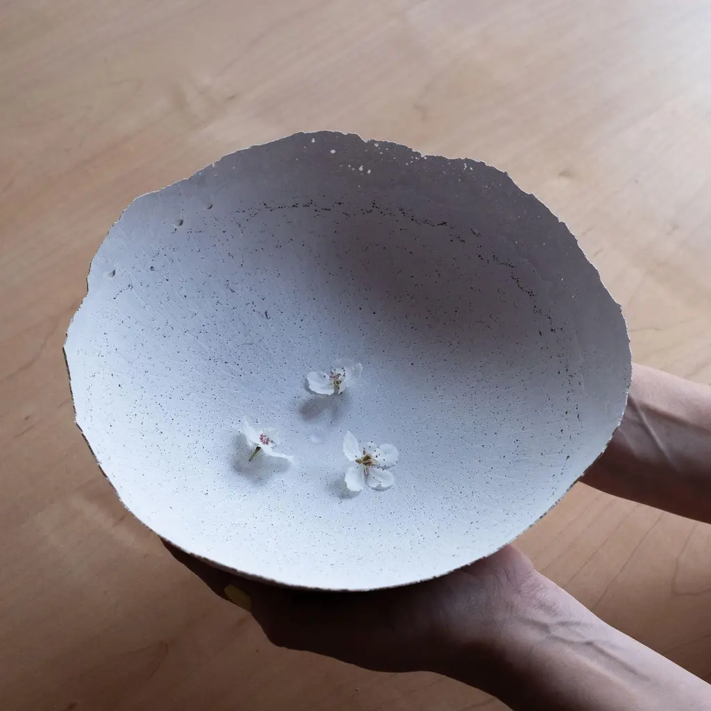 An edition of 150 unique bowls, the concrete Series by UMÉ Studio expresses the tension between heavy concrete and its delicate edge generated by hand pouring. While one assumes concrete should be strong and durable, it is, at its core, fragile. This duality invites touch and contemplation, making it the perfect vessel for daily inspiration and display. Each cast is a unique piece, handmade and one of a kind. Bowl 430GreyCast concrete / Gypsum cement / Mica and natural pigments Items are inherently fragile and should be handled with care, kept away from liquids. Bowls are not food safe.Pieces can be customized if ordered in quantities of six or moreSize: Diameter between 3 inches (7cm) - 13 inches (33cm)Height: Between 3 inches (7cm) - 8 inches (20cm)Color: White speckle, grey speckle, black.
