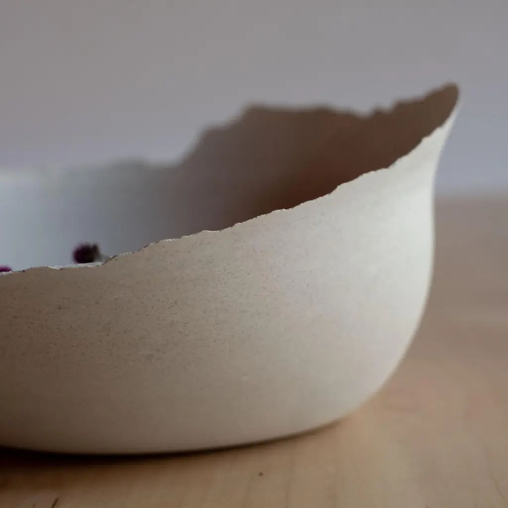 An edition of 150 unique bowls, the Concrete Series by UMÉ Studio expresses the tension between heavy concrete and its delicate edge generated by hand pouring. While one assumes concrete should be strong and durable, it is, at its core, fragile. This duality invites touch and contemplation, making it the perfect vessel for daily inspiration and display. Each cast is a unique piece, handmade and one of a kind. Bowl 388GreyCast concrete / Gypsum cement / Mica and natural pigments Items are inherently fragile and should be handled with care, kept away from liquids. Bowls are not food safe.Pieces can be customized if ordered in quantities of six or moreSize: Diameter between 3 inches (7cm) - 13 inches (33cm)Height: Between 3 inches (7cm) - 8 inches (20cm)Color: White speckle, grey speckle, black.